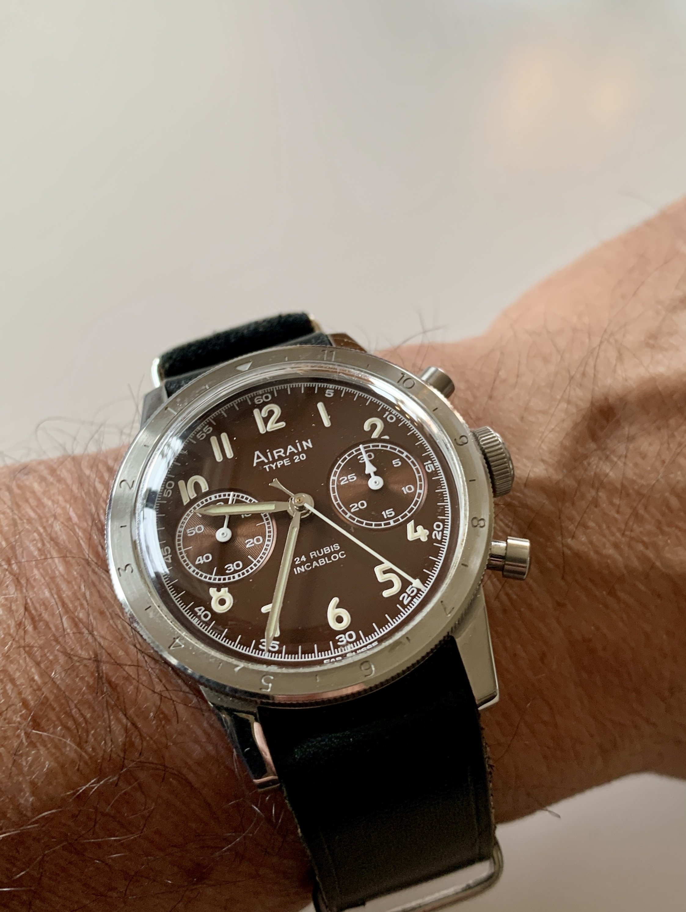 Posts 3,835 Likes 22,920 Faz ·Mar 28, 2024 Chocolate delight. Airain Type 20 reborn. An impressive reissue of the original flyback chronograph supplied to the French airforce.