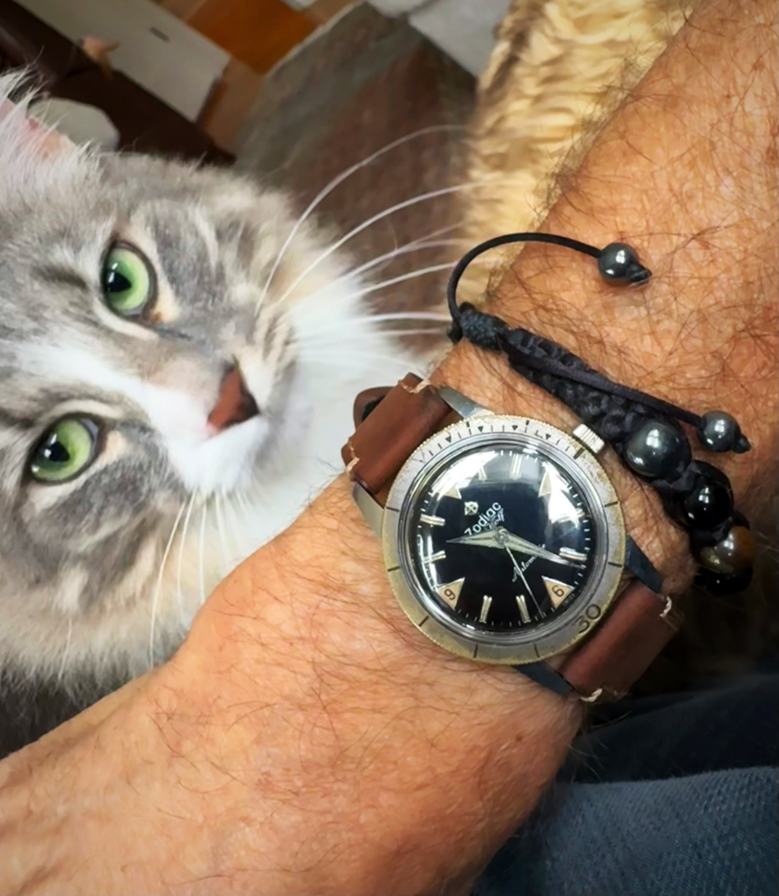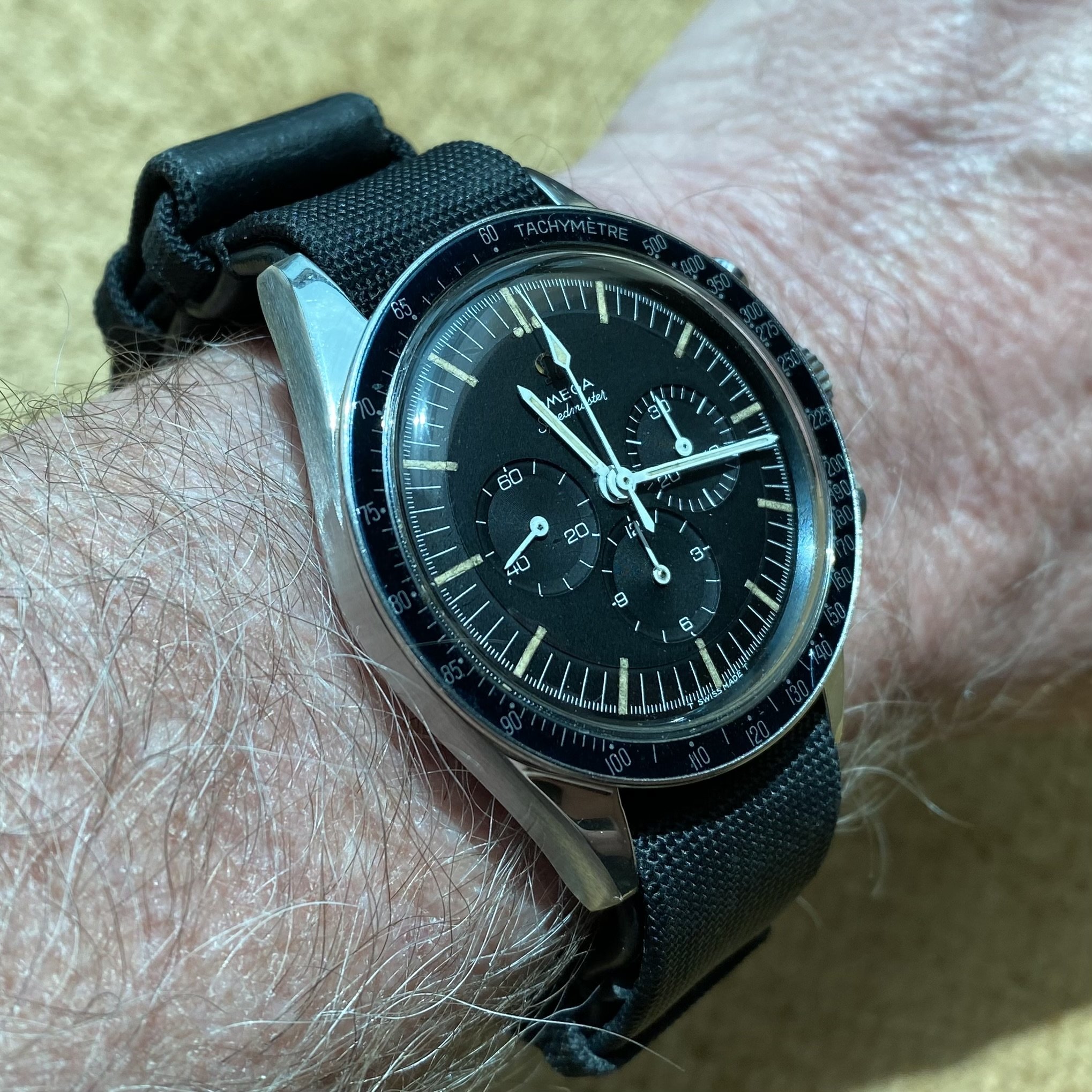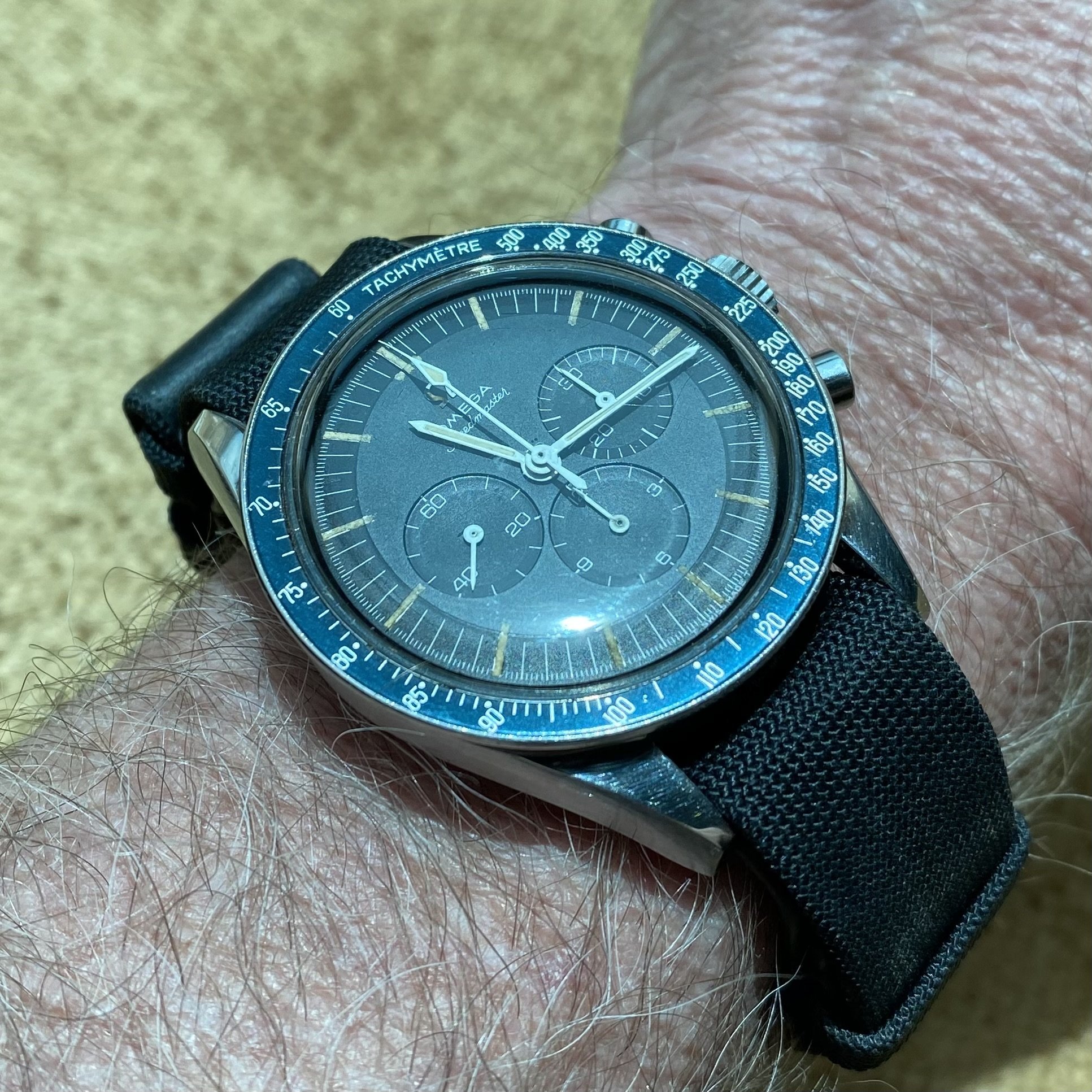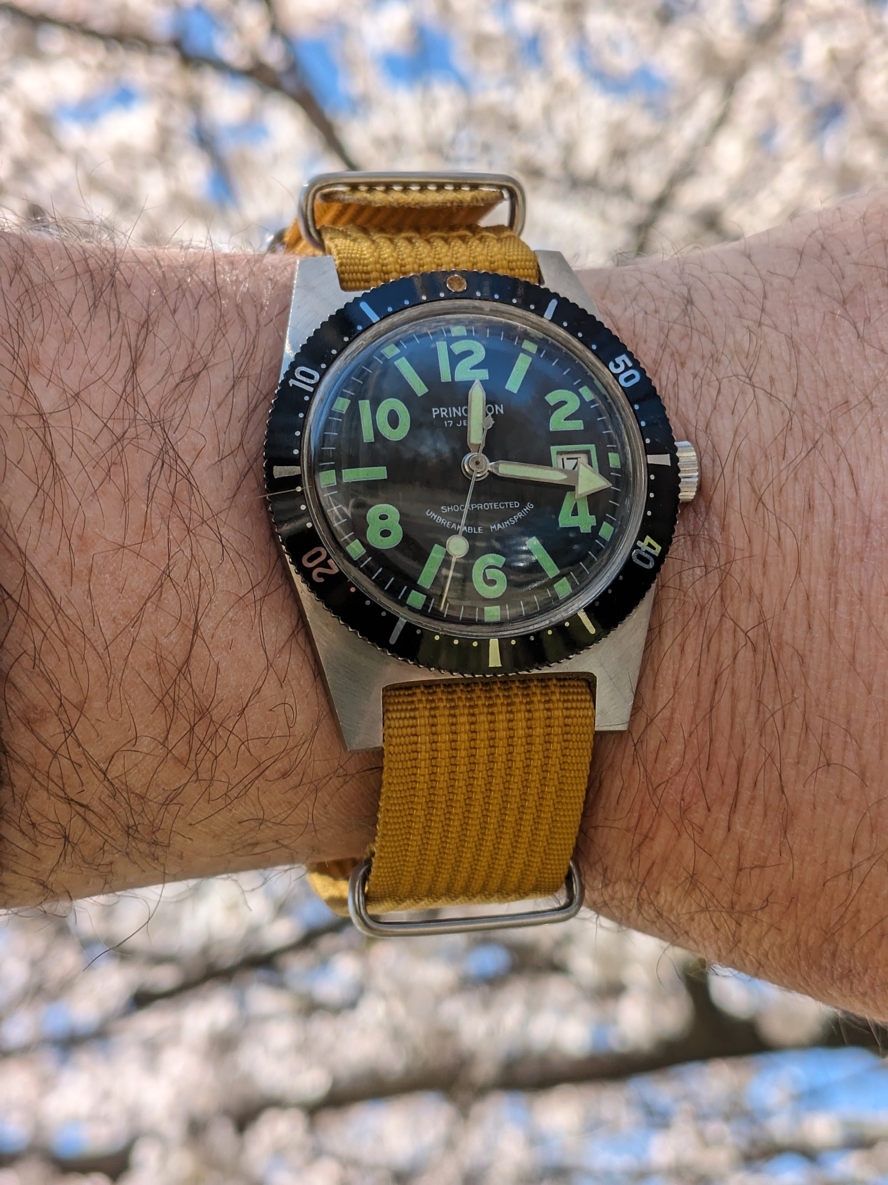 If there was such a thing as a beater, chores watch then this vintage 1919 Illinois A. Lincoln 21-jewel watch in a inexpensive and shabby, much "loved" case would be the one to use while doing weekend lawn chores, which is how it's serving today. Sporting a DaveK dark blue lanyard. The movement is quite nice, railroad grade and falling right below the Bunn Special in the Illinois 21-jewel pecking order. This one could have been a trainman's watch at one time. Or not.