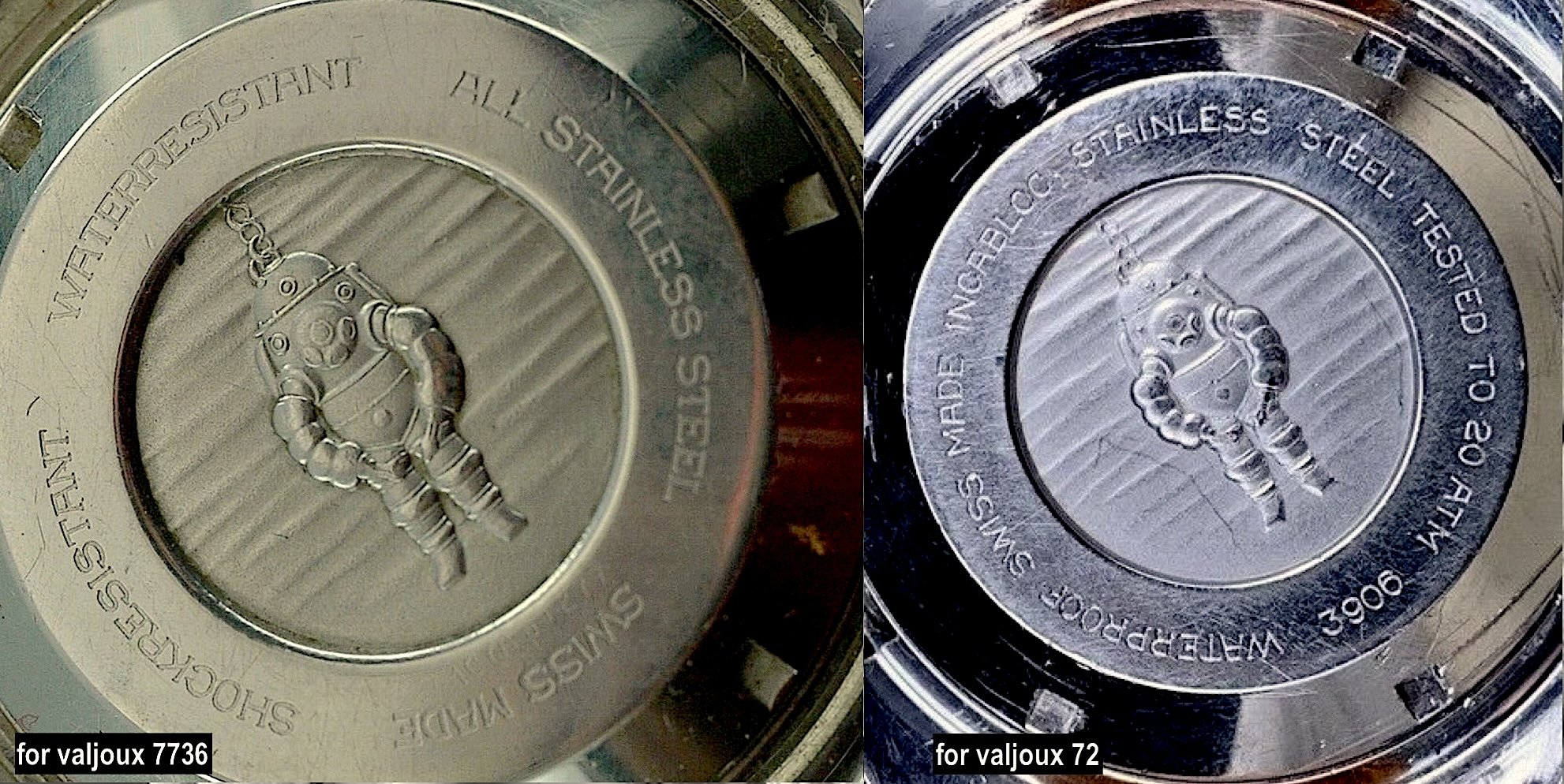 1) - Outer case back with no case reference number used for a Valjoux 7736 chronograph movement