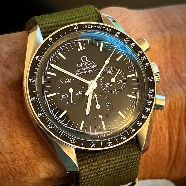 Posts 6,578 Likes 78,146 Mad Dog ·Apr 2, 2024 Speedy Tuesday. 👍 -64 Ed White on an Omega Novonappa NATO in 19mm… LATE ENTRY: It’s still Speedy Tuesday. 👍 Switcheroo to a Rothco protective band for the gym… Edited: Apr 2, 2024