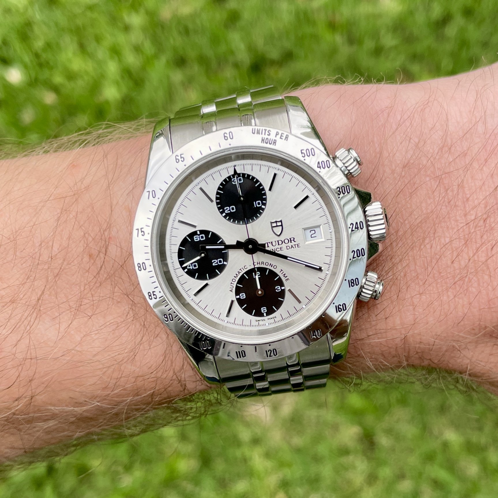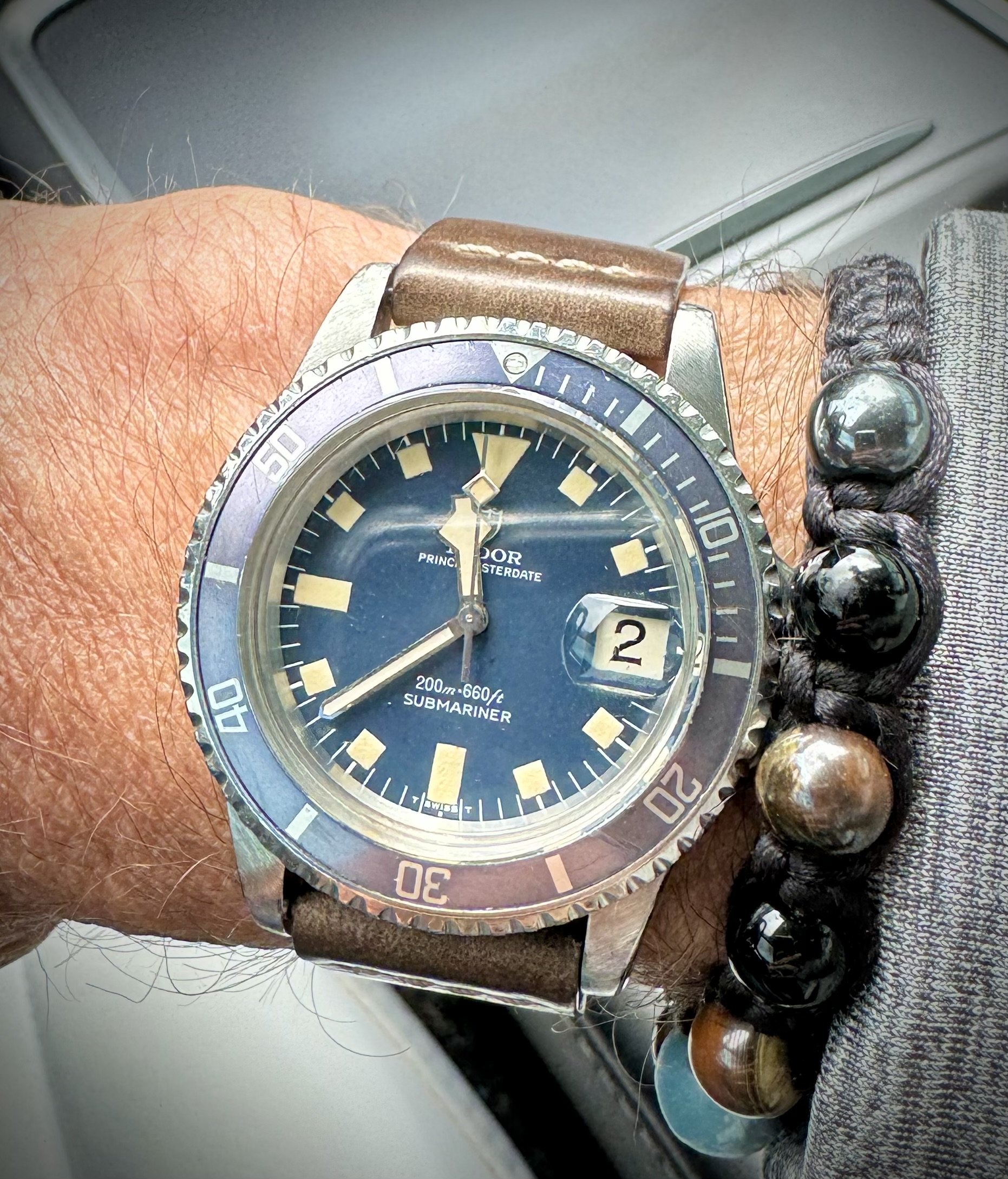 Posts 7,293 Likes 76,576 dougiedude ·Apr 2, 2024·Carpe horologium! My Speedmasters are being rested today 😁: 1975 Tudor Submariner ref. 9411 substitution: