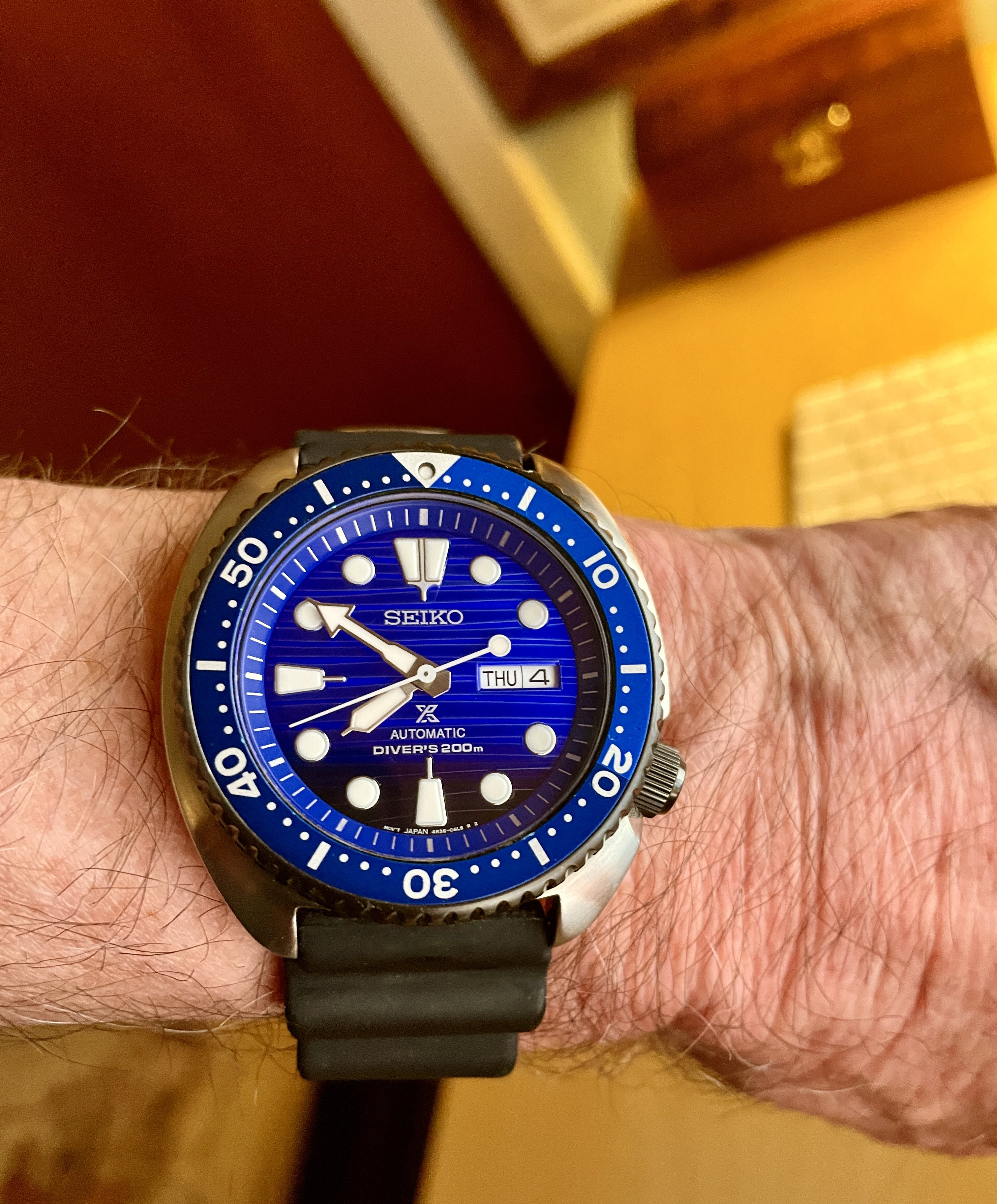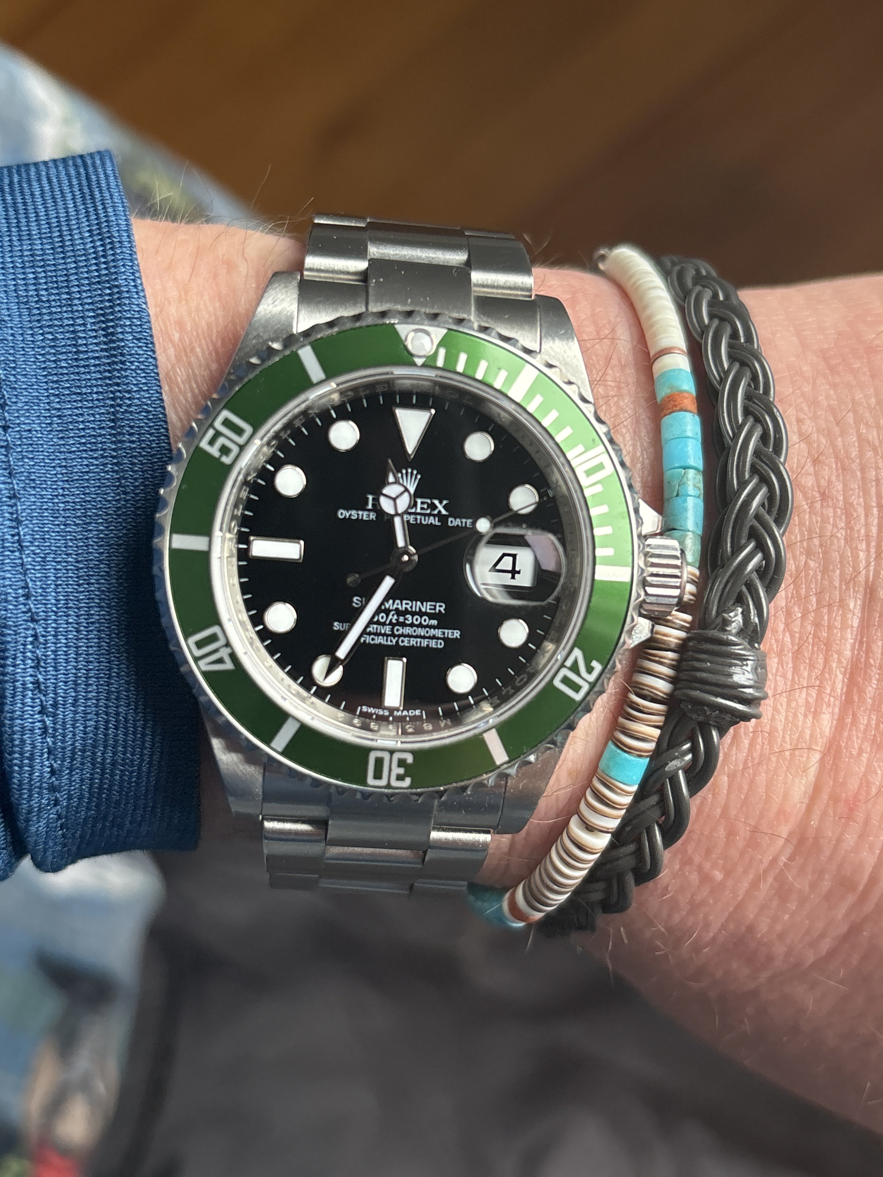 The second leg of the trifecta involved my Kermit. While visiting family in Chattanooga, TN for the week, the watch started running quite a bit faster then its normal +2 seconds daily. We returned to Maine yesterday, and using a compass I confirmed the Kermit had become magnetized during our travels. The one and only watch thing I can do, other than change bracelets, straps and buckles is demagnetize a watch, and so yesterday I demagnetized the Kermit. It’s back to its typical + 2 seconds a day, and is back on the wrist as well.