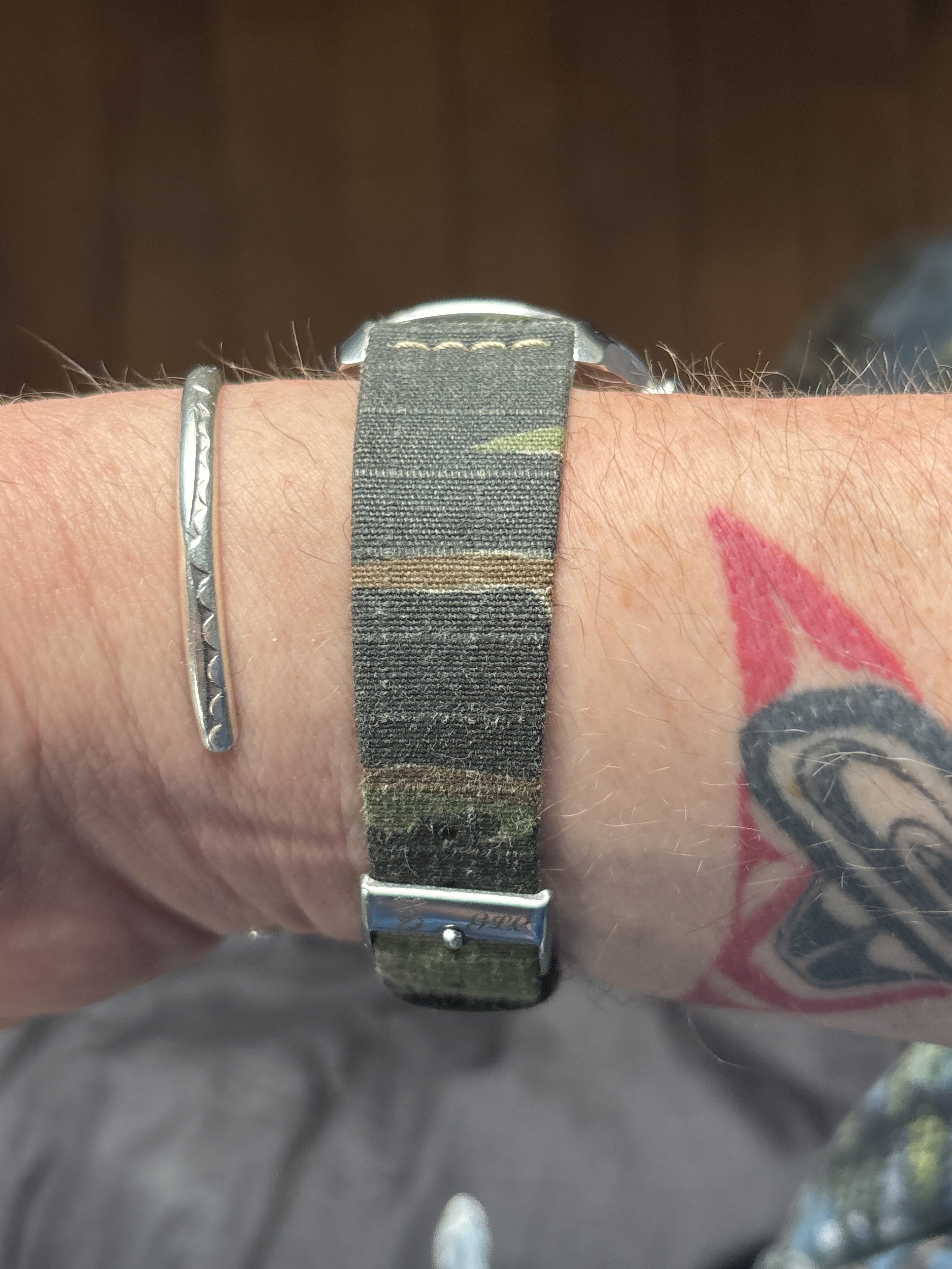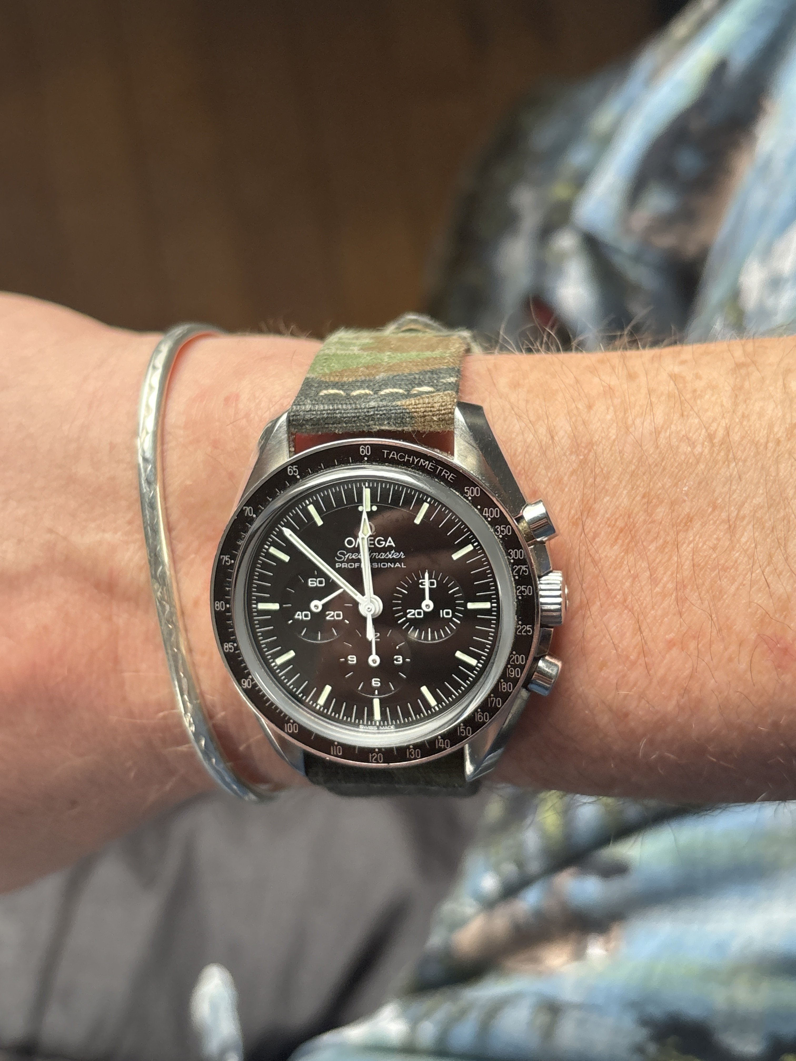 The G.L.C. strap works on the 3861, but it will look amaze-balls on my more vintage Speedies. It’s snowing, and I’ll be snow blowing soon, so no vintage watches outside today. I hope this finds the Forum well, and those in the US affected by this week's storms safe.