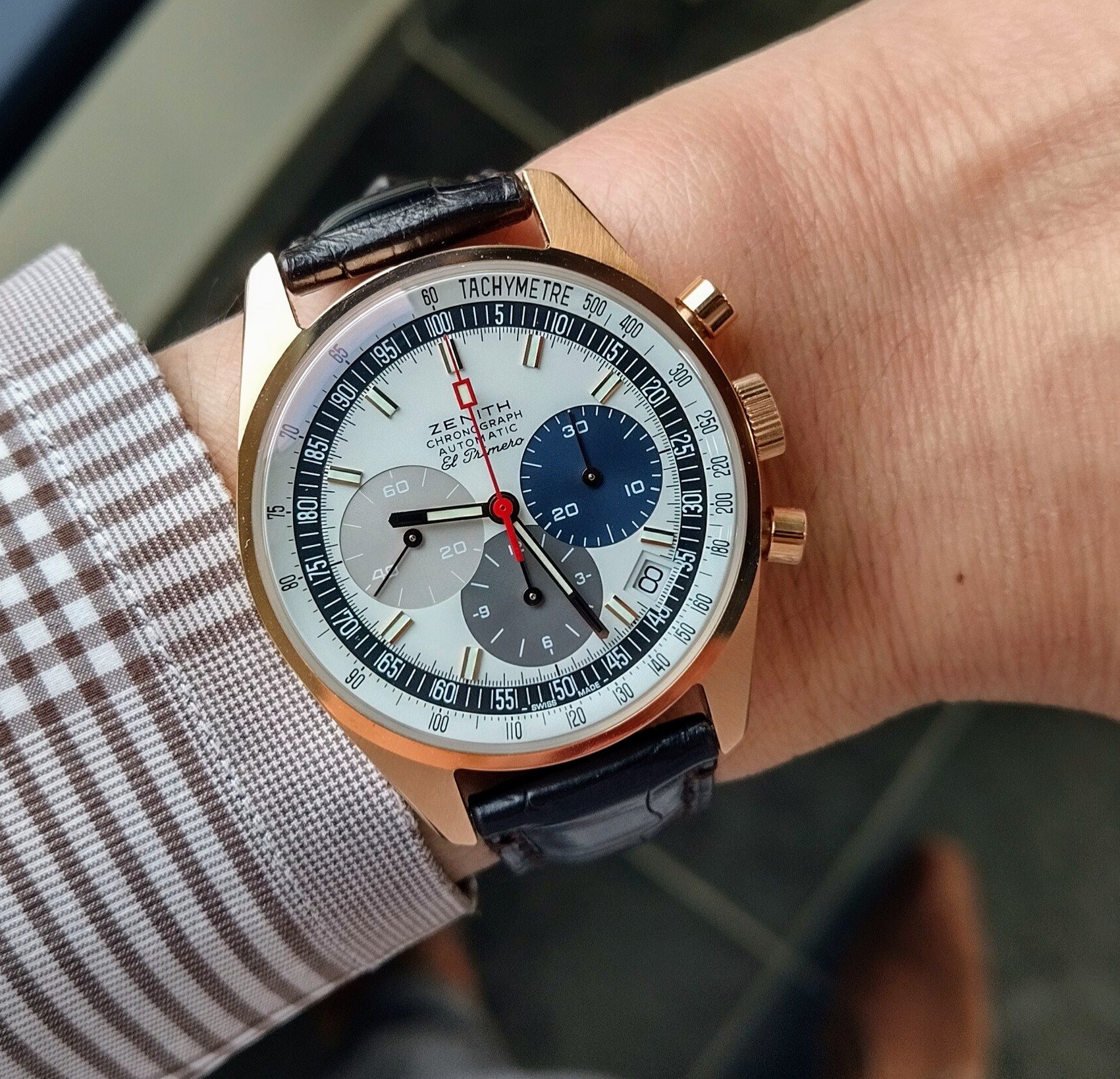Posts 648 Likes 1,935 GuiltyGear ·Apr 8, 2024 Gray on gray today. Got a new strap for my Zenith Surf, so why not match the shirt with it. Edited: Apr 8, 2024