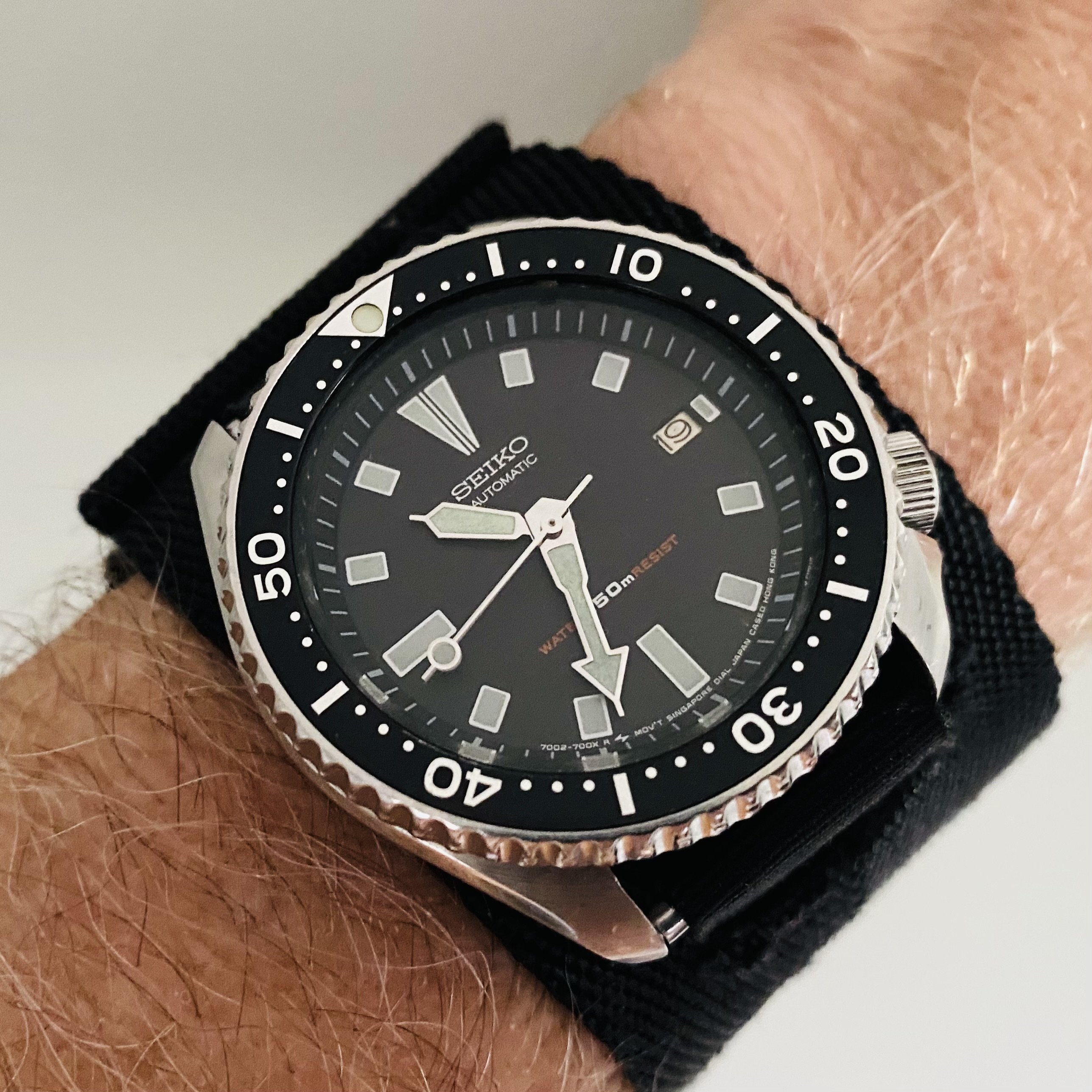 Inspired by @Charlie3755 , @elara2105 , and @Spruce …wearing my 1991 7002-7009 for today. I’m very grateful for this SEIKO…it was a gift from a retired JetBlue pilot who purchased it new in 1991 at the NEX when he was on active duty in the USMC…