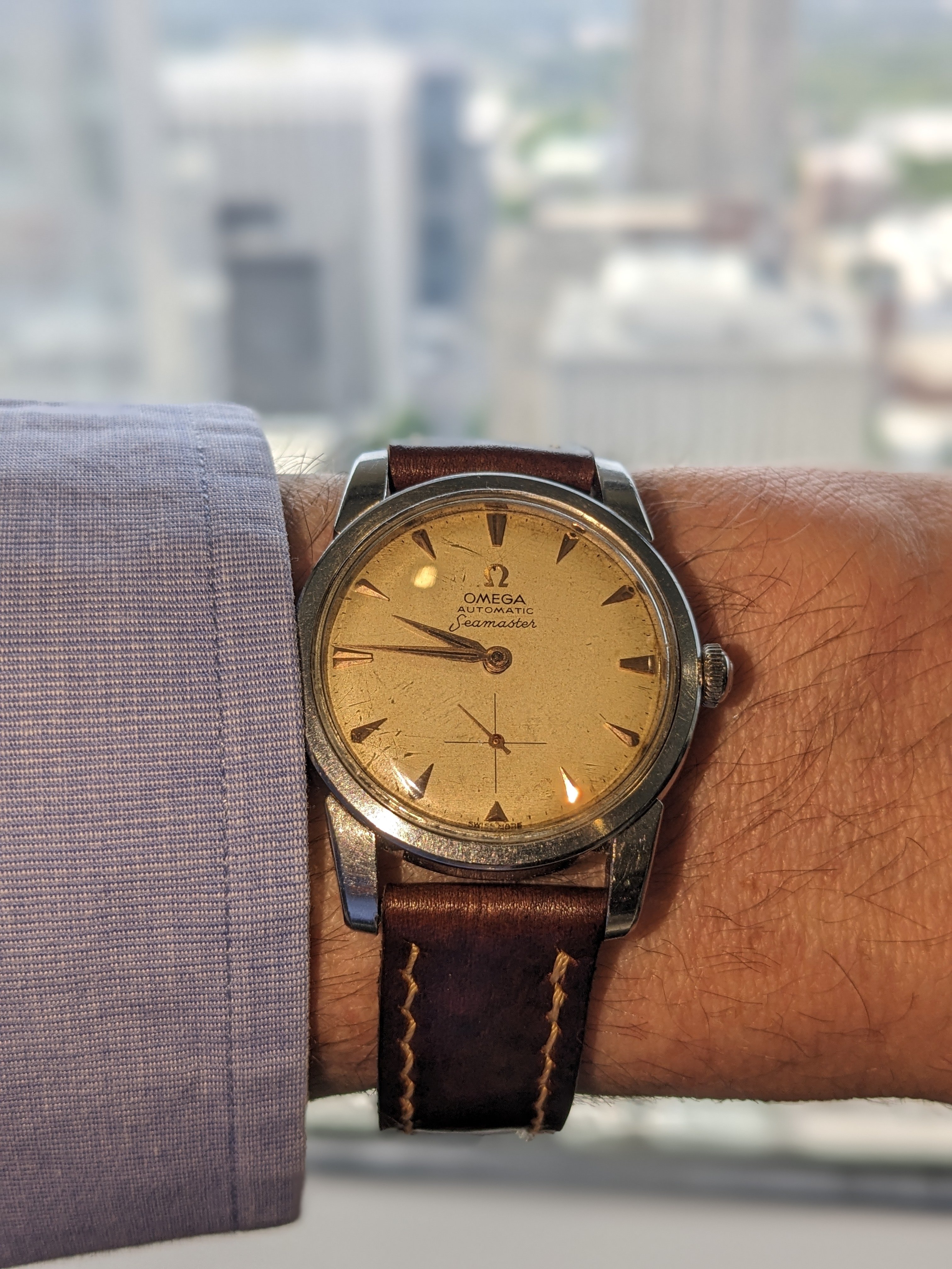 Posts 8,742 Likes 69,439 Darlinboy ·Apr 22, 2024·Pratts! Will I B******S!!! Next up on the farewell tour... n Omega '53 RAF 6B/542 "Thin Arrow", model 2777-1. Probably fewer than ~200 of these still exist as the radium dials were later replaced by the MOD with either the "Bienne" or "Fat Arrow" version, also shown below.