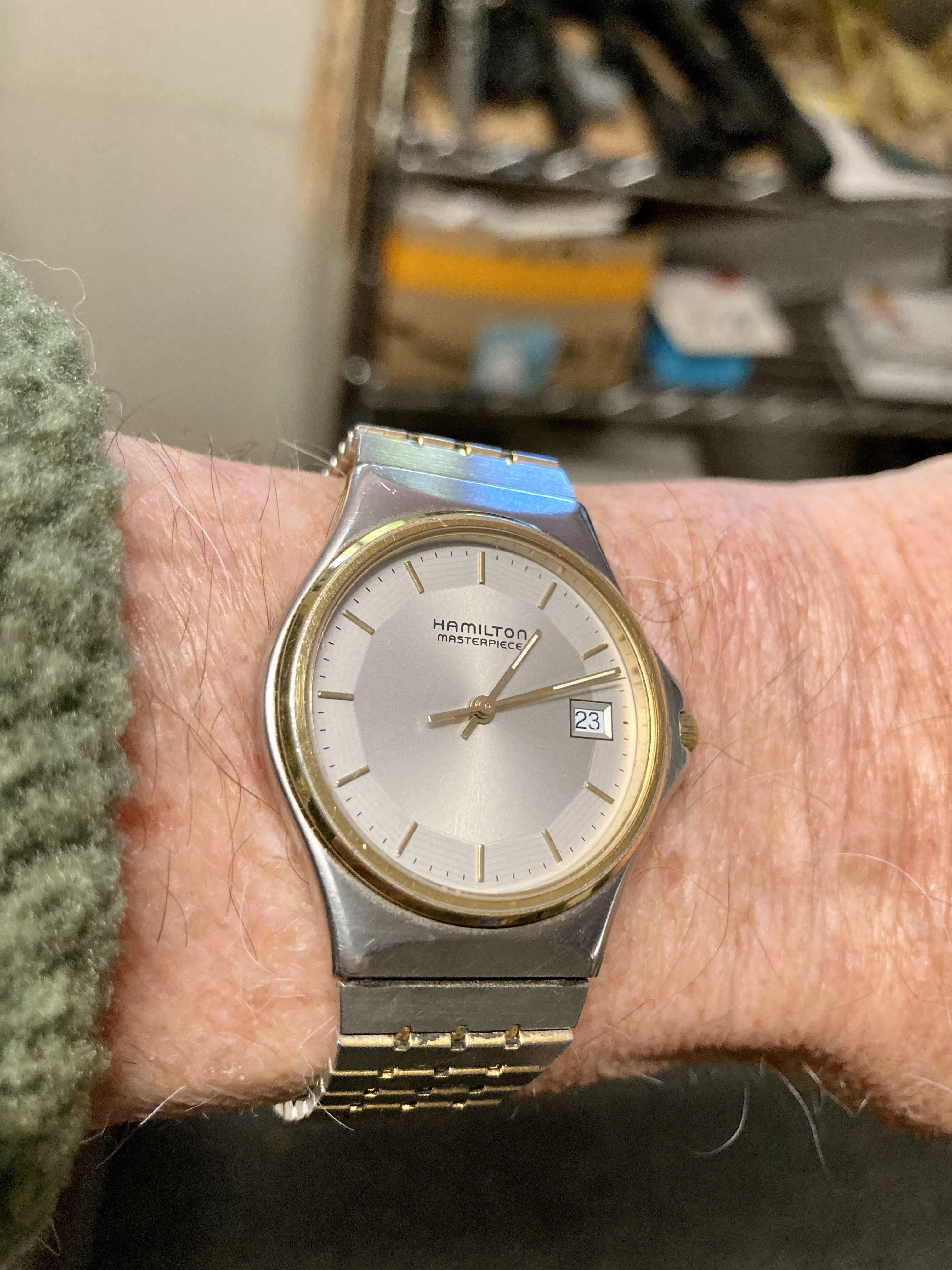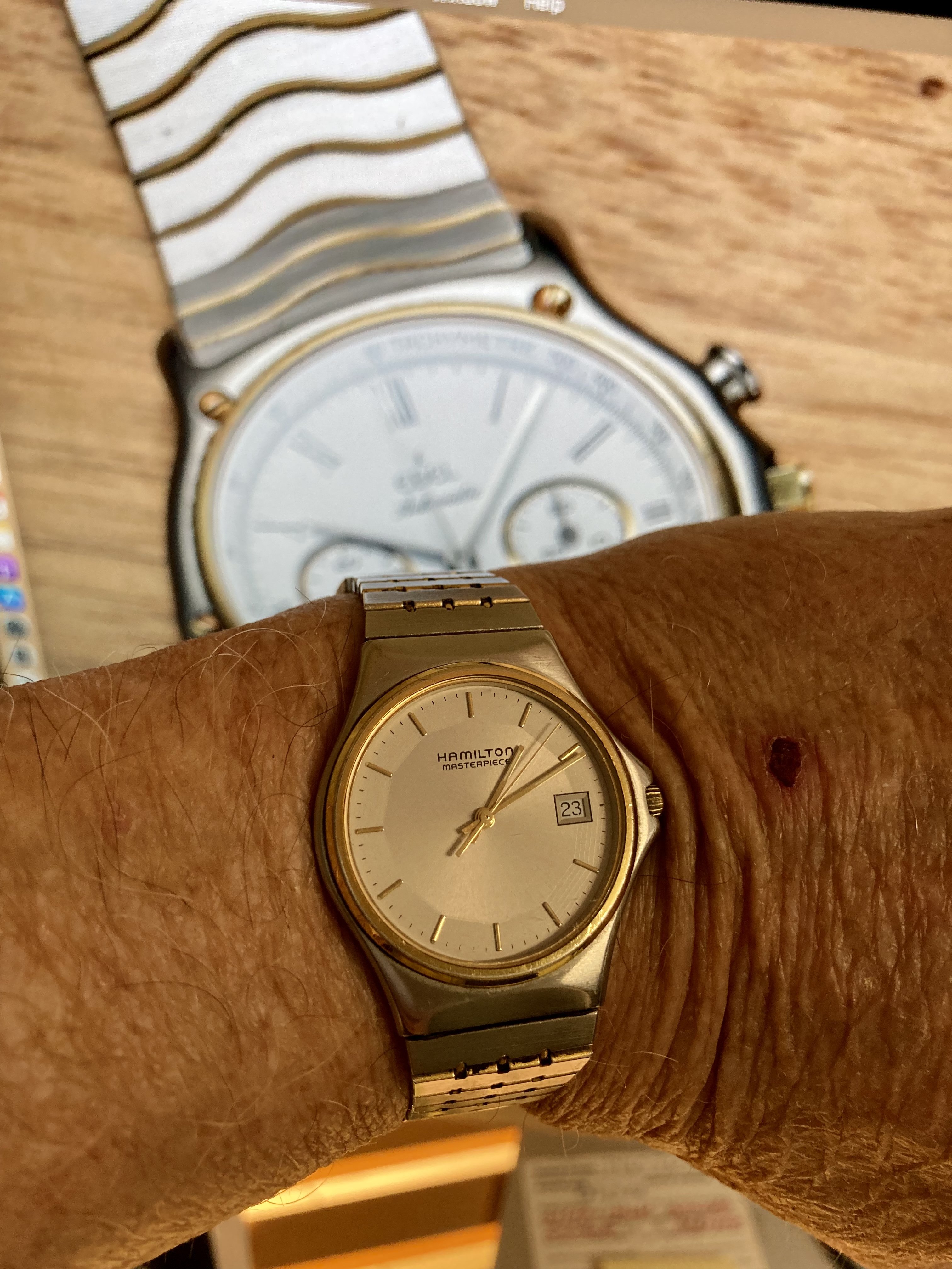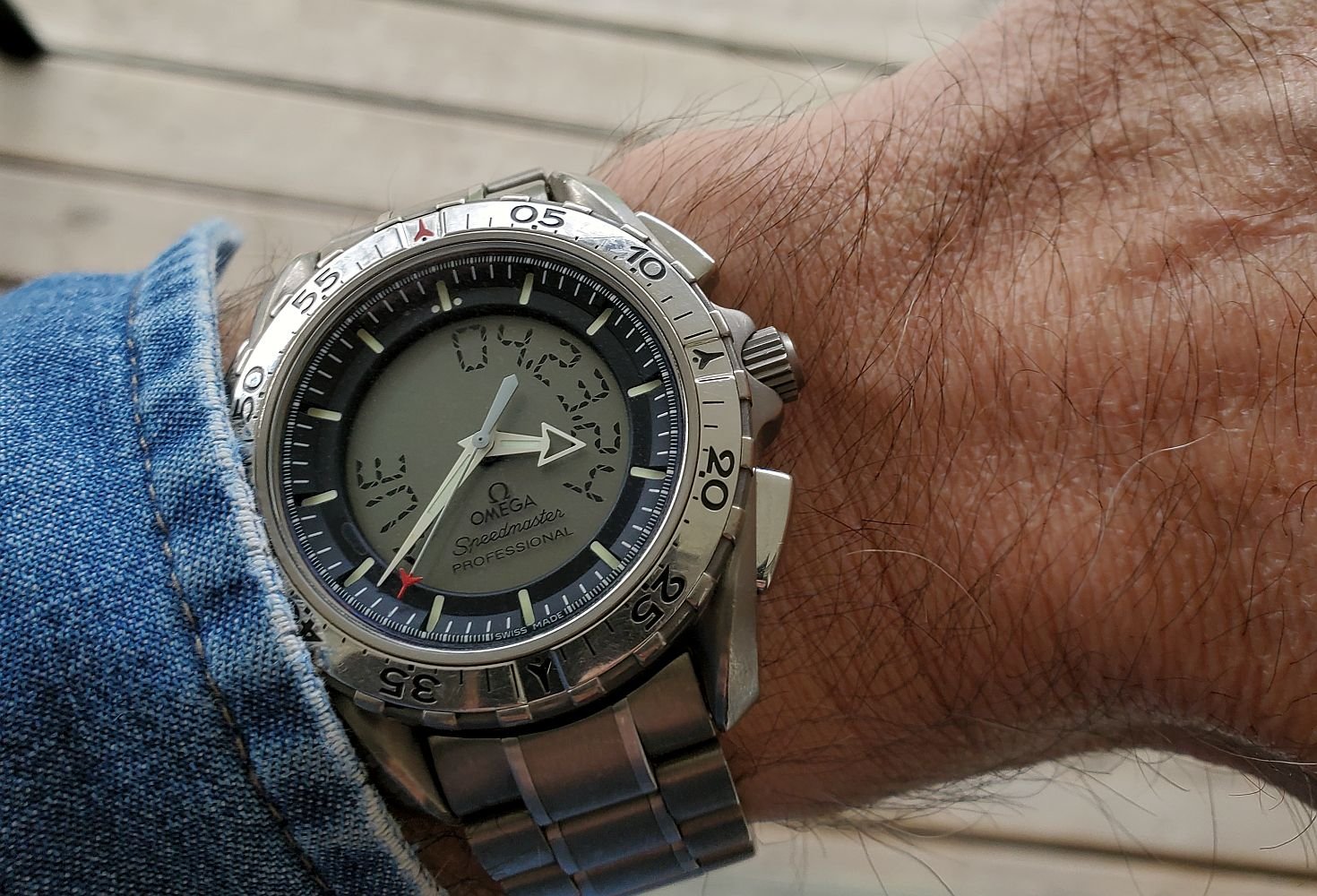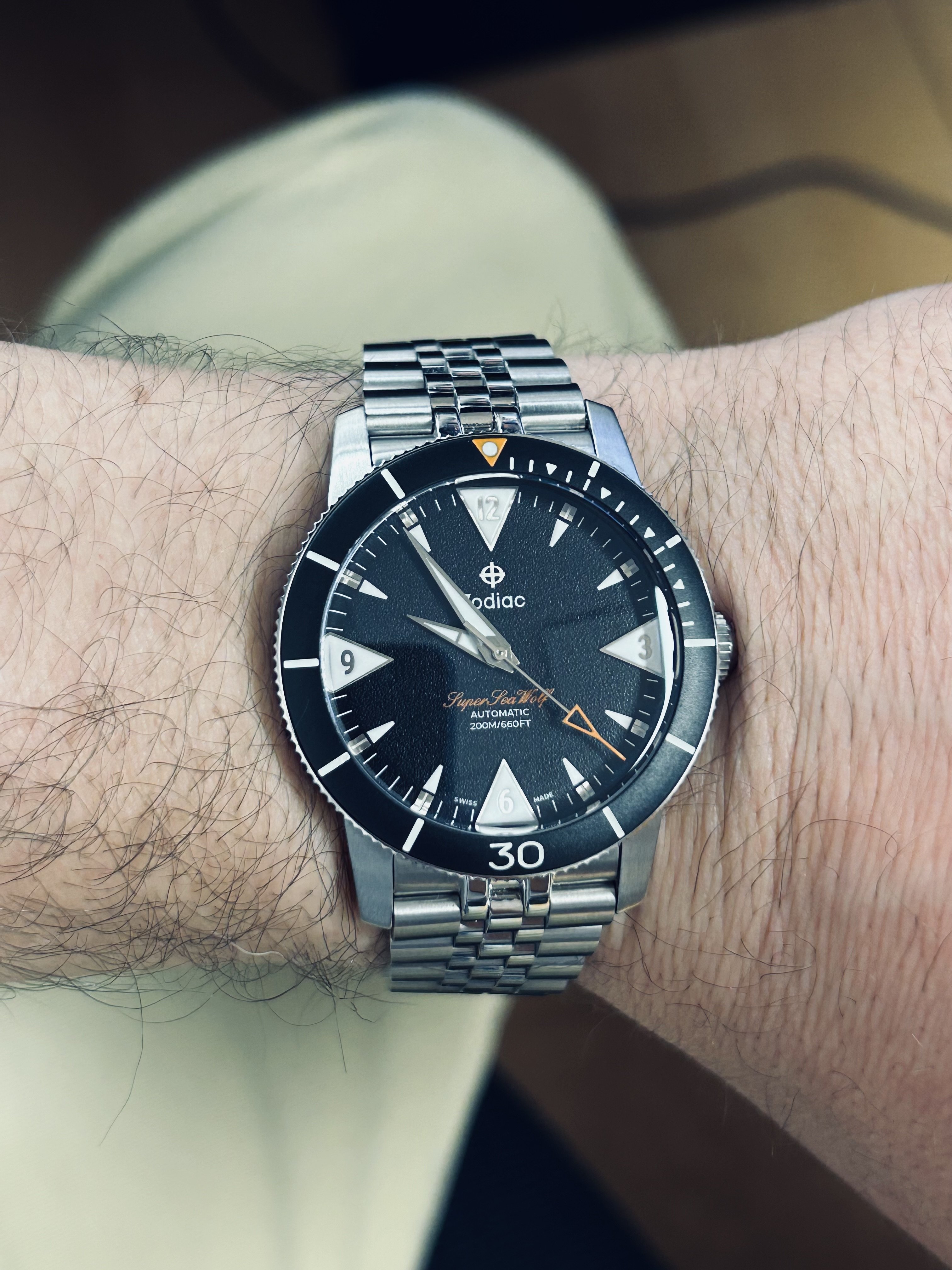 Several years ago, the Facebook group Asia Mechanical Watches Group commissioned Mathey-Tissot to make an homage to the classic 5500 Explorer. It’s been re-released with cool colors and applied indices through GDG watches but I’m partial to the old school printed dial. It’s got Tudor-esque faux rivet sides on the bracelet for no real reason that I can tell other than it looks cool and adds to the tool watch aesthetic.