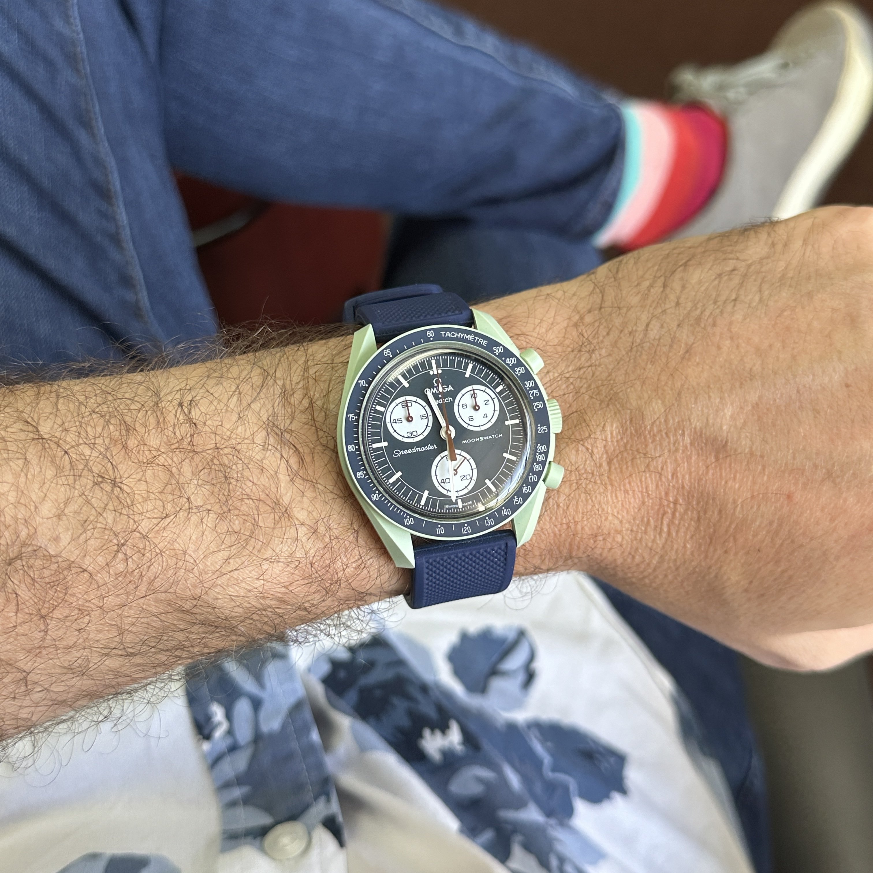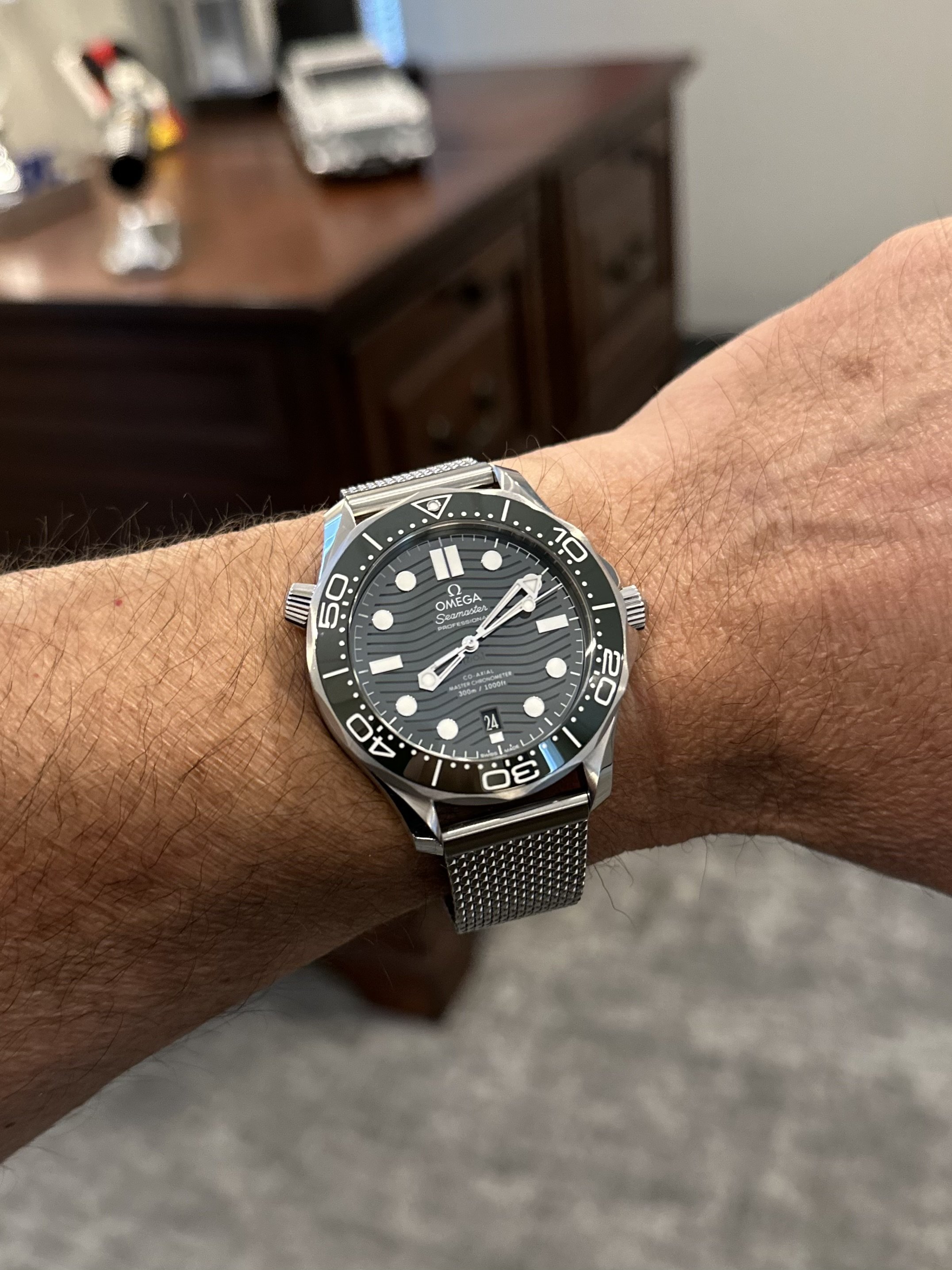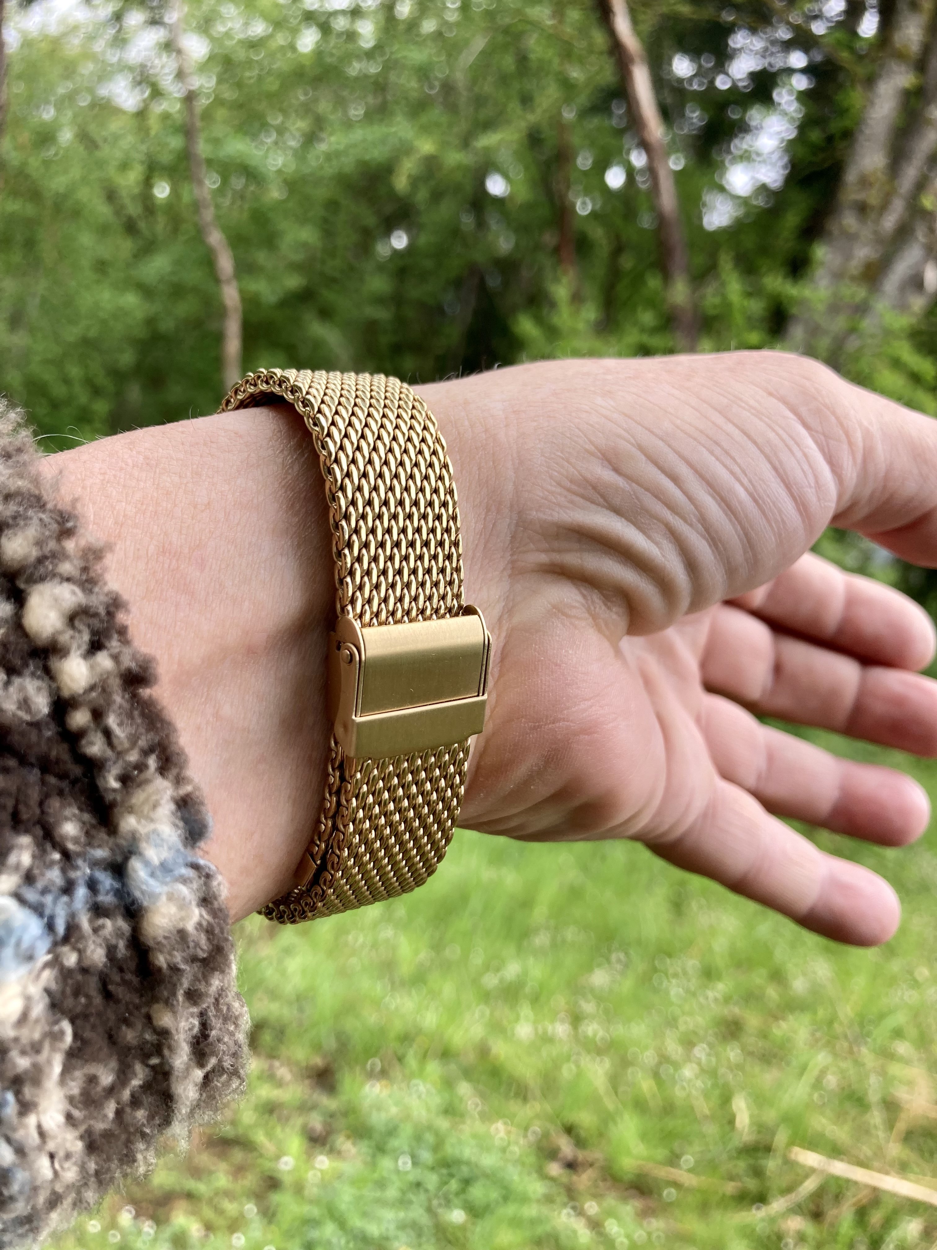 This is very comfortable and although I think the watch looks really good on the green lizard strap, this band is just so nice and slinky...
