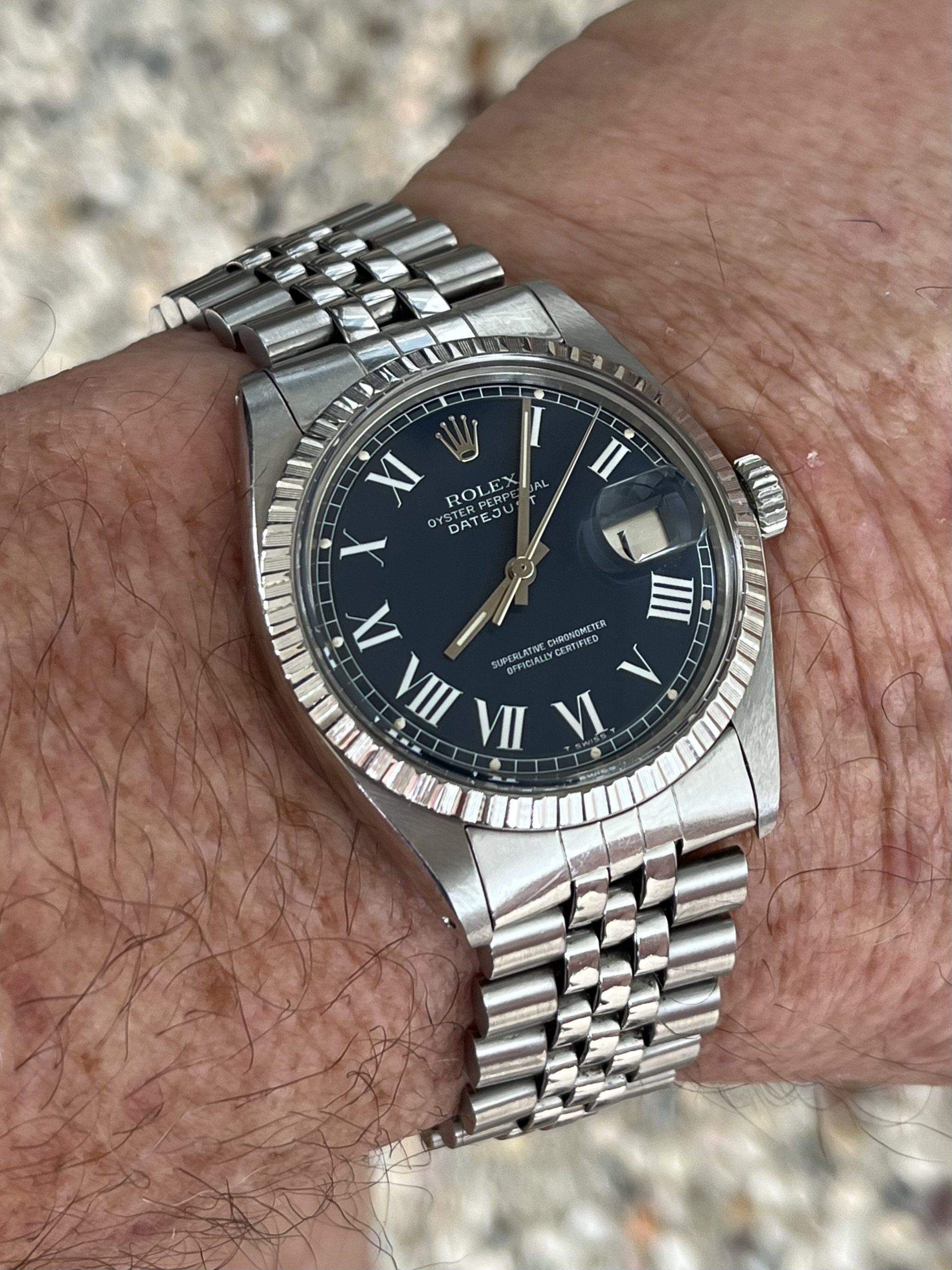 Posts 611 Likes 5,528 Charlie3755 ·May 1, 2024 Morning coffee with the ‘77 Buckley on a folded link Jubilee.