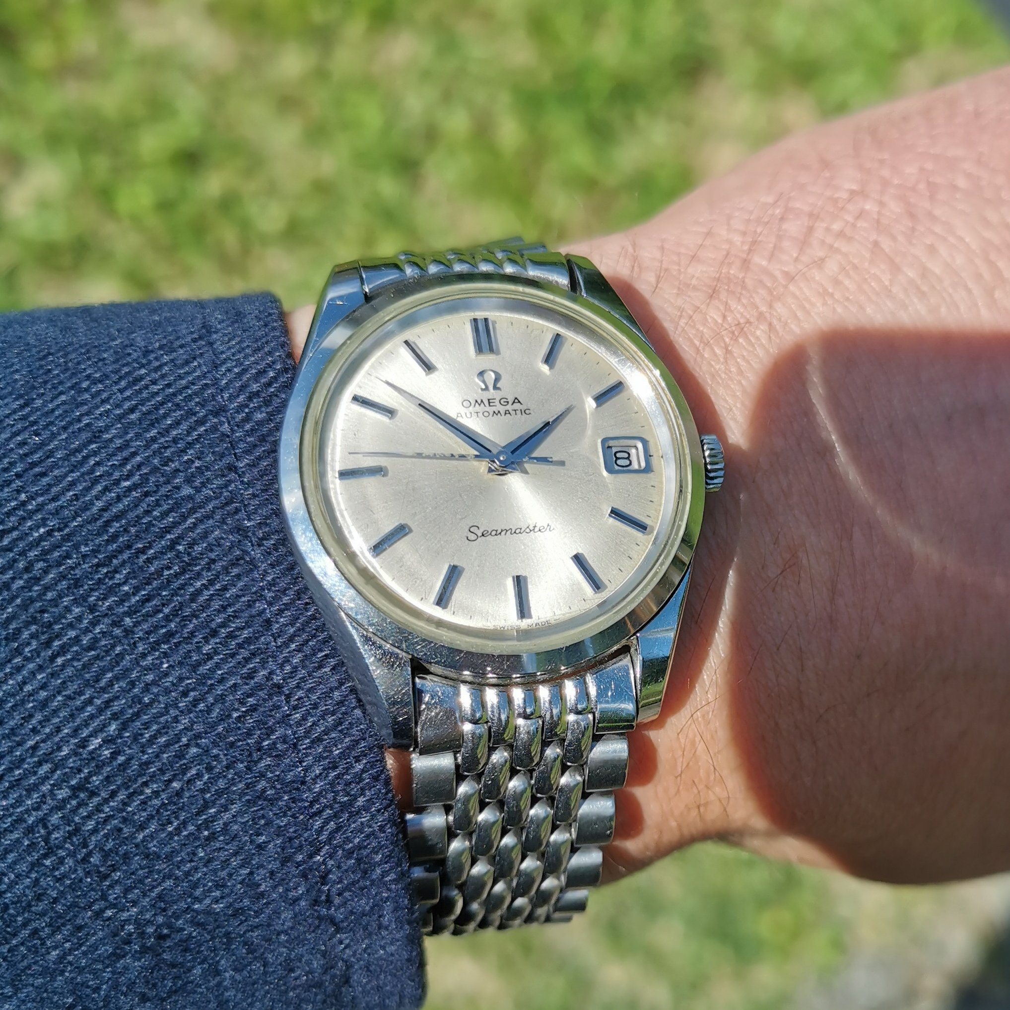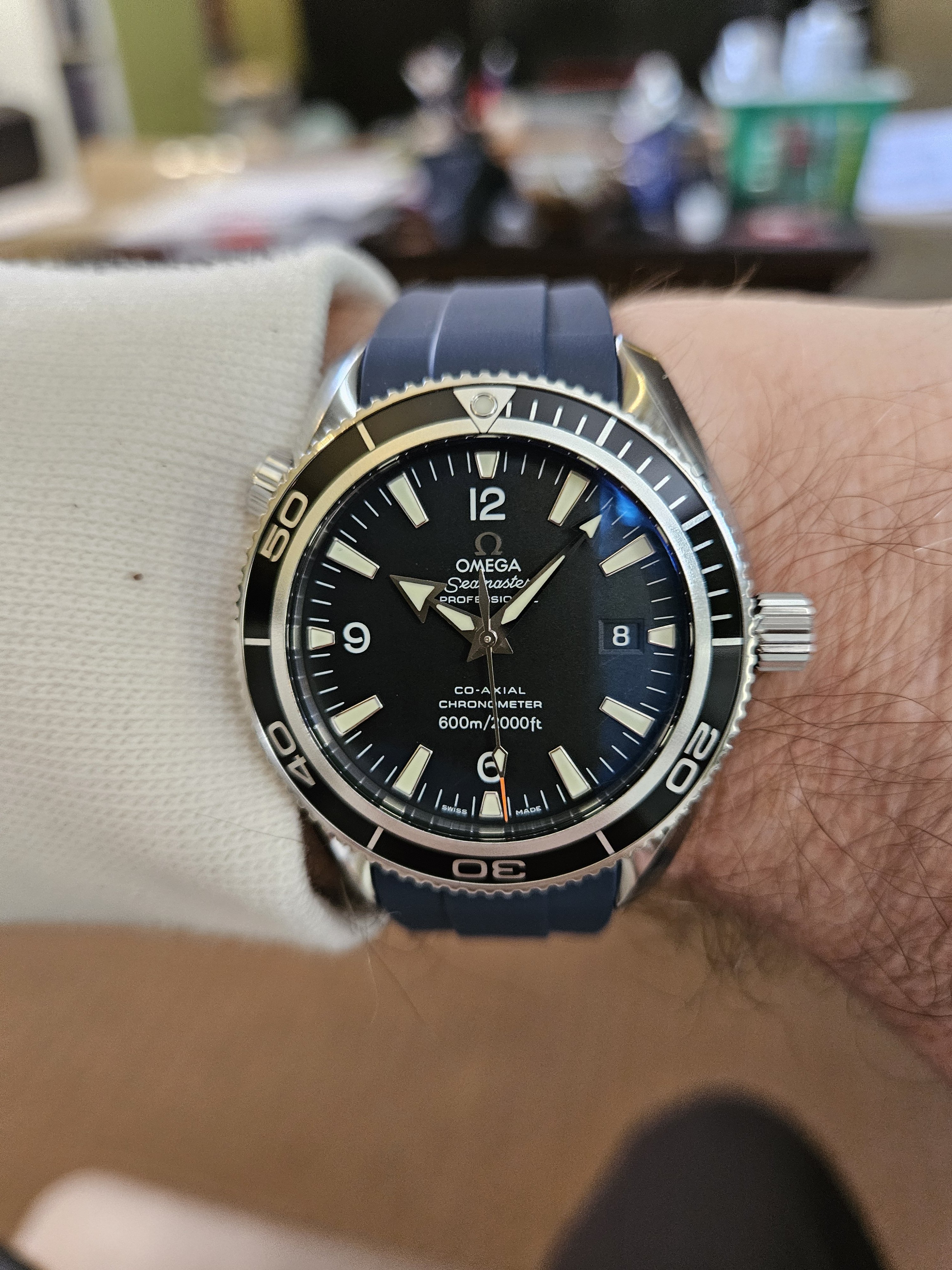 Back from the spa today with new sapphire crystal and I sandblasted the case. I think it looks better, never liked the polished finish, looked like chromed plastic. I think it looks better, but still a bit too shiny.