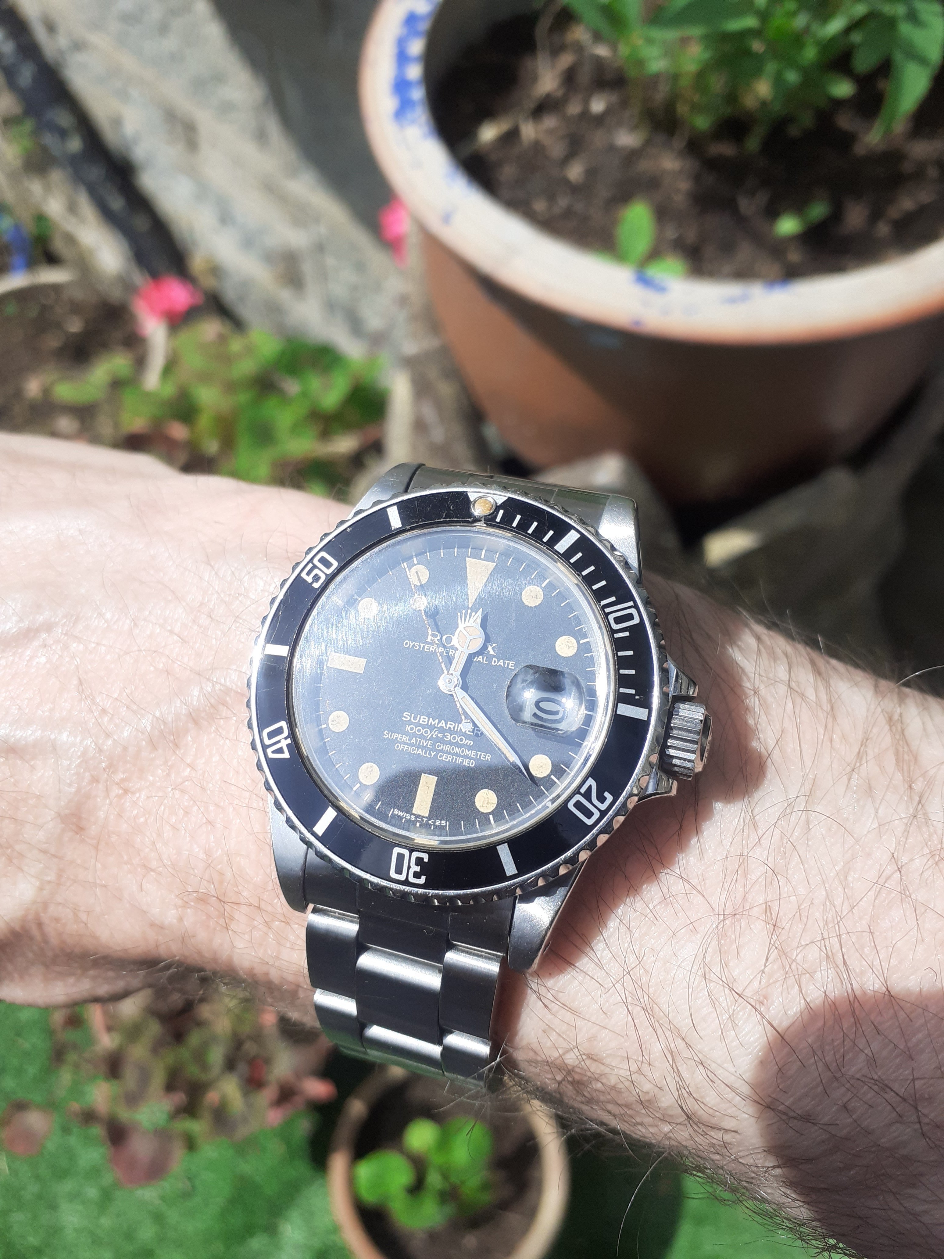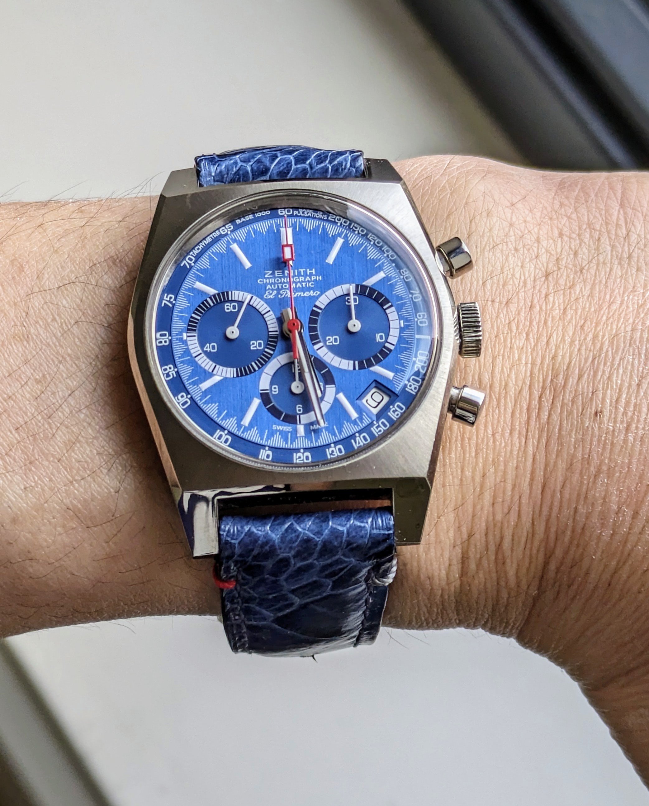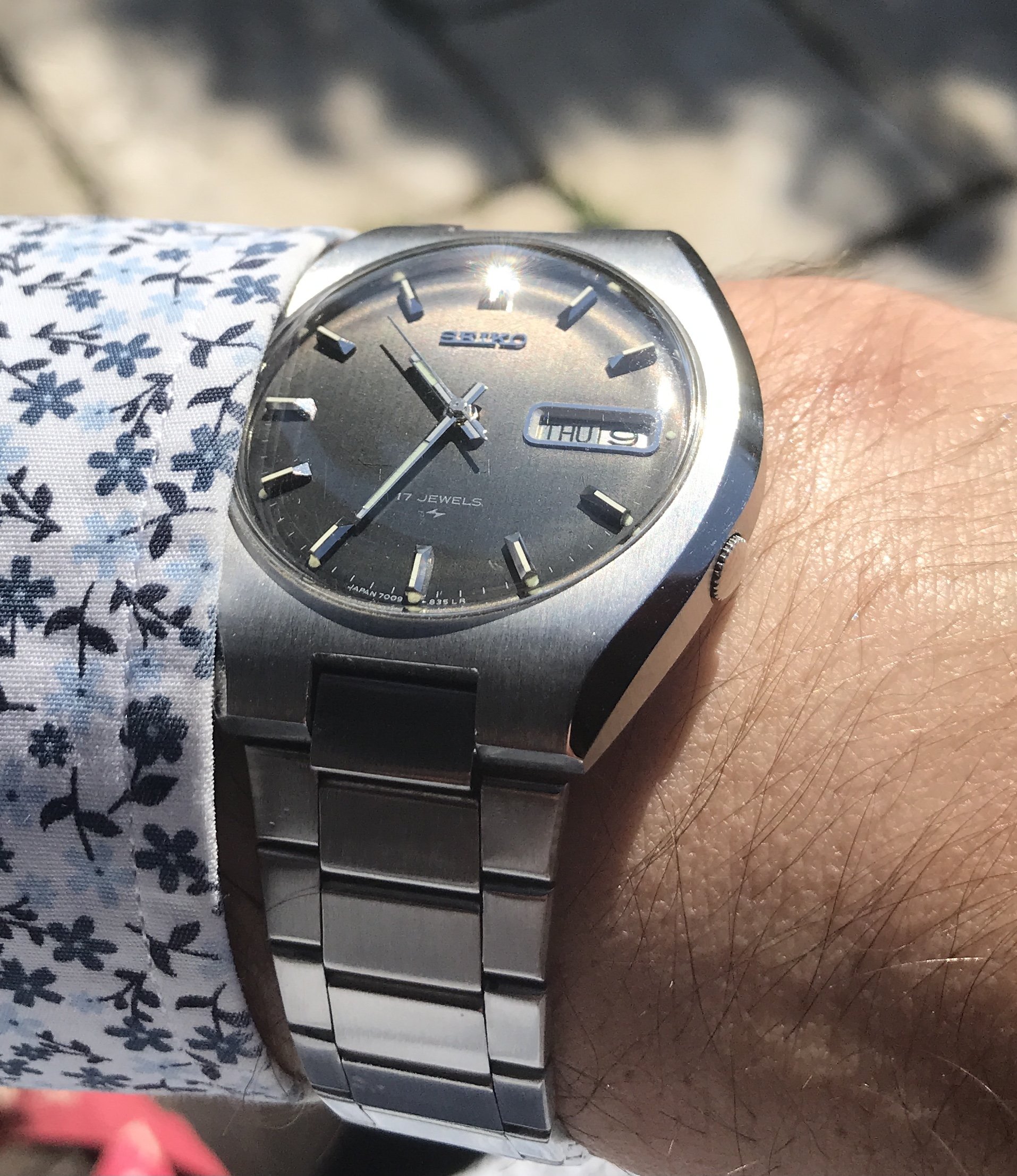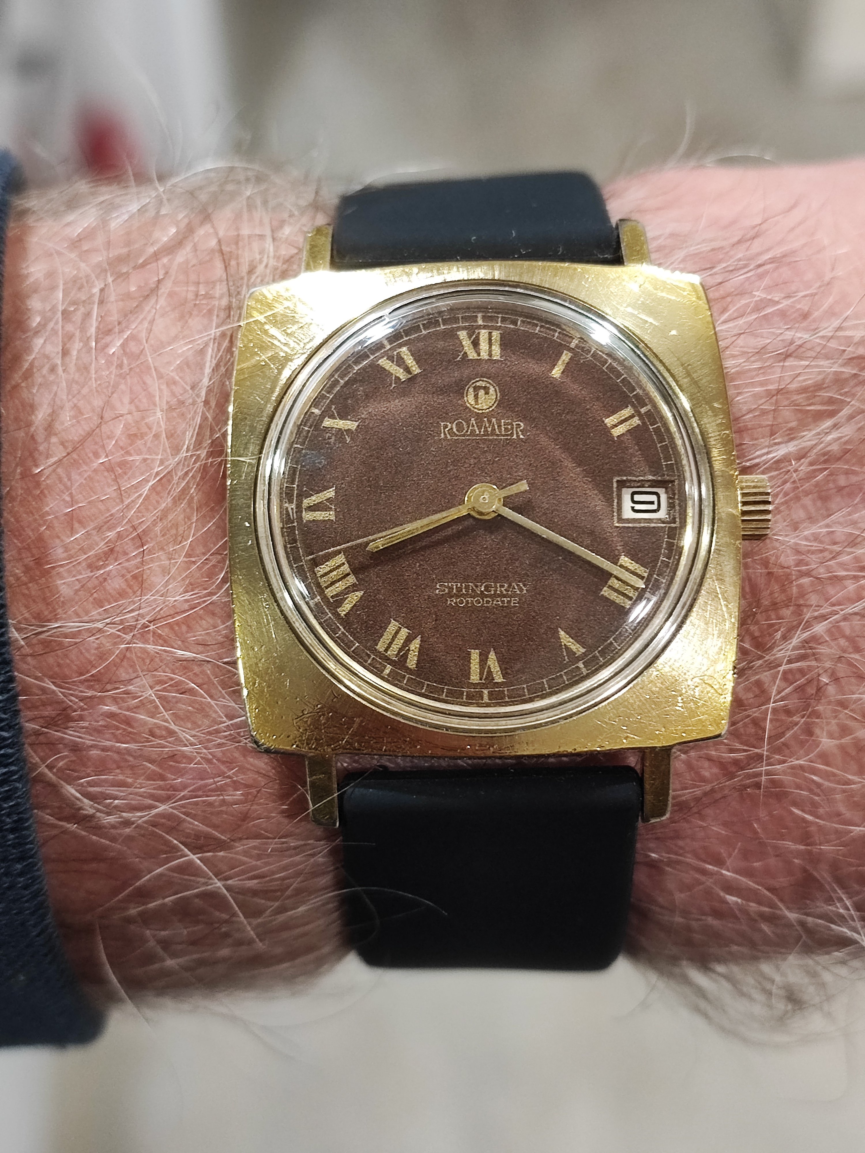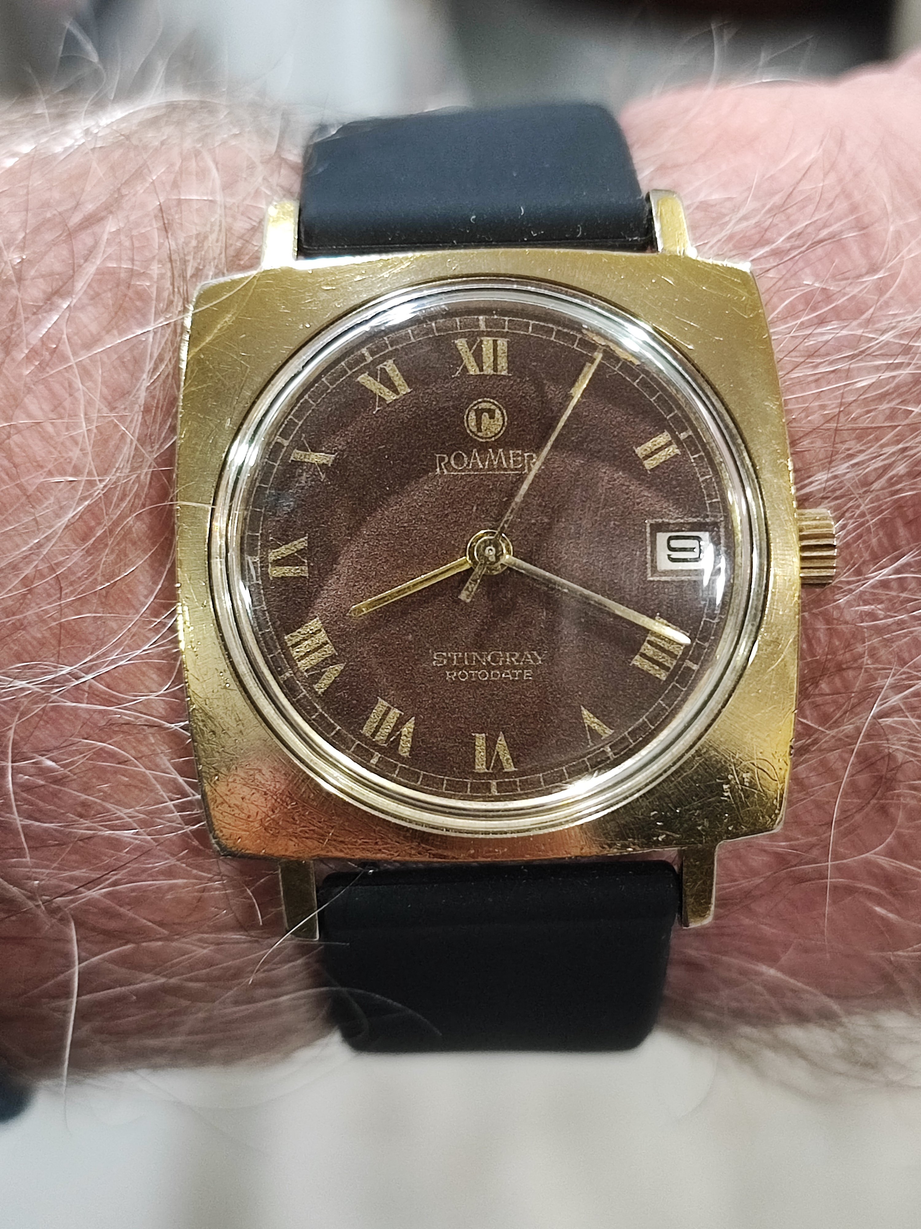 When it was opened by my watchmaker ( these are mono cases) it had a bunch of rust around the winding pinion and gear but luckily I had a parts movement for him to rob though he had to manufacture a click spring, so repaired and serviced and looking like a million bucks with that late 60 70's vibe.