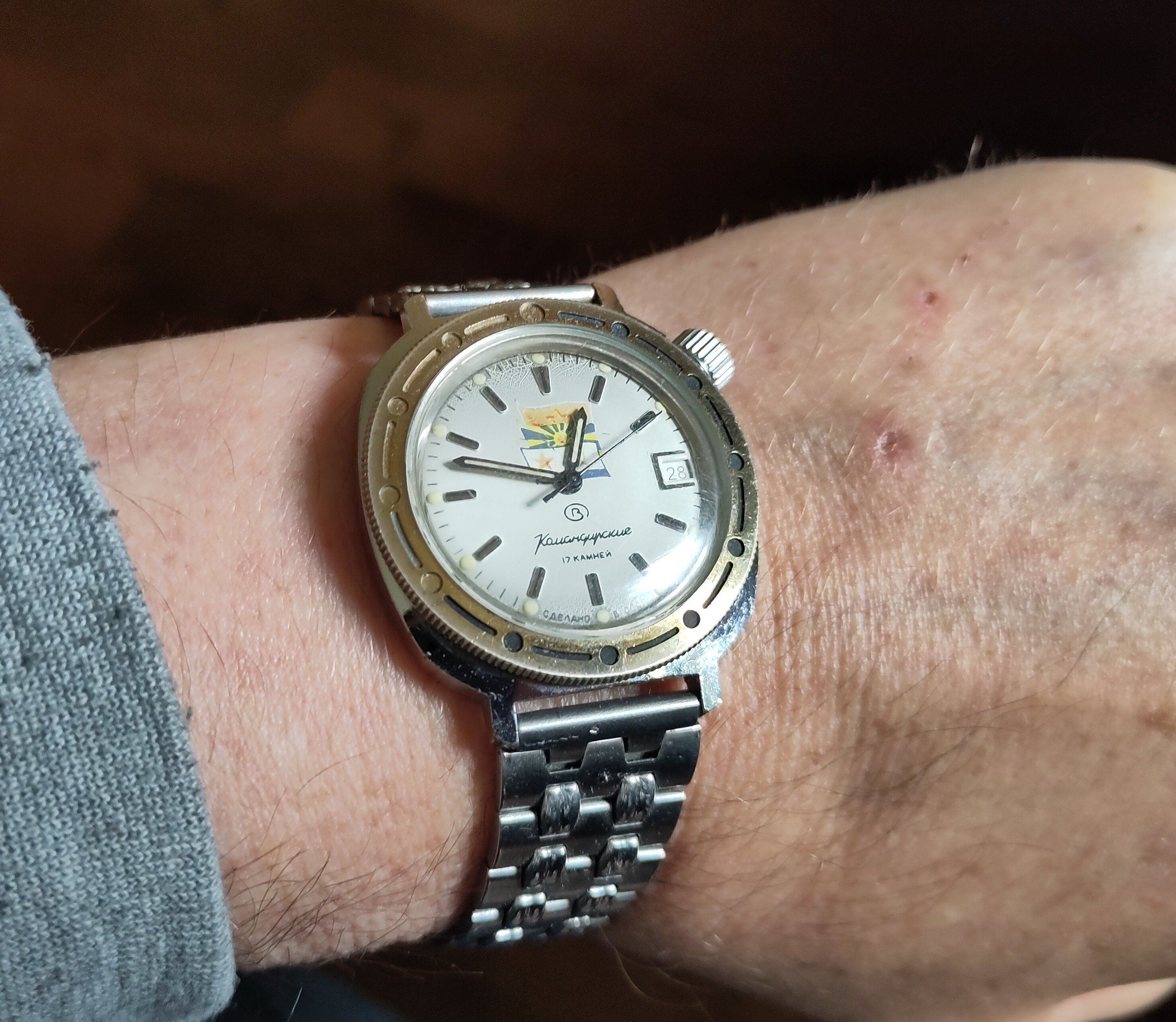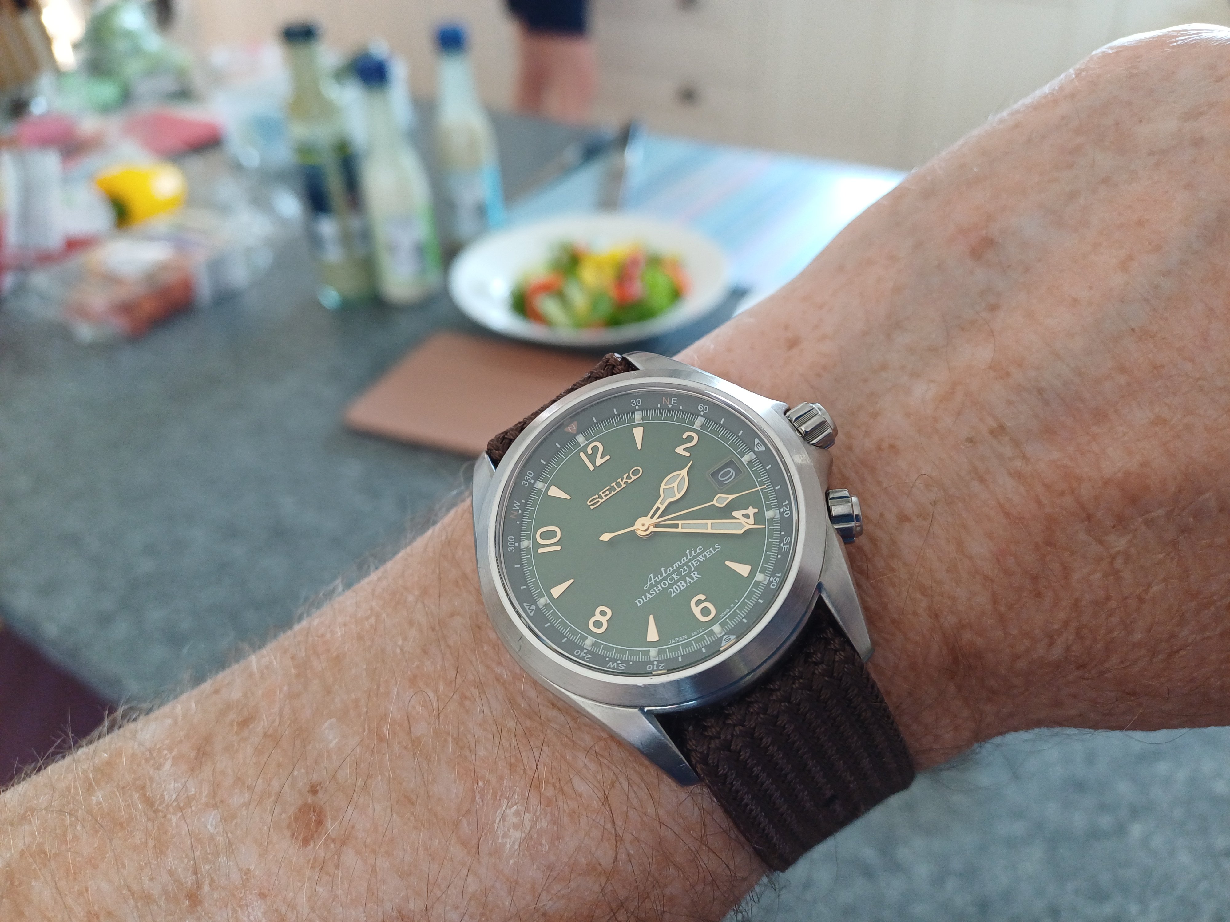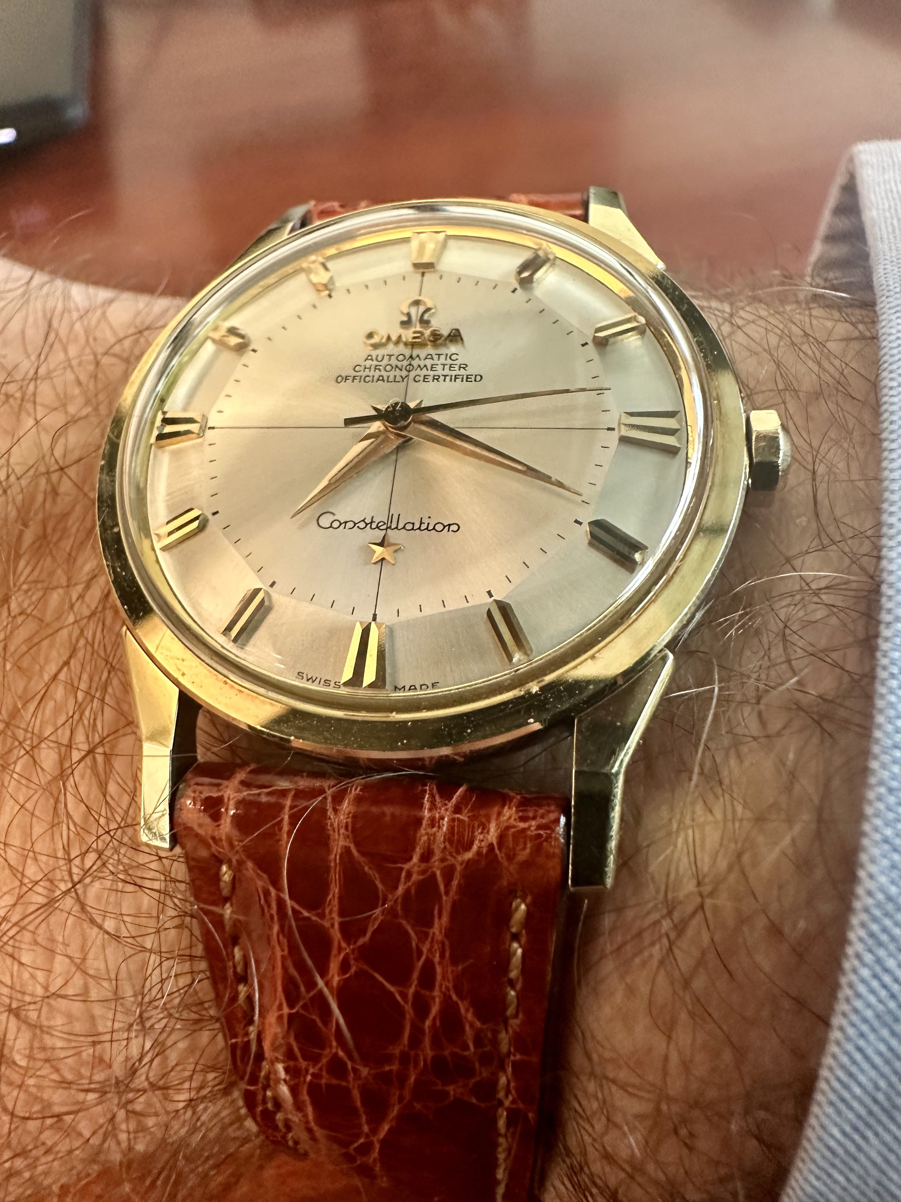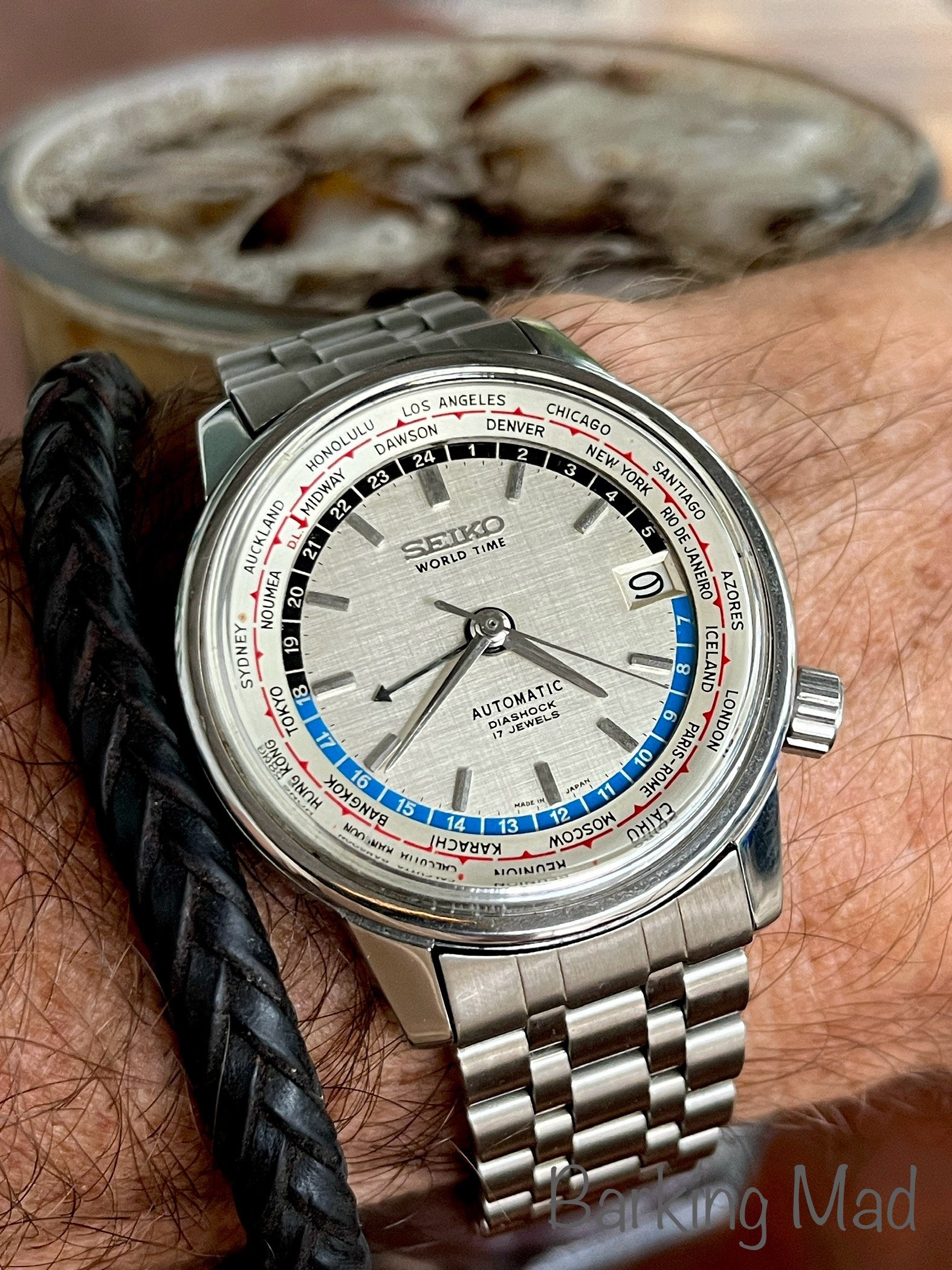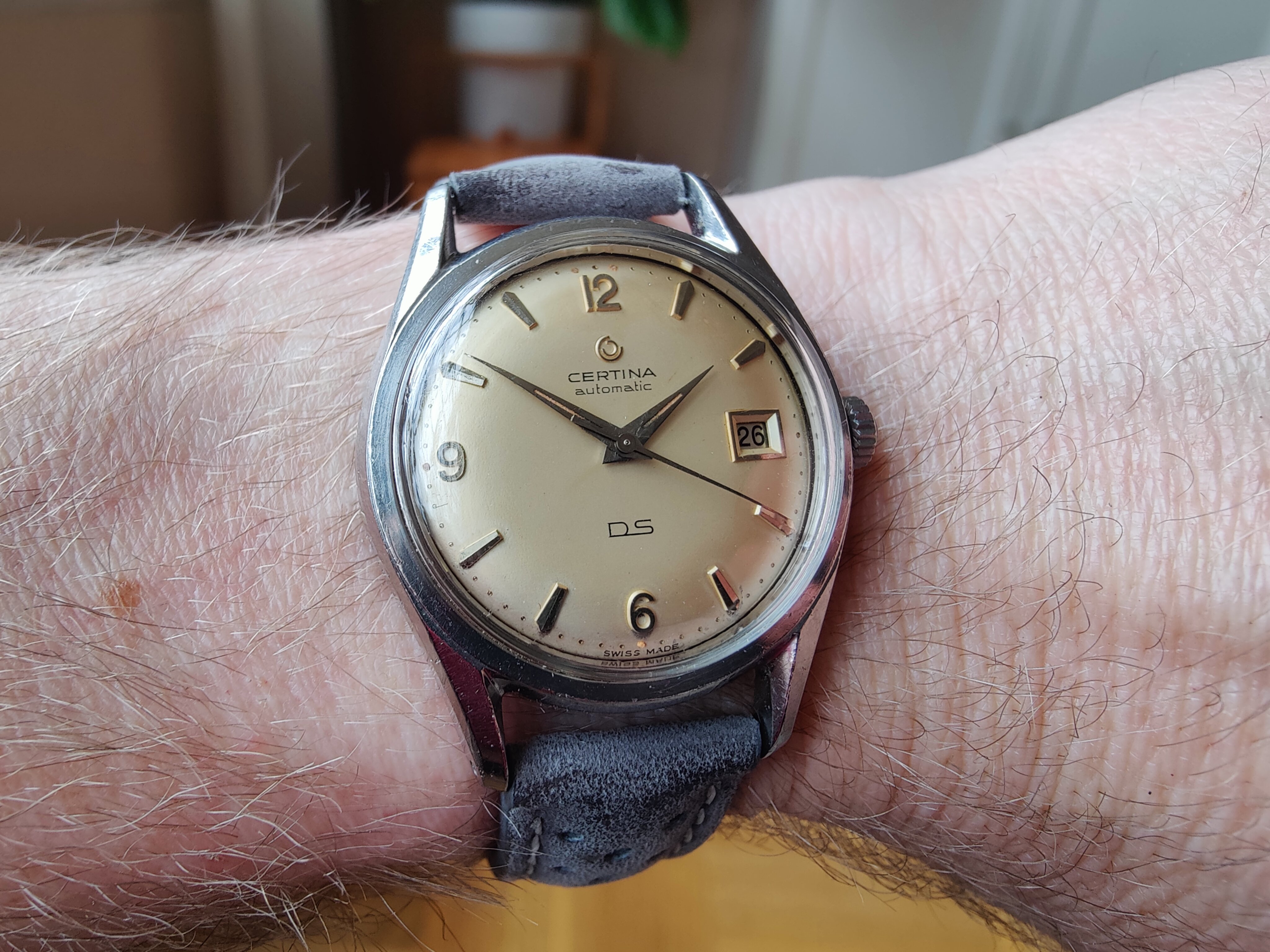 When it was opened by my watchmaker ( these are mono cases) it had a bunch of rust around the winding pinion and gear but luckily I had a parts movement for him to rob though he had to manufacture a click spring, so repaired and serviced and looking like a million bucks with that late 60 70's vibe.