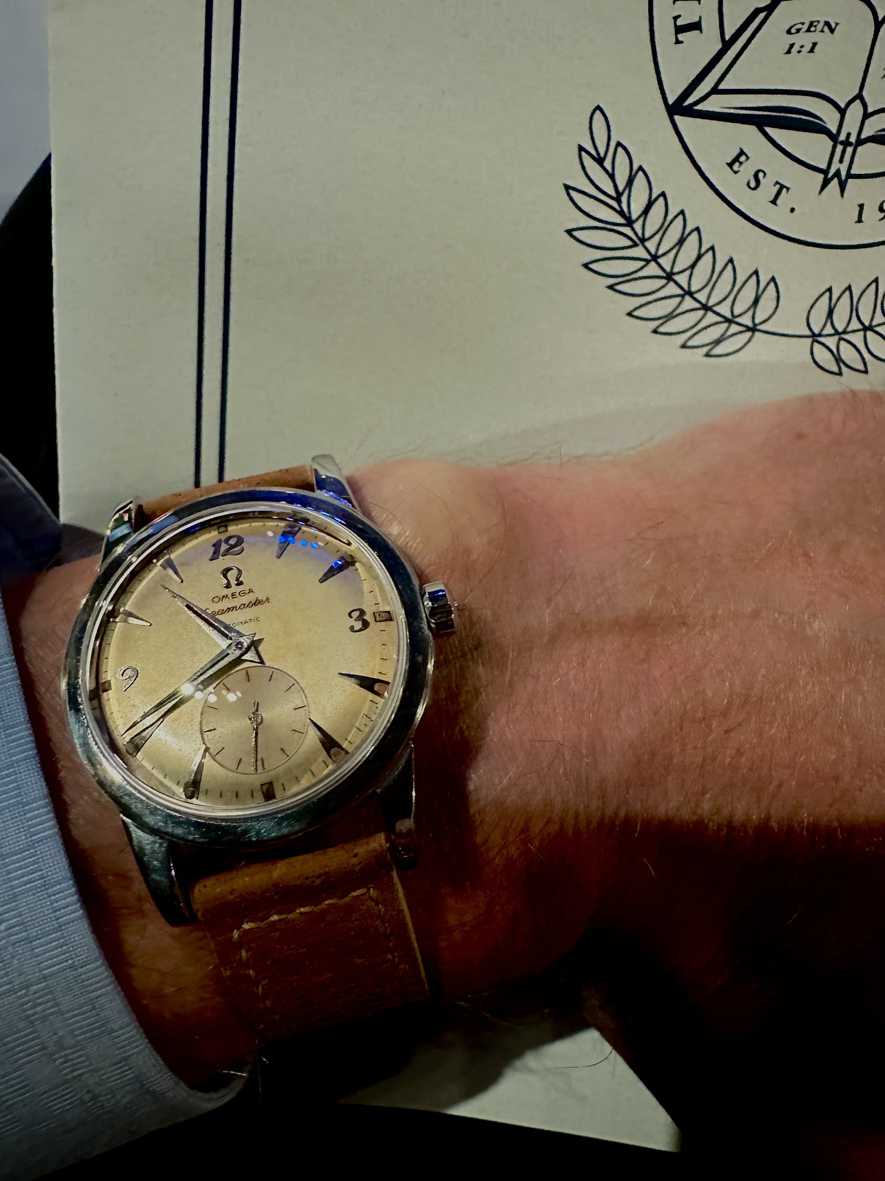 Posts 1,053 Likes 4,264 CBM1590 路May 11, 2024 Commencement is a time-honored tradition. I marked this one with a 72 year old Seamaster.