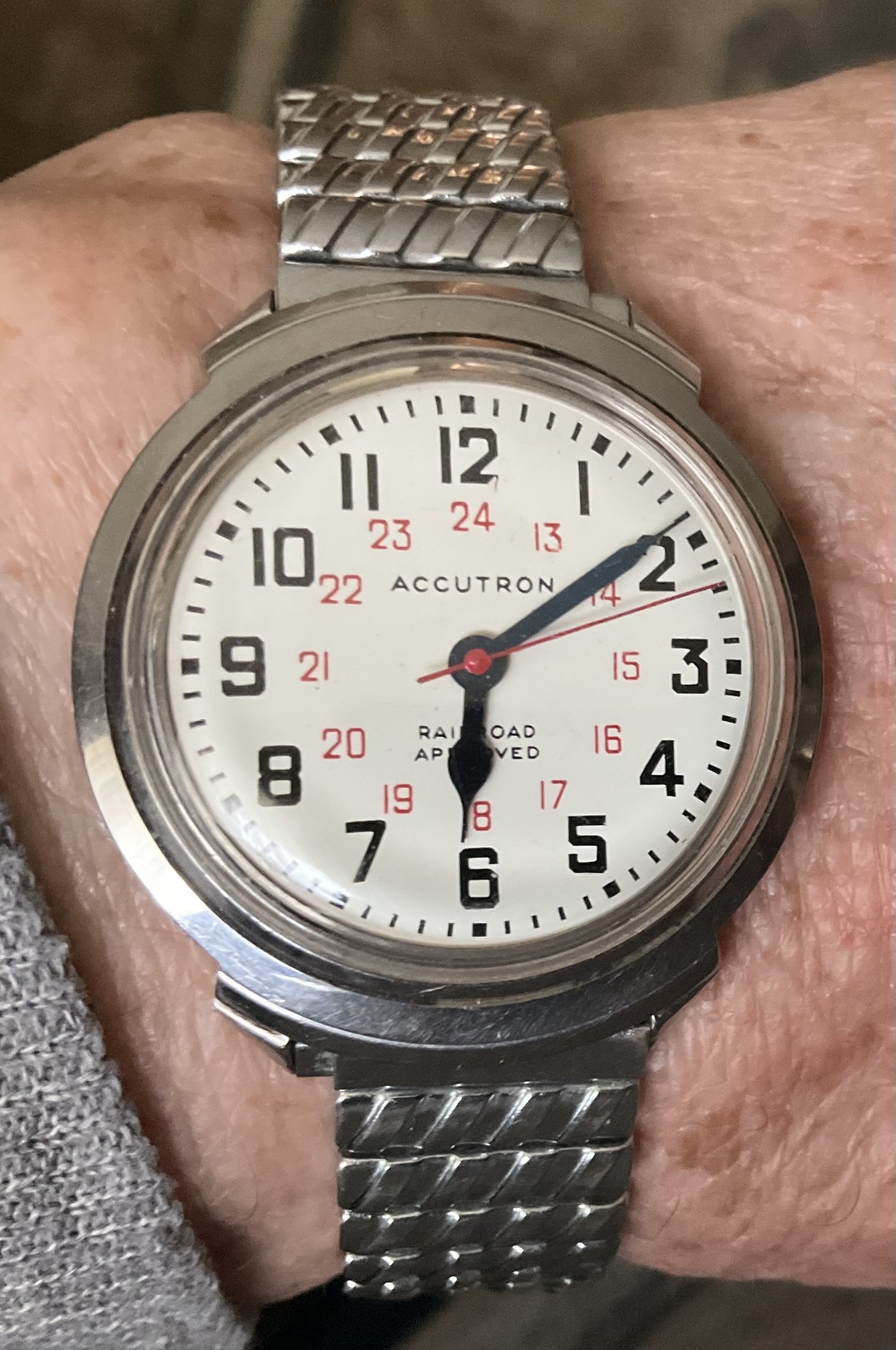 In honour of the CP KC steam locomotive which is currently on its way from its home base in Calgary, to Mexico City, honouring the merger of Canadian Pacific Railway, and the Kansas City railway, I am honouring this venerable 95 year old locomotive by wearing one of my Accutron railroad watches.