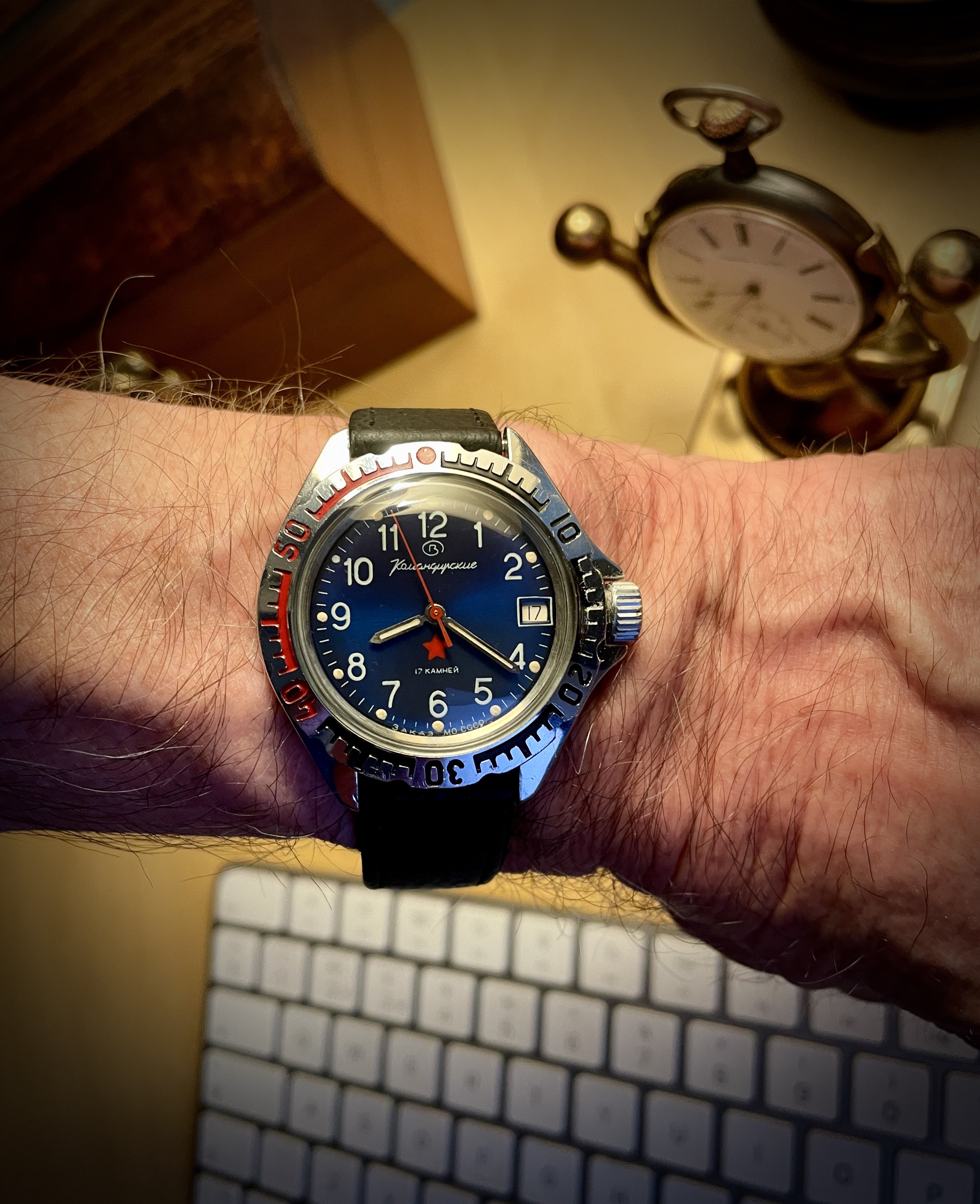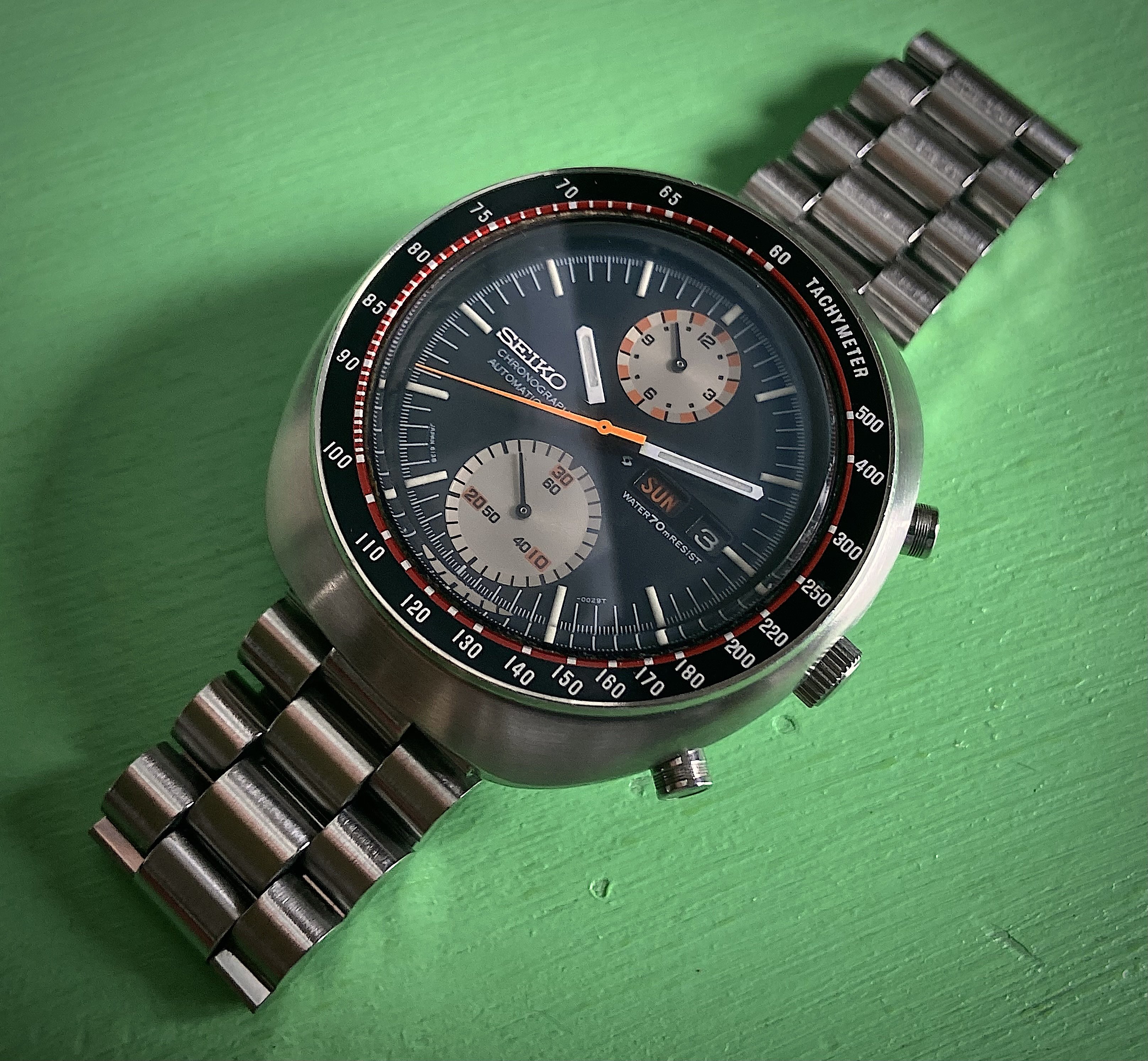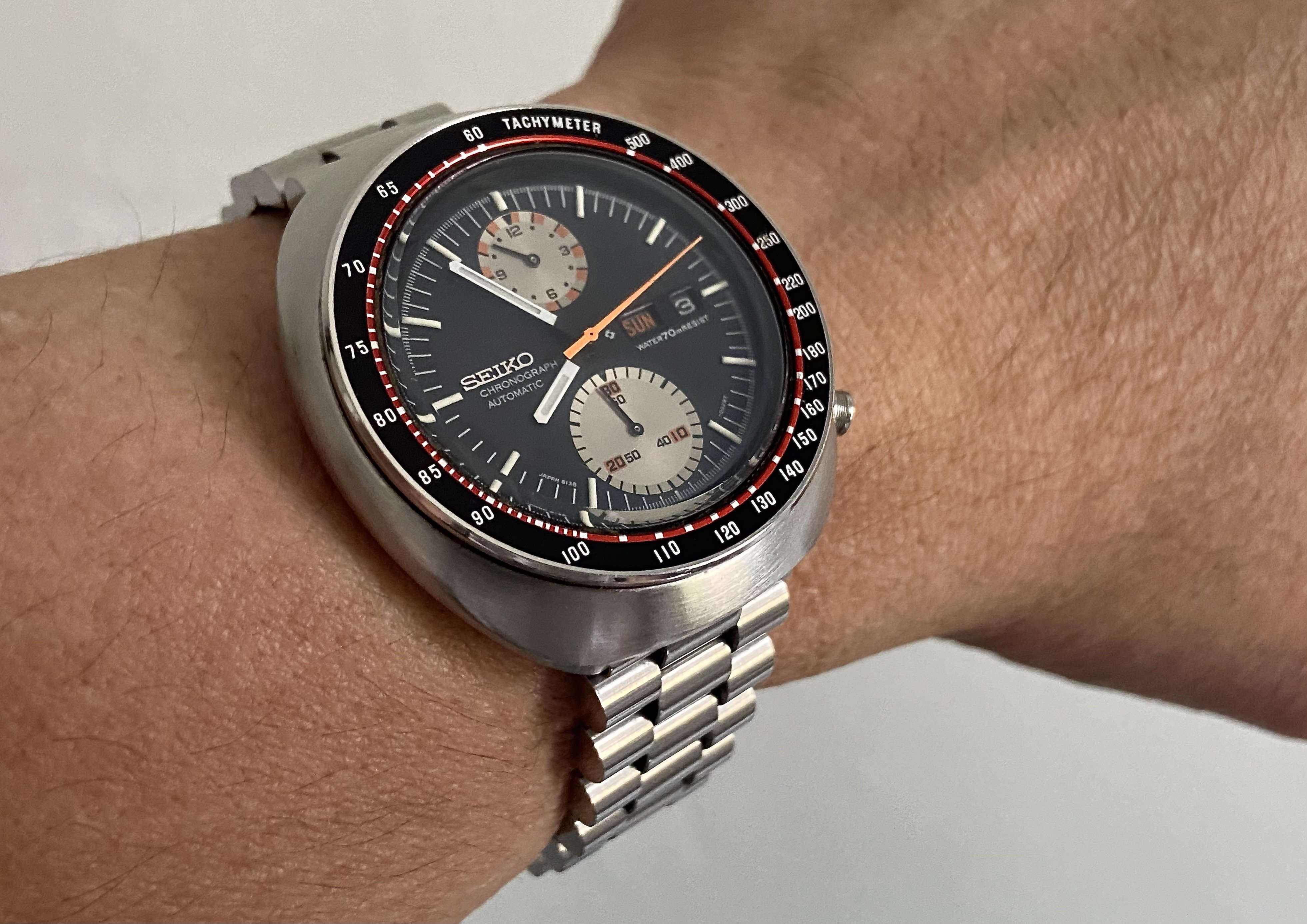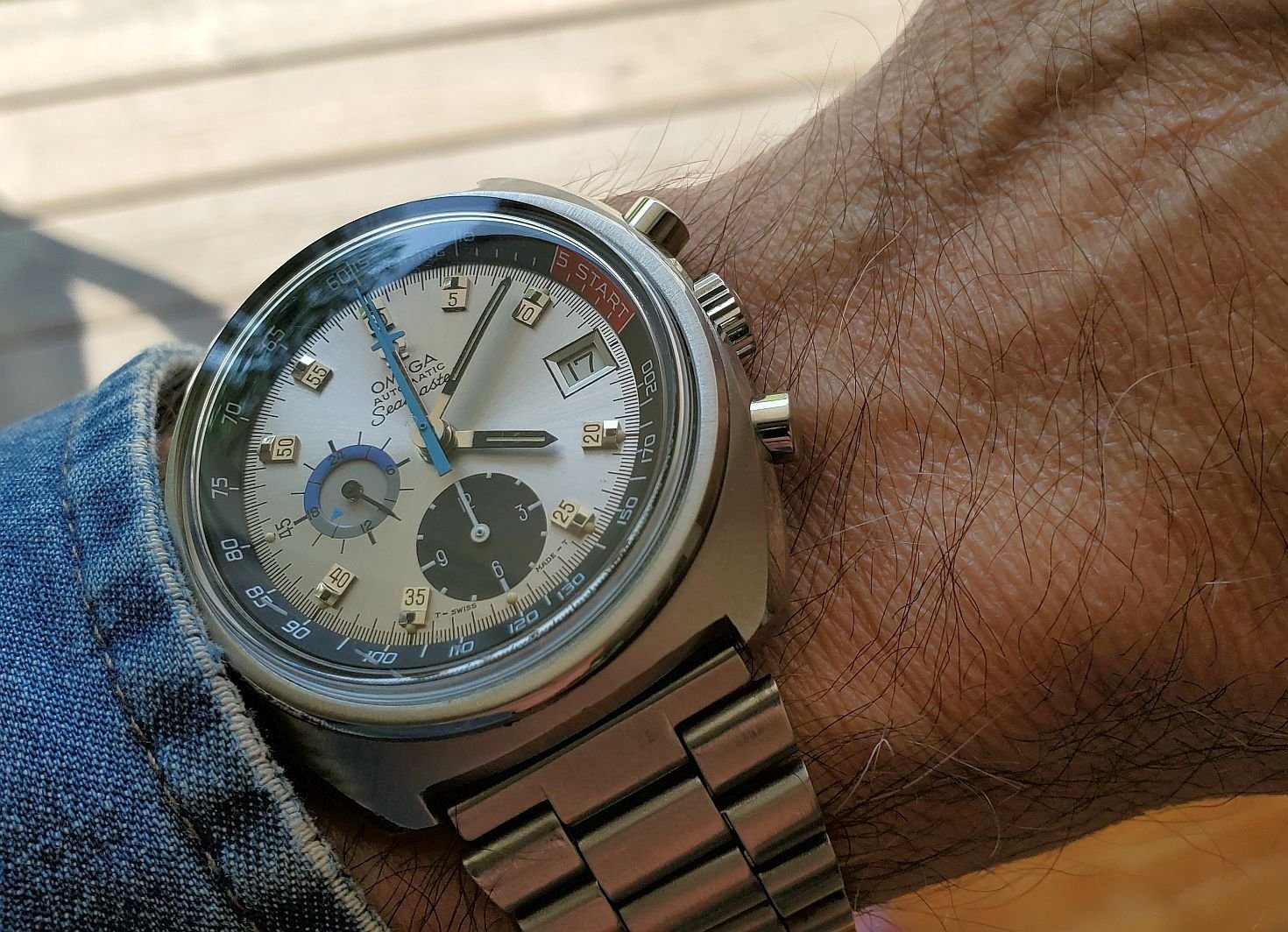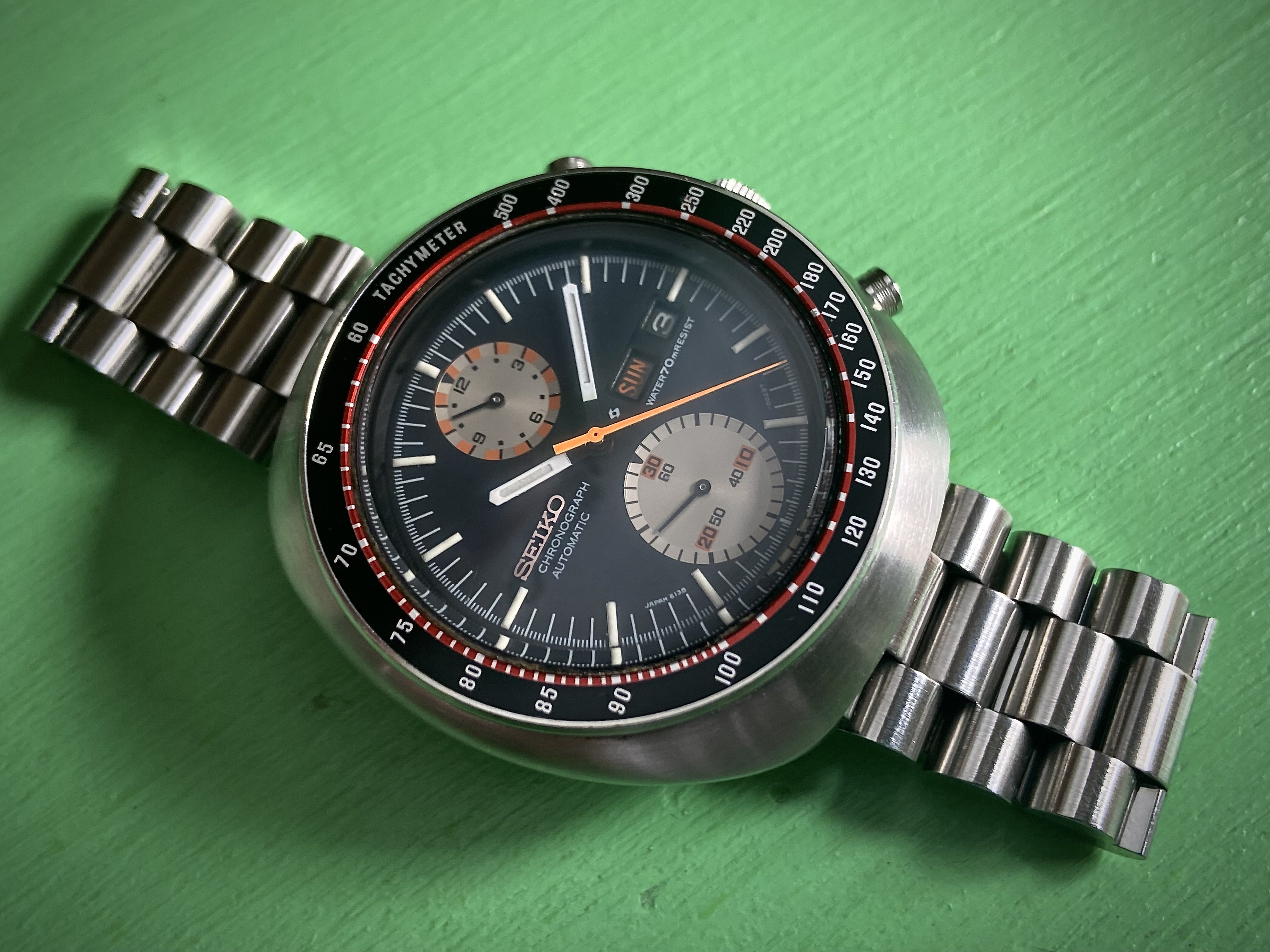 Not wearing this one today. It’s not mine. I serviced it for a friend. A bit different. The only example I have ever seen. If you depress the button at the 6:00 position, voila, it pops open to reveal a picture of your choice. In this instance, the picture is of the watch owner’s children. Date coded for 1951. In excellent condition except for a small chip in the glass crystal.