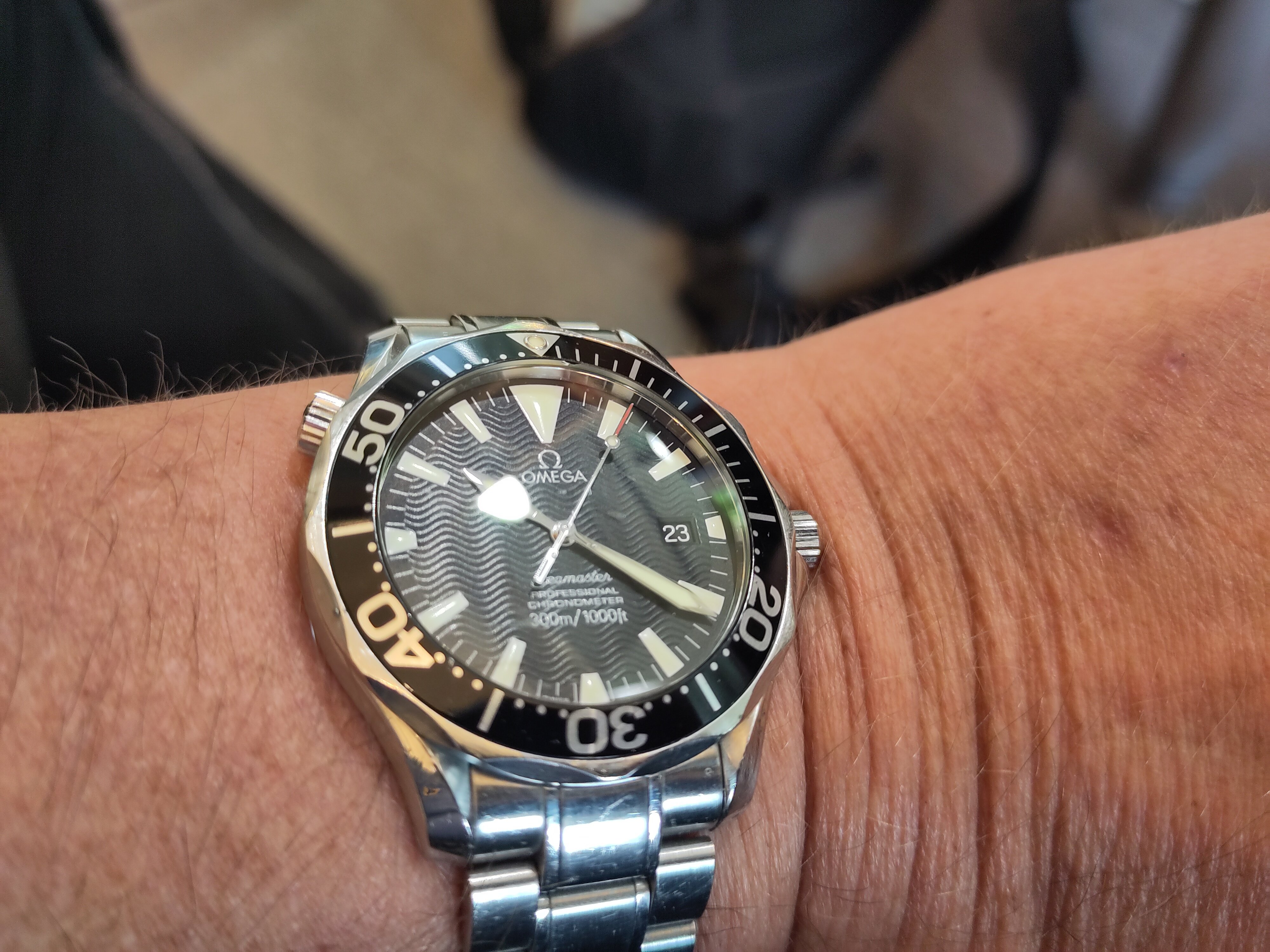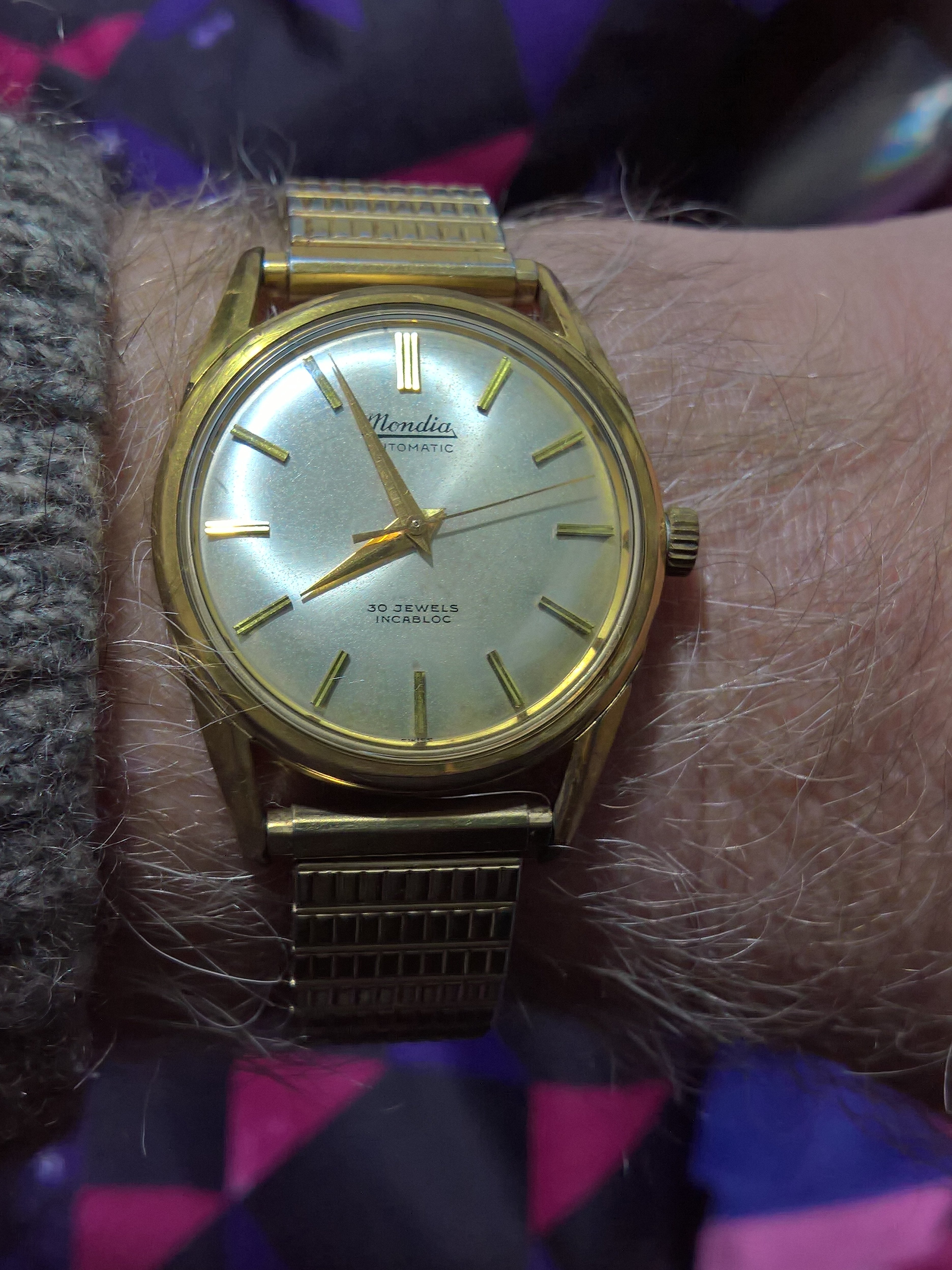 I have many “hummers”, mostly Bulova Accutron 214 and 218 models. I have one Omega F300 model with the ESA tuning fork movement, and I also have this Eterna with the ESA f300 movement in it. This one has about the strongest character of any of the hummers. One of two I’m wearing today. I don’t wear this one much as it suffers from a typical f300 problem. The calendar doesn’t work. I need a metal date dial for it. I’ve heard these are available. Anyone know a source?