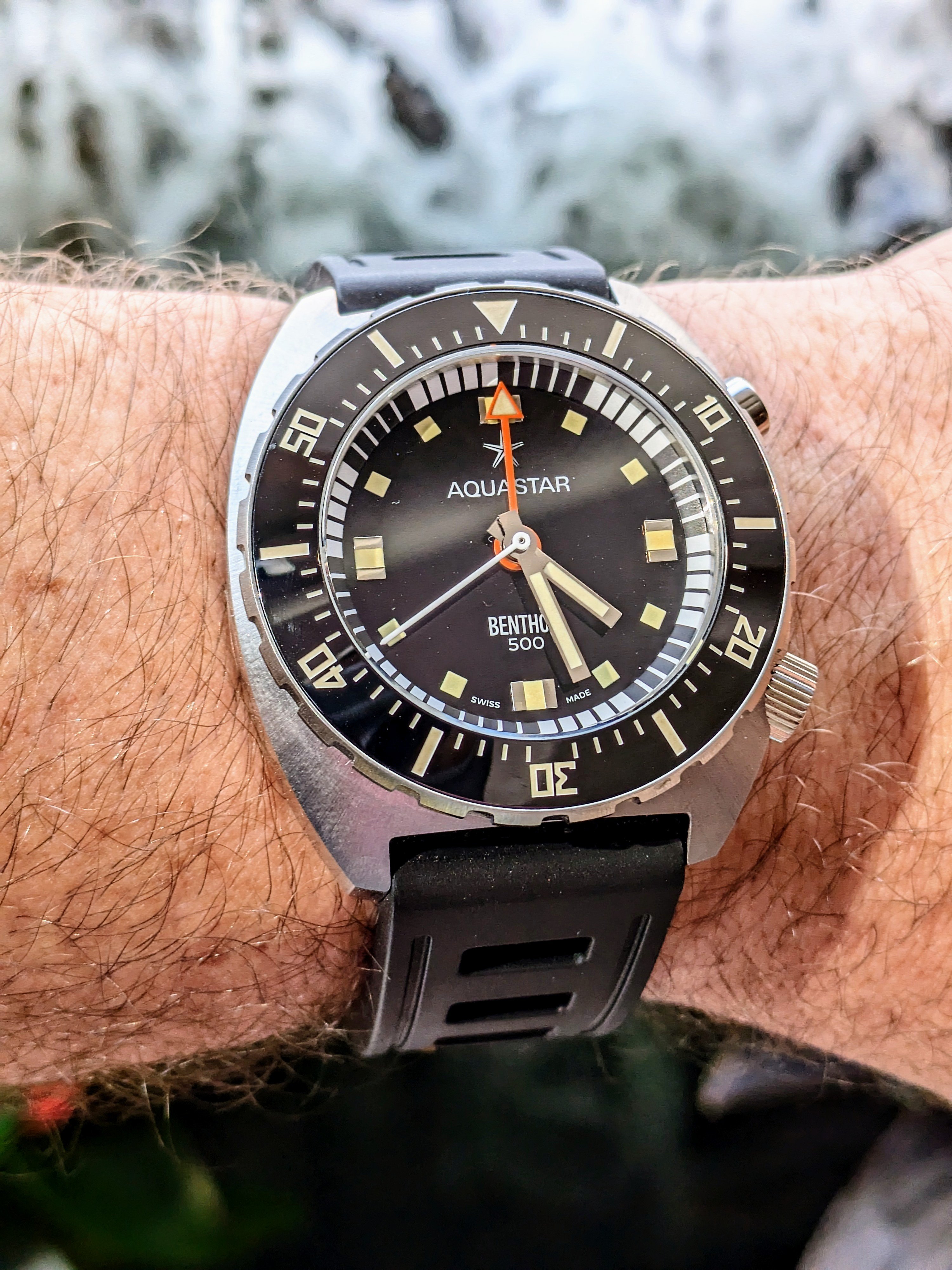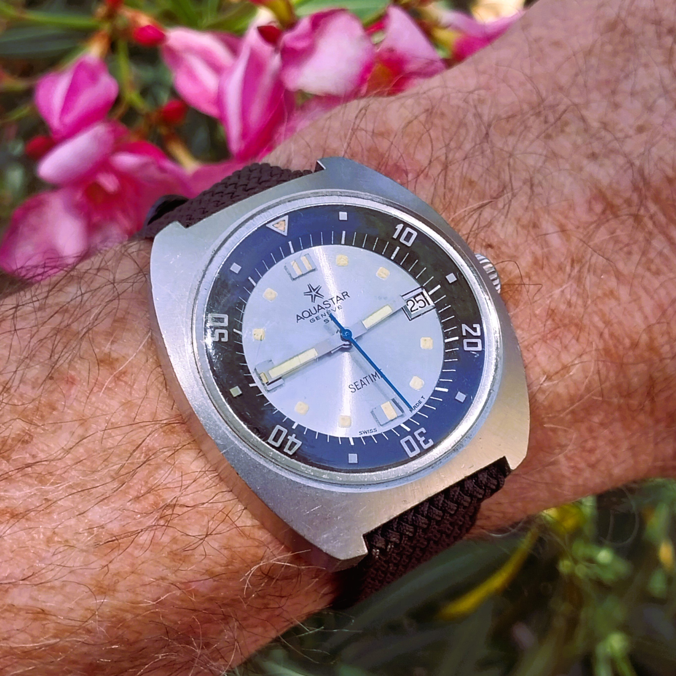Posts 941 Likes 11,161 timesofplenty ·May 25, 2024 One of my 2 Seatime's on the wrist today with vintage 2-piece Perlon strap.
