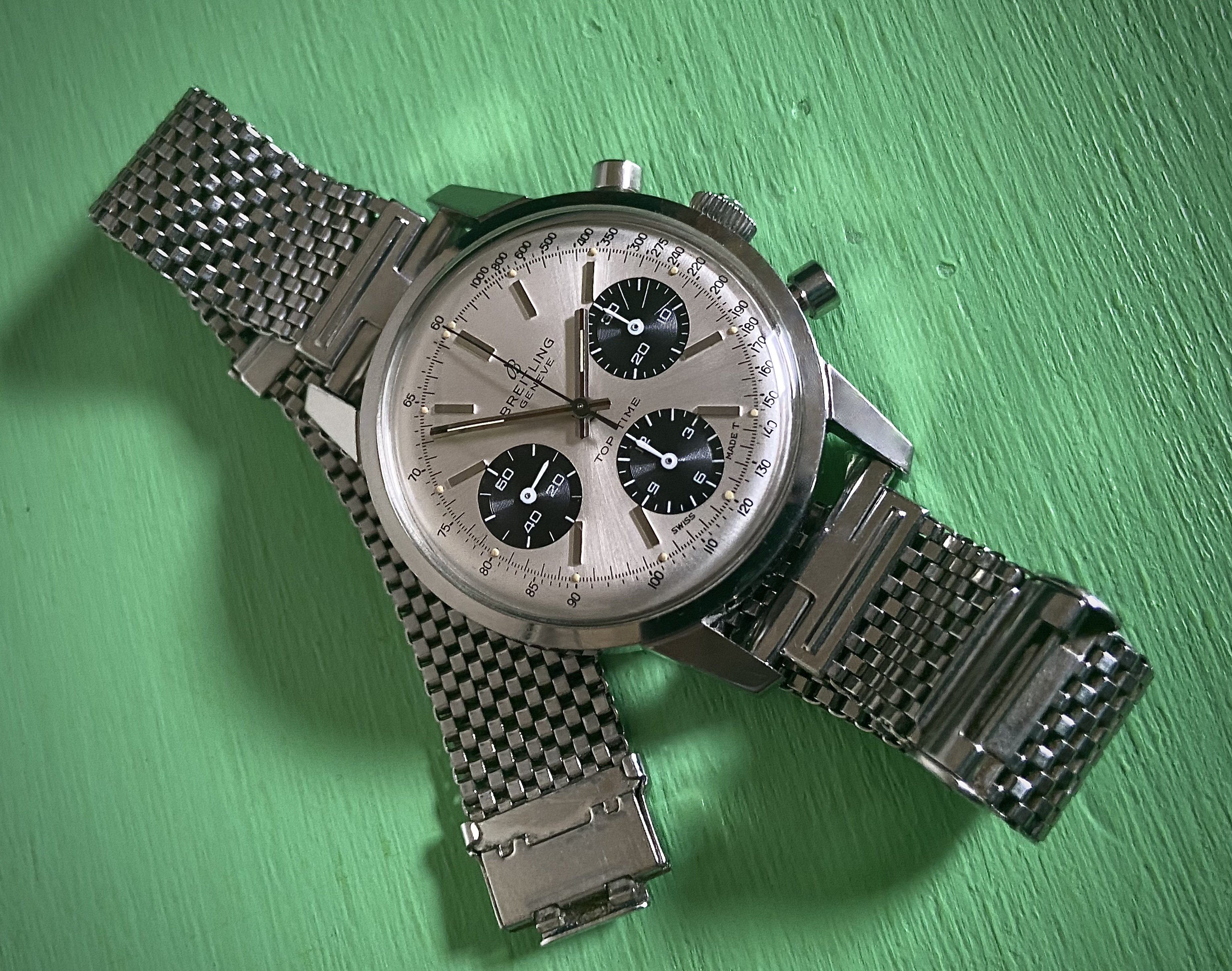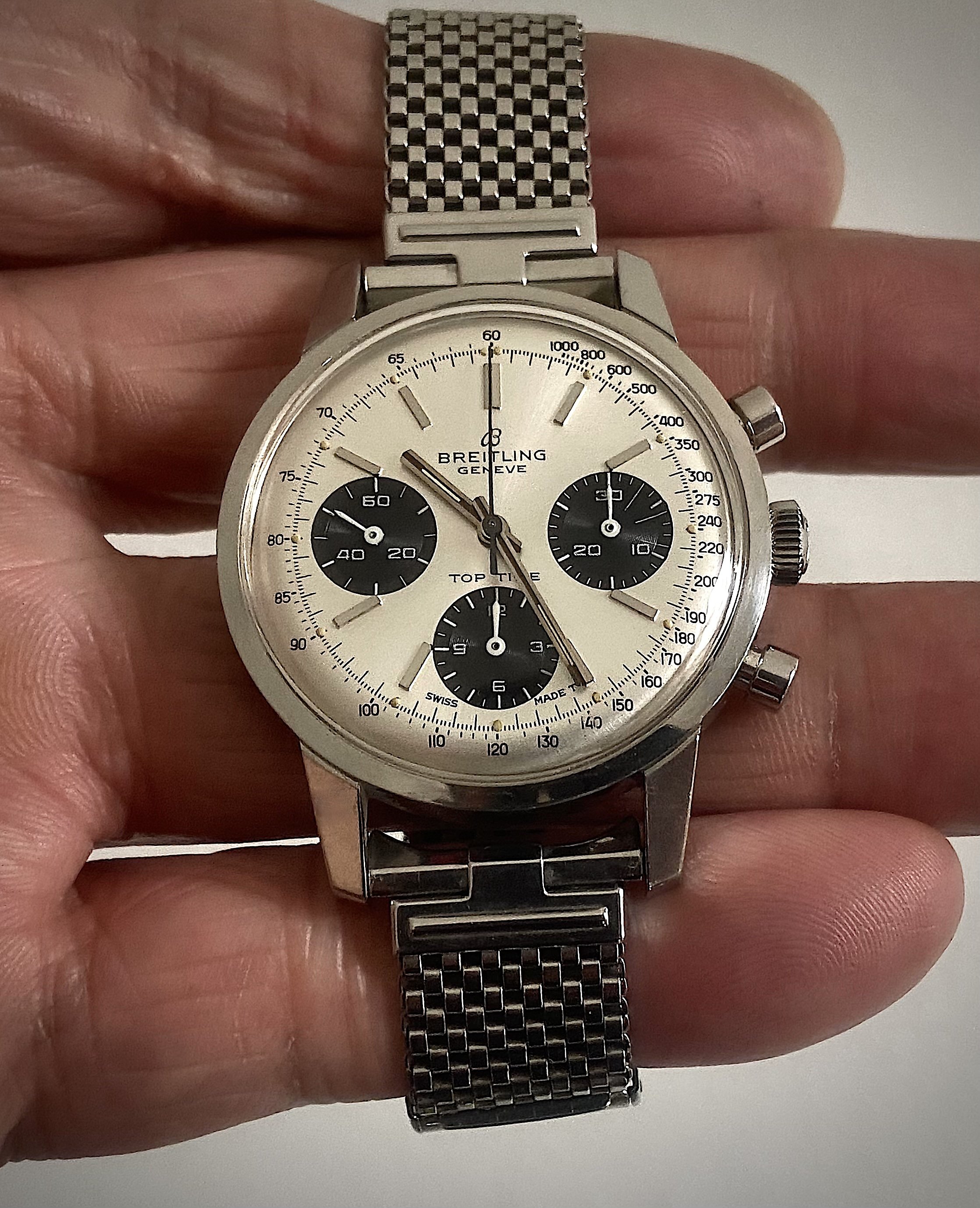 BREITLING GENEVE TOP TIME 810 MK2 PANDA DIAL (with applied hour markers) @ 38.5MM minus crown case back marked"WATERPROOF" with 19MM lugs