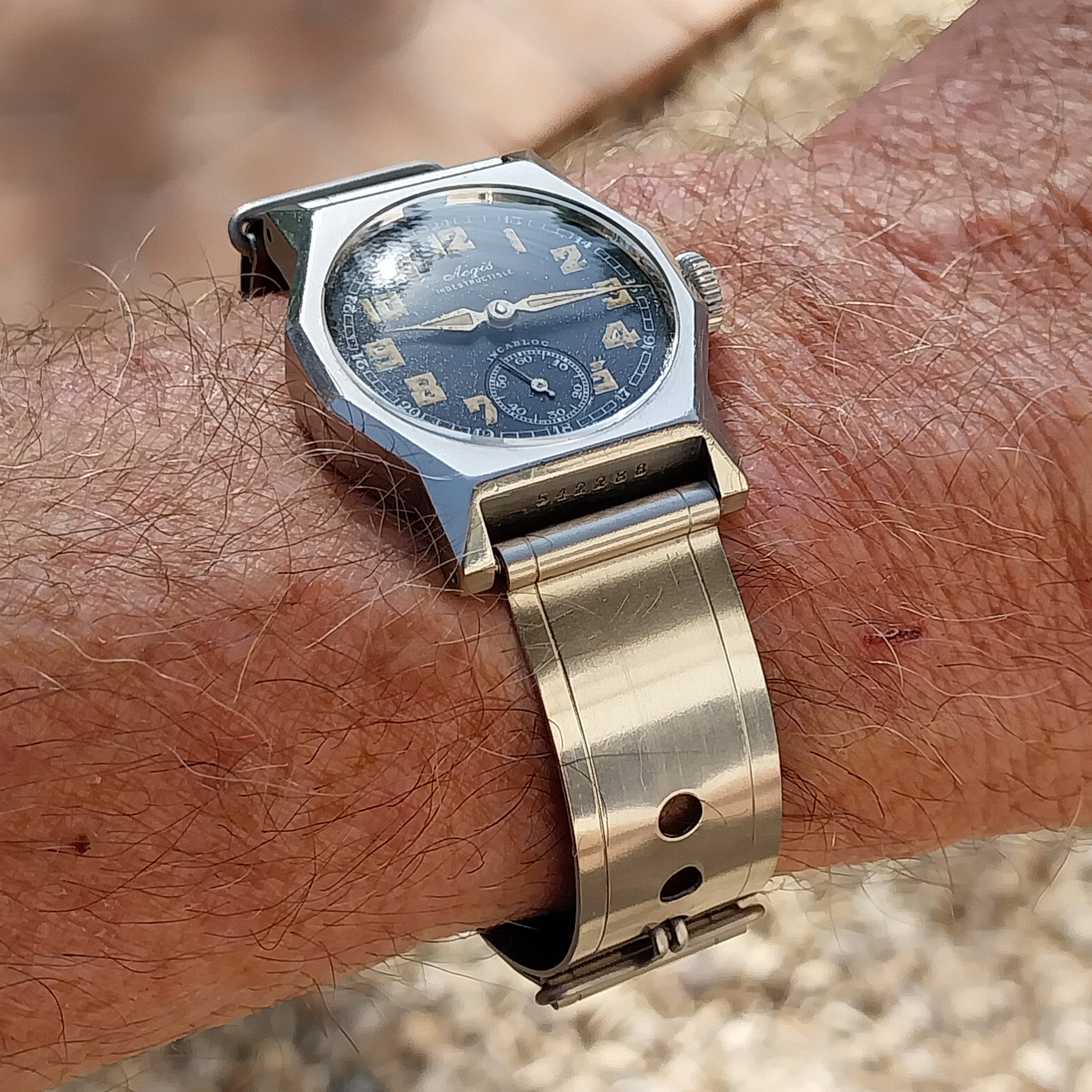 Cyberspace information states that this model was released for the Italian market, additional posts state that it was used by pilots of the Italian Air Force, but no mention that it is military issued. It is housed in the same watch case used by SINN 156B Military Chronographe, it also uses the same dial. design elements based on the Heuer SG1550 Bundeswehr chronographe.