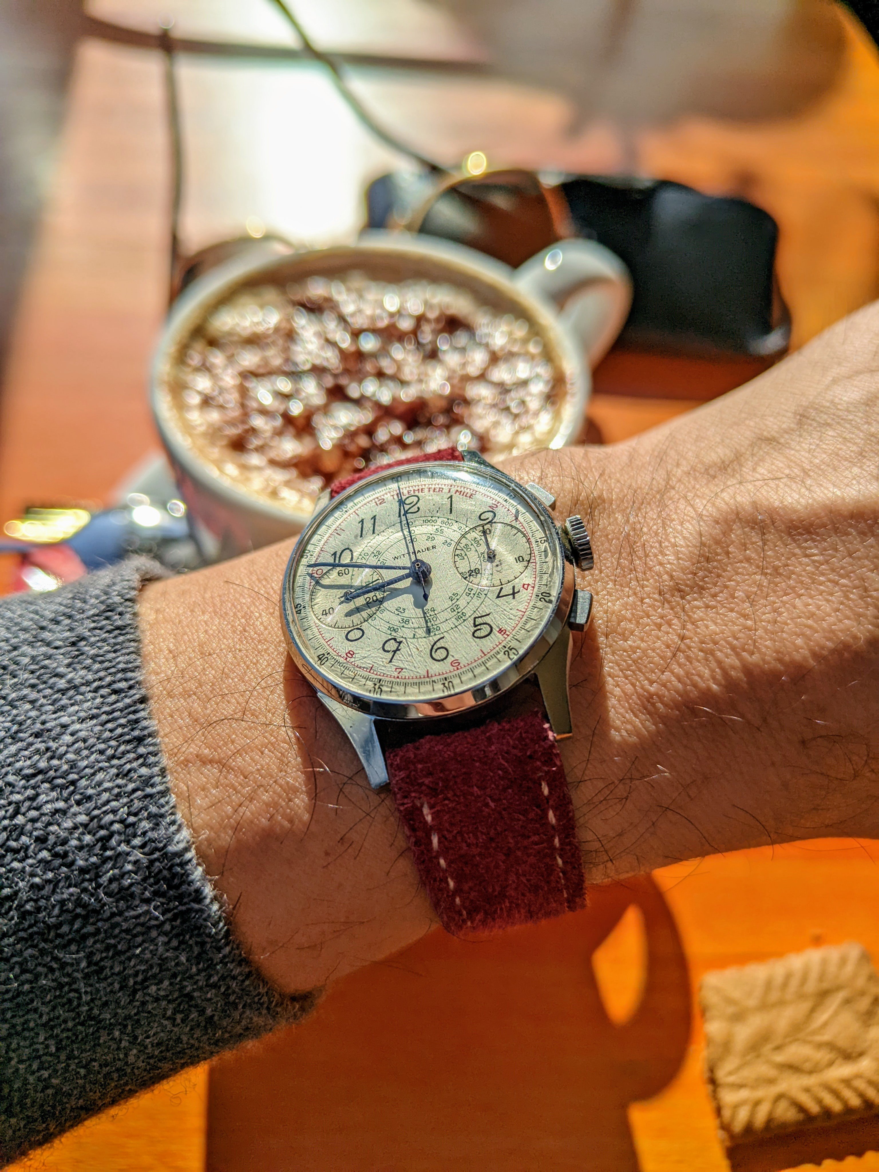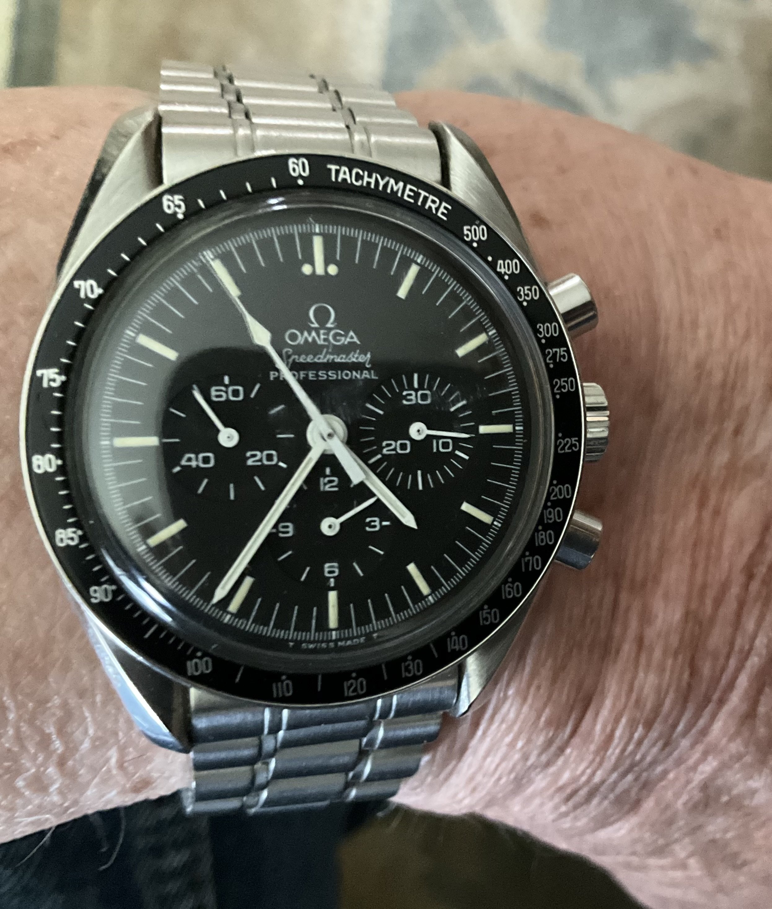 One of two today. This is my 34 year old Speedmaster 345.0808 which I gave its first service in Feb. 2023. (It may have had two years on the wrist in all the years I’ve had it). It has been on my wrist since March 27, and now 14 days later, it is 17-seconds fast without running down or re-setting.