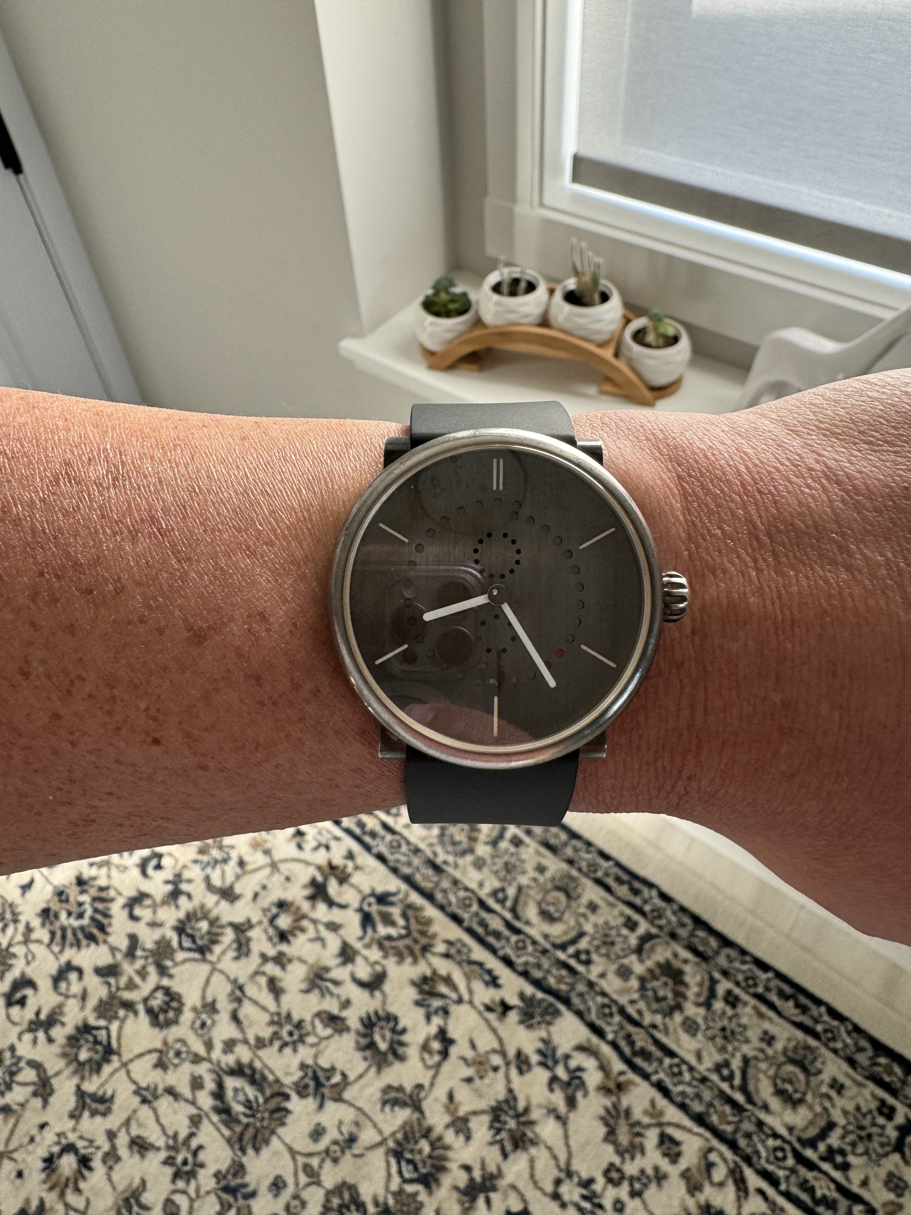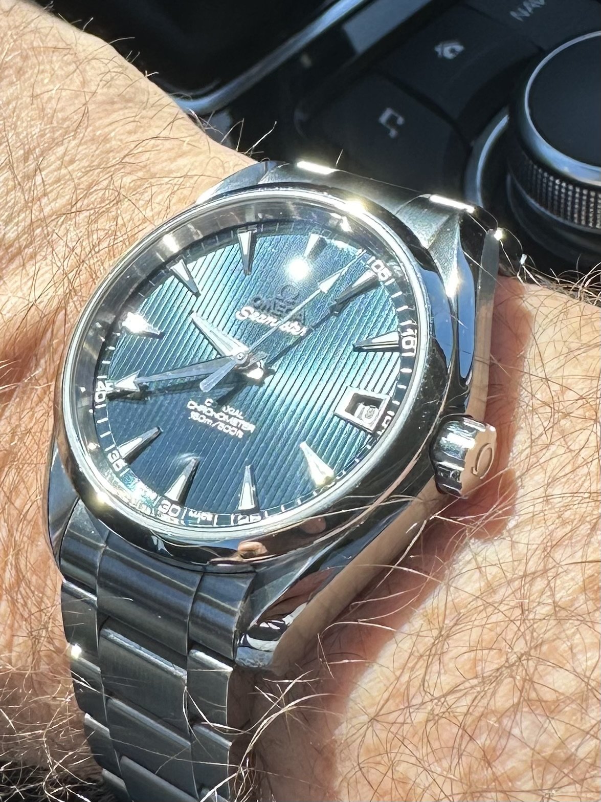 Posts 2,279 Likes 18,028 Paedipod ·Jun 11, 2024 back today after longest holiday in 20 years.....wore the one watch that I had with me almost constantly for three weeks left a mark.... reminded by Mrs. P that the last time I didn't take several watches for a trip was in 2007.....thought that a coaxial gmt was enough I guess