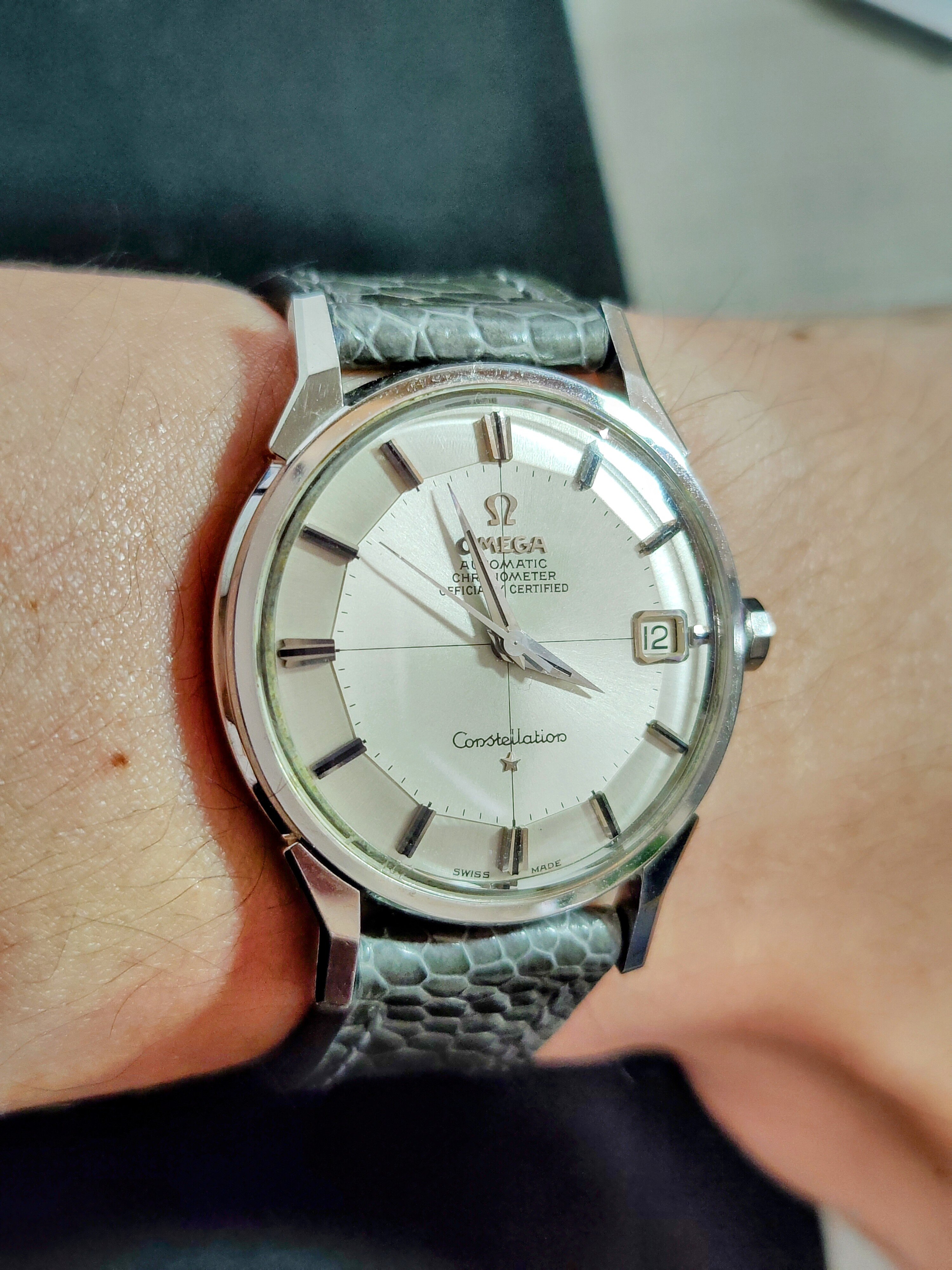 Posts 787 Likes 6,744 Zman4eva ·Jun 12, 2024 New Ostrich gray strap for my stainless steel Constellation 168.005.