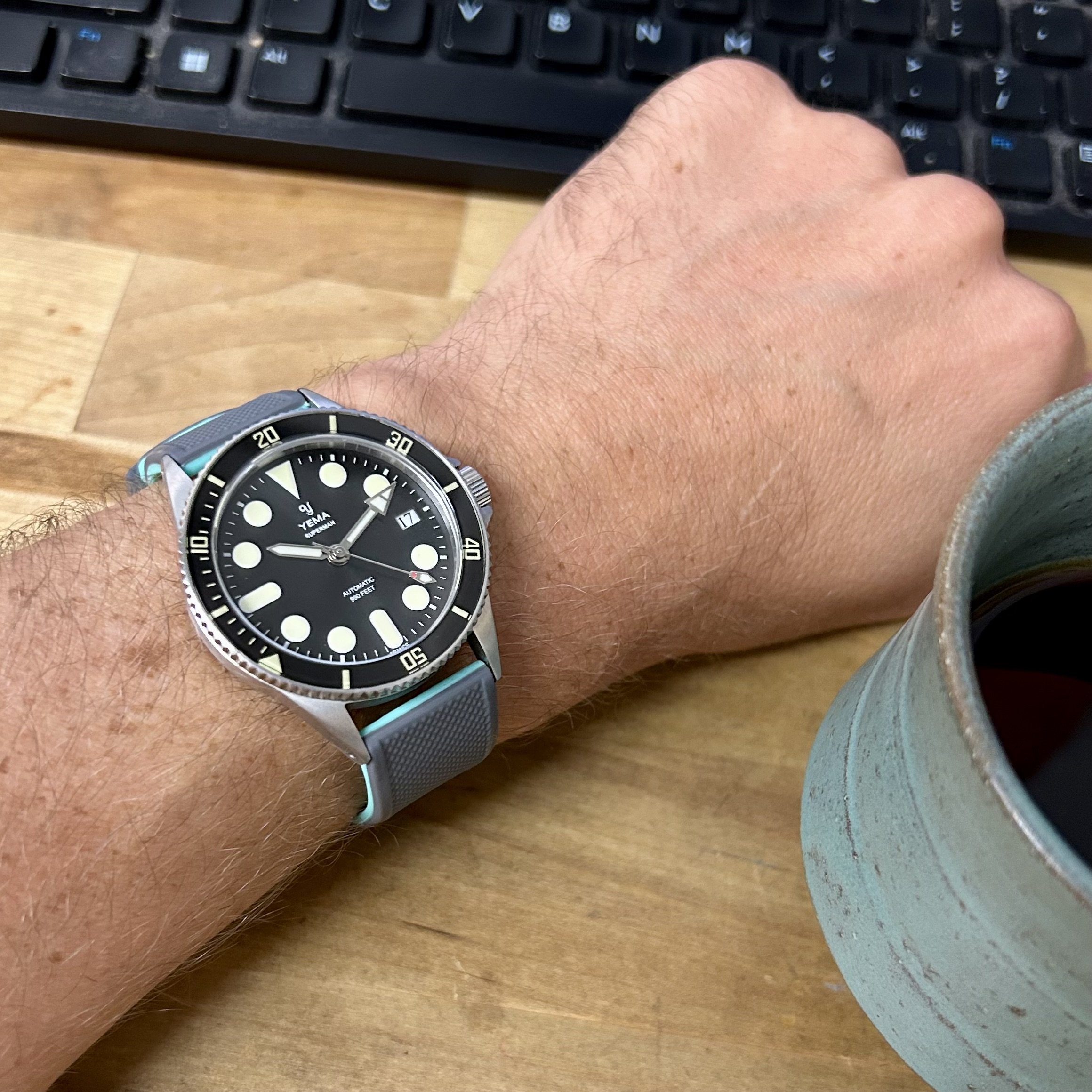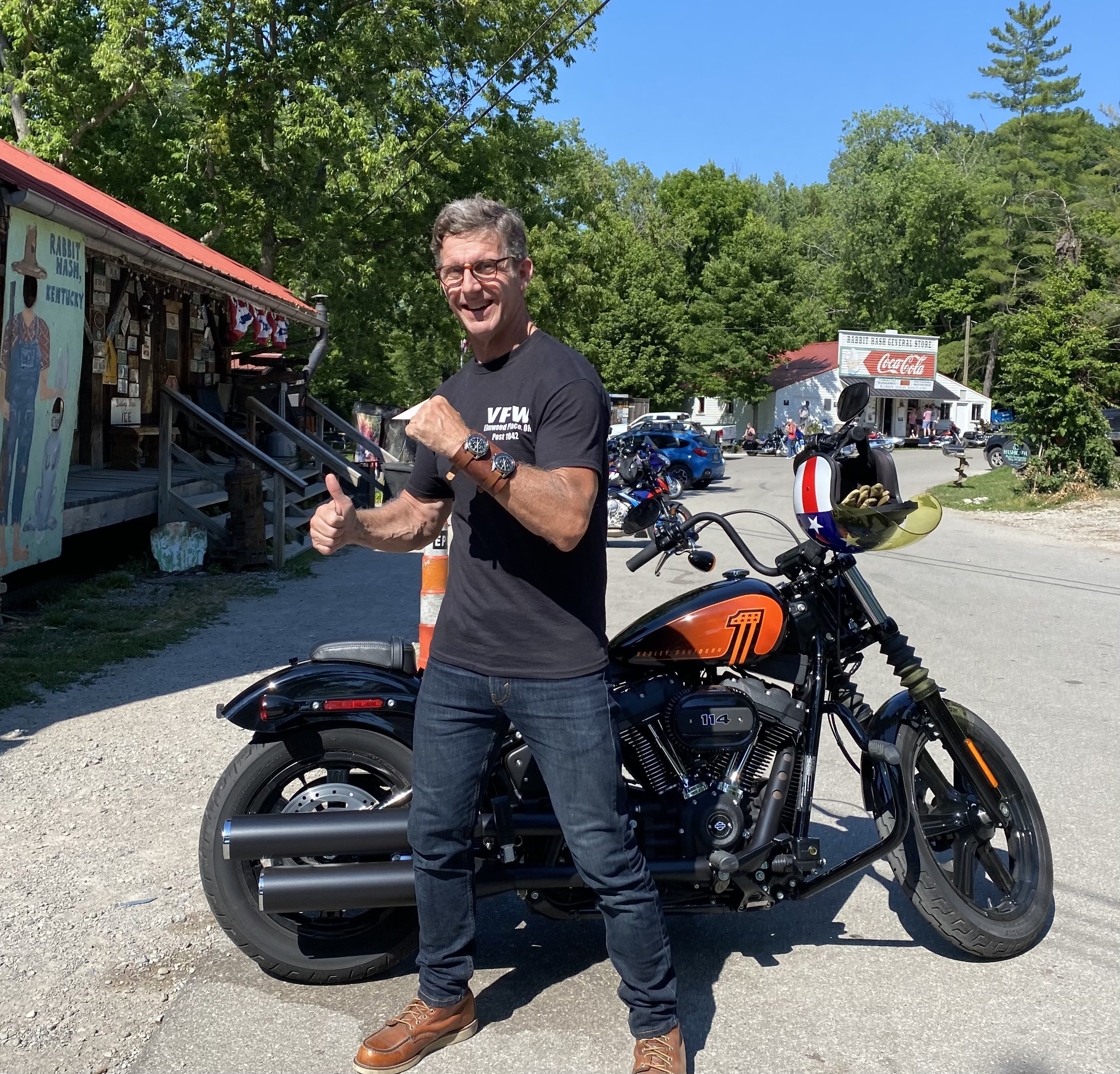 Did a short motorcycle trip with the wife unit and the kid units from Cincinnati, OH to Rabbit Hash, KY…got a new double dog watch band in Rabbit Hash…check it out…popped my -64 and -71 right on that new double dog watch band…