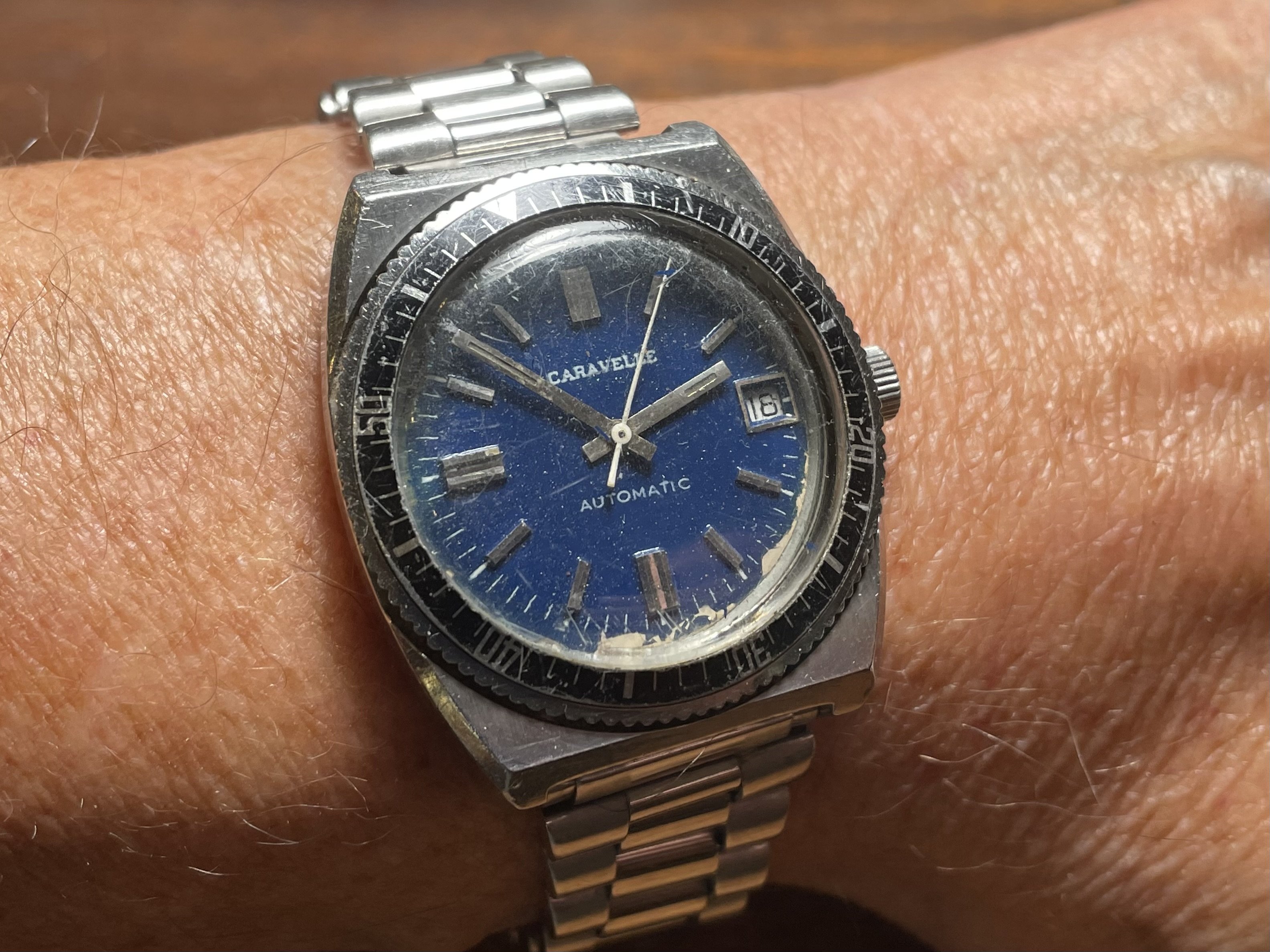 Posts 1,957 Likes 25,748 allwoundup ·Jun 18, 2024 Recent acquisition doing brief wrist time before heading to watchmaker for service. 1973 Caravelle Sea Hunter powered by German made TC3311-OWACD automatic movement, depth rated to 666 feet.