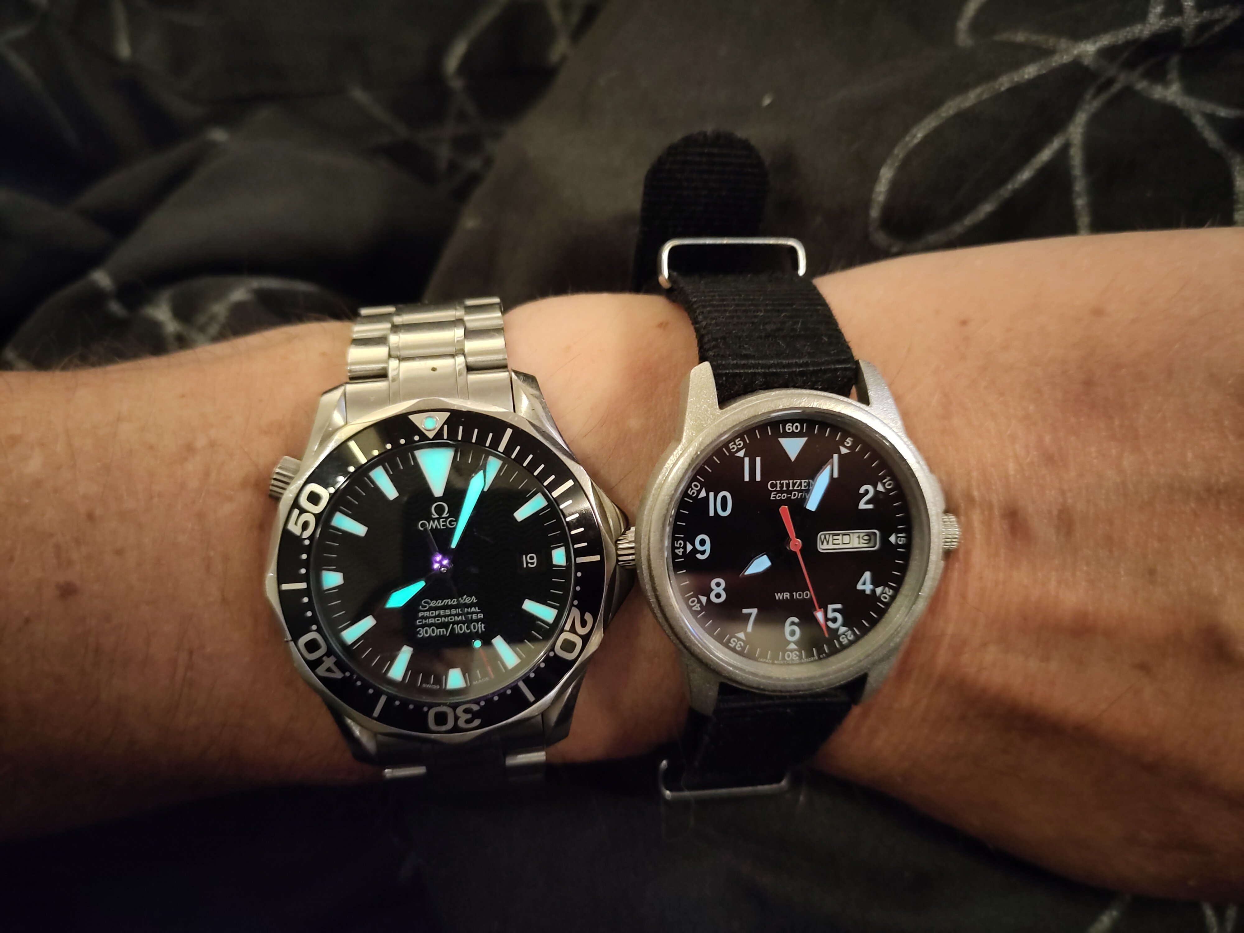 Posts 2,898 Likes 8,470 hen ·Jun 19, 2024 Three days with the Citizen BM8081-3E. I really like this watch, more so after I sandblasted the case and got a sapphire crystal. But nothing compares to the Seamaster. Have a great day everyone.