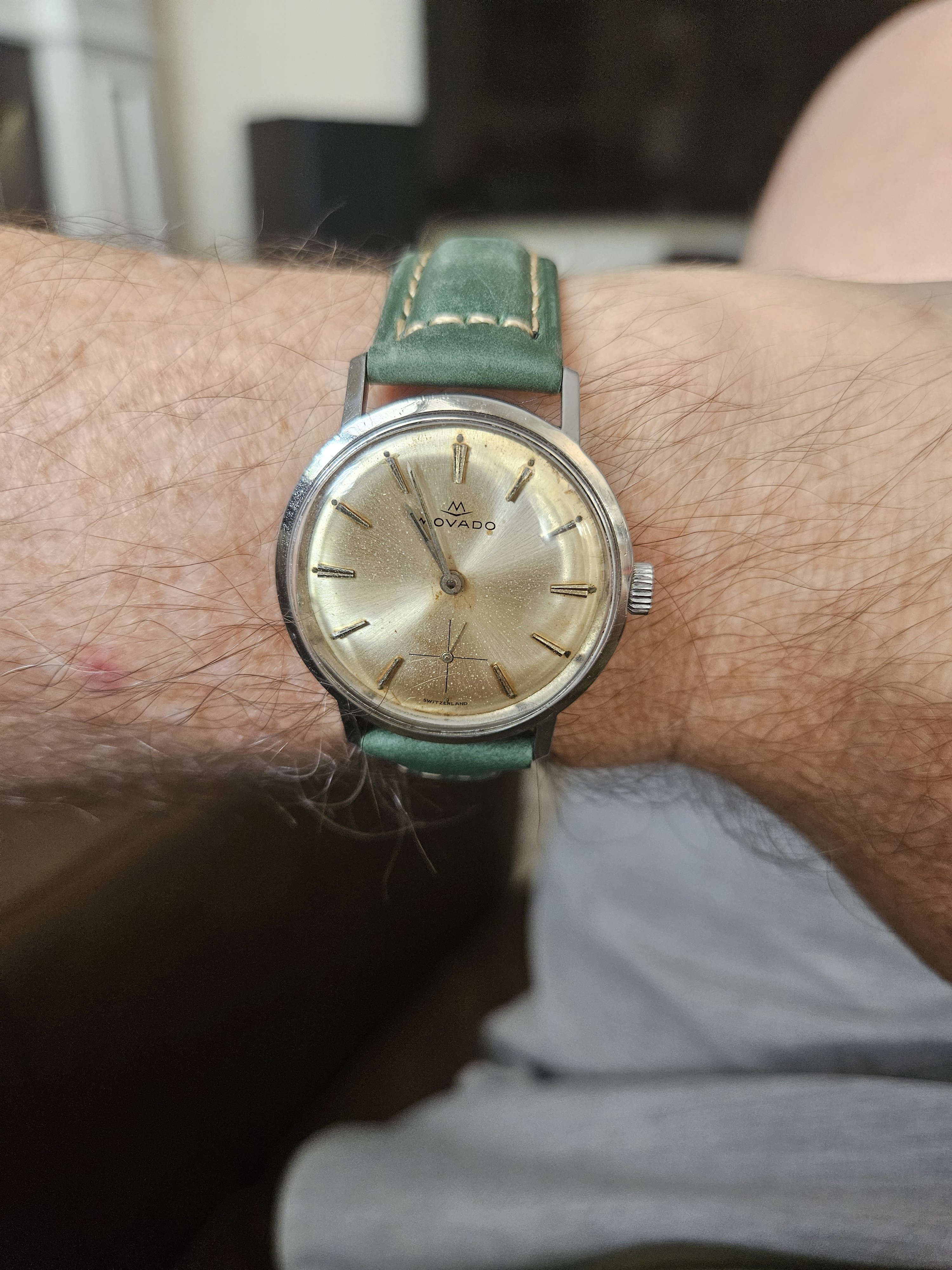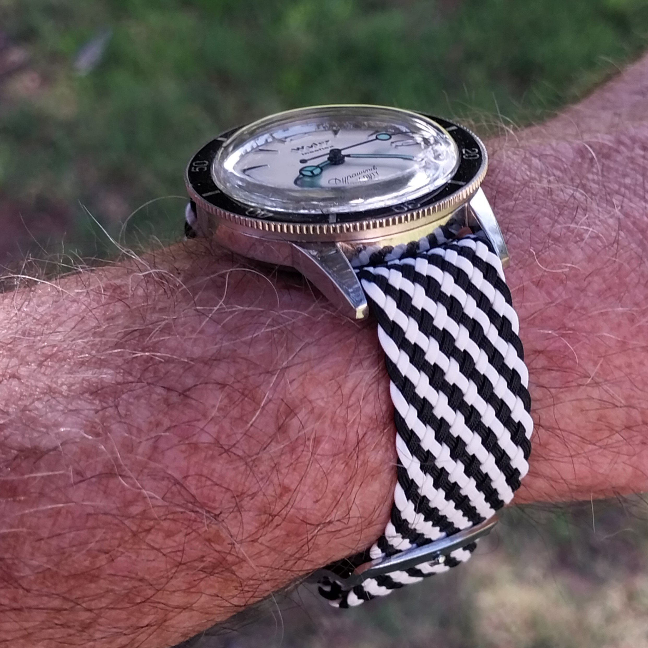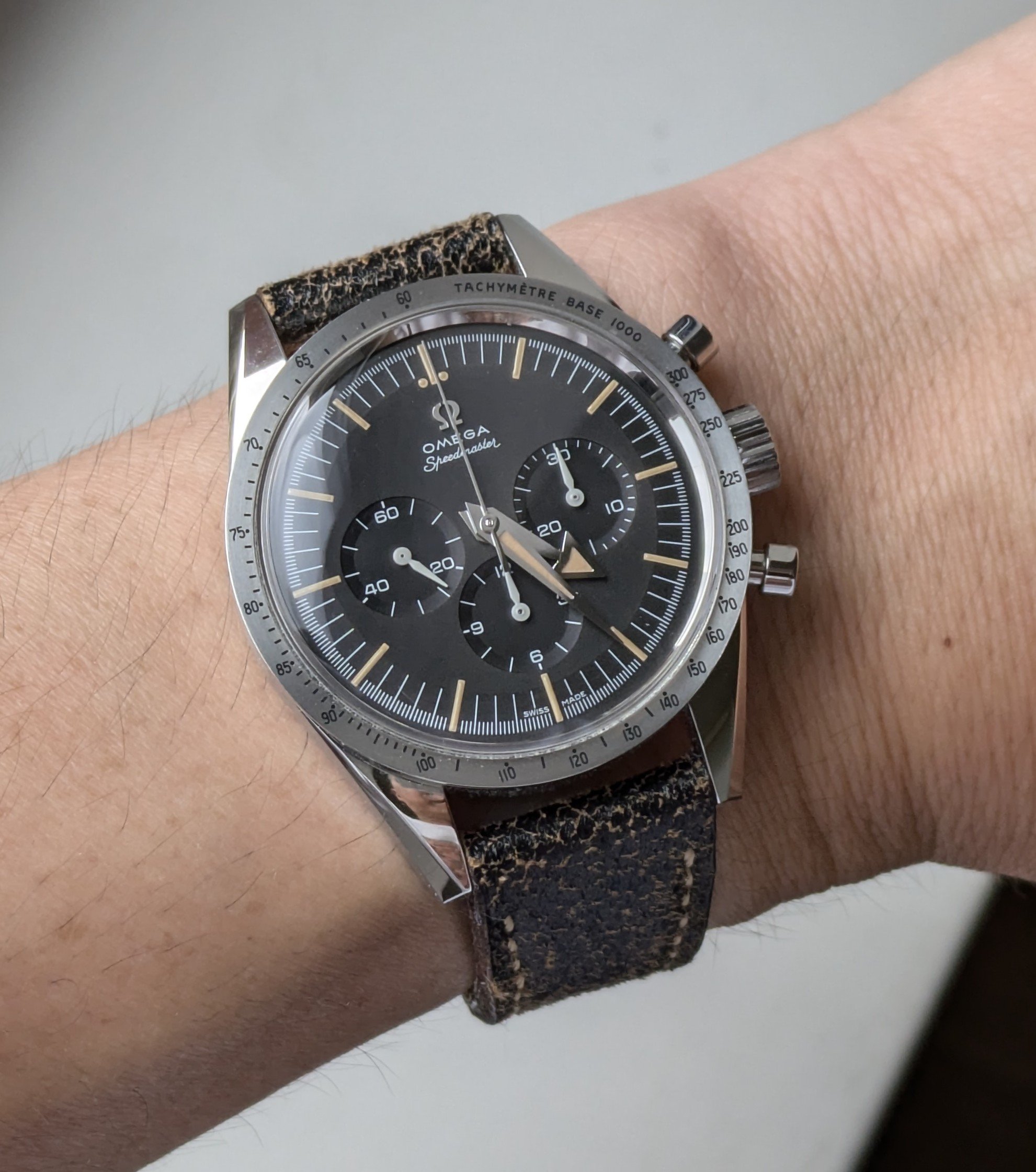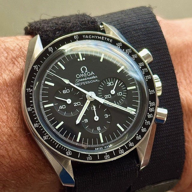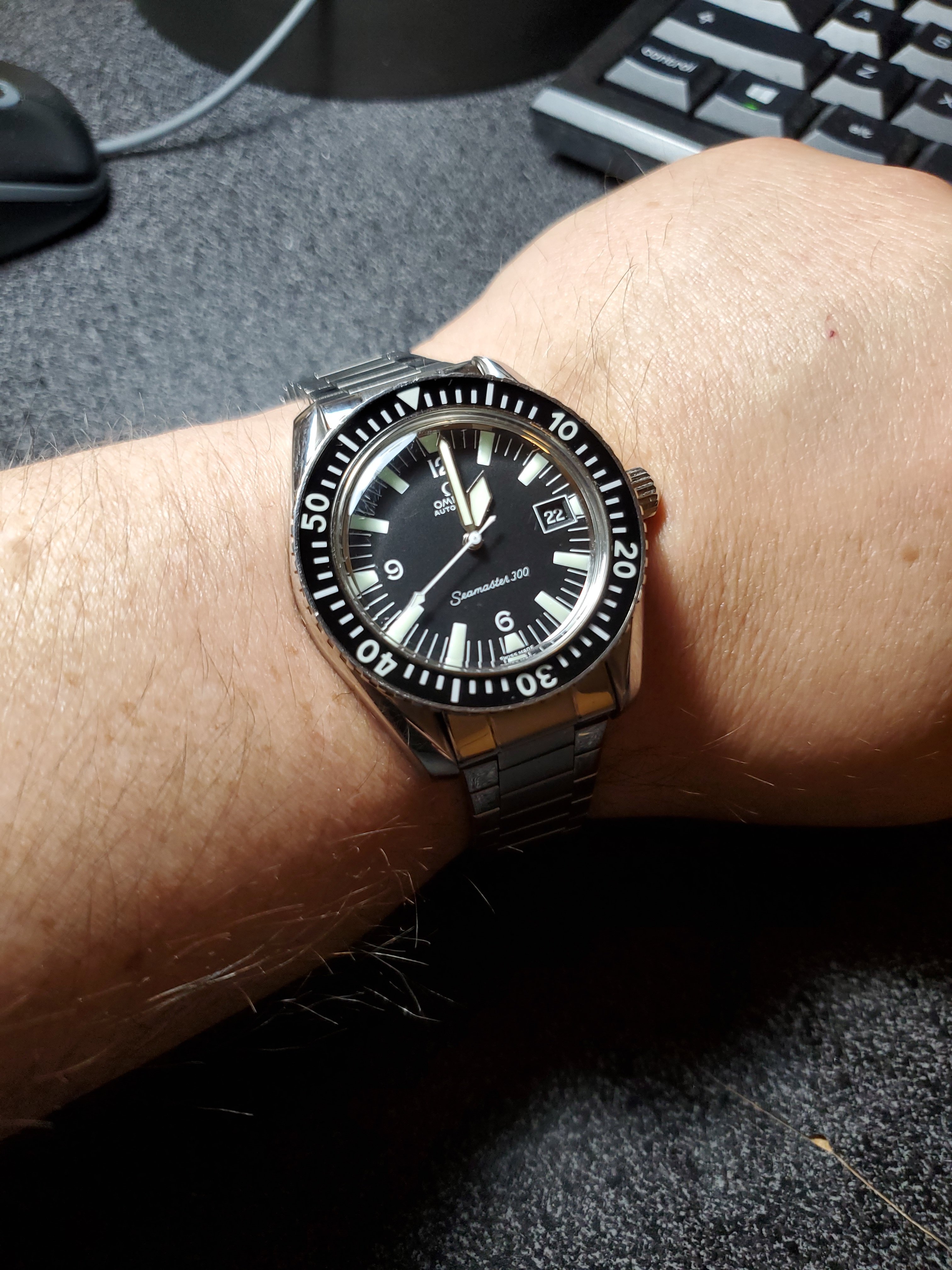 Still this. Decided to put on the US1035 while I search out an spare link for the 1171/1. I might even have one somewhere from when I bought the original parts. The US1035 is nice but I wish the first link after the end link was a reall full 19mm across (it's very close, I know) so that it could look a little better in the 20mm 1039 role. I almost bought a Forstner flat-link this morning but I don't want to mess around with the springy links even though I've heard they've proven better than the ones on their 1450 President. I love a Seamaster on a flat-link!