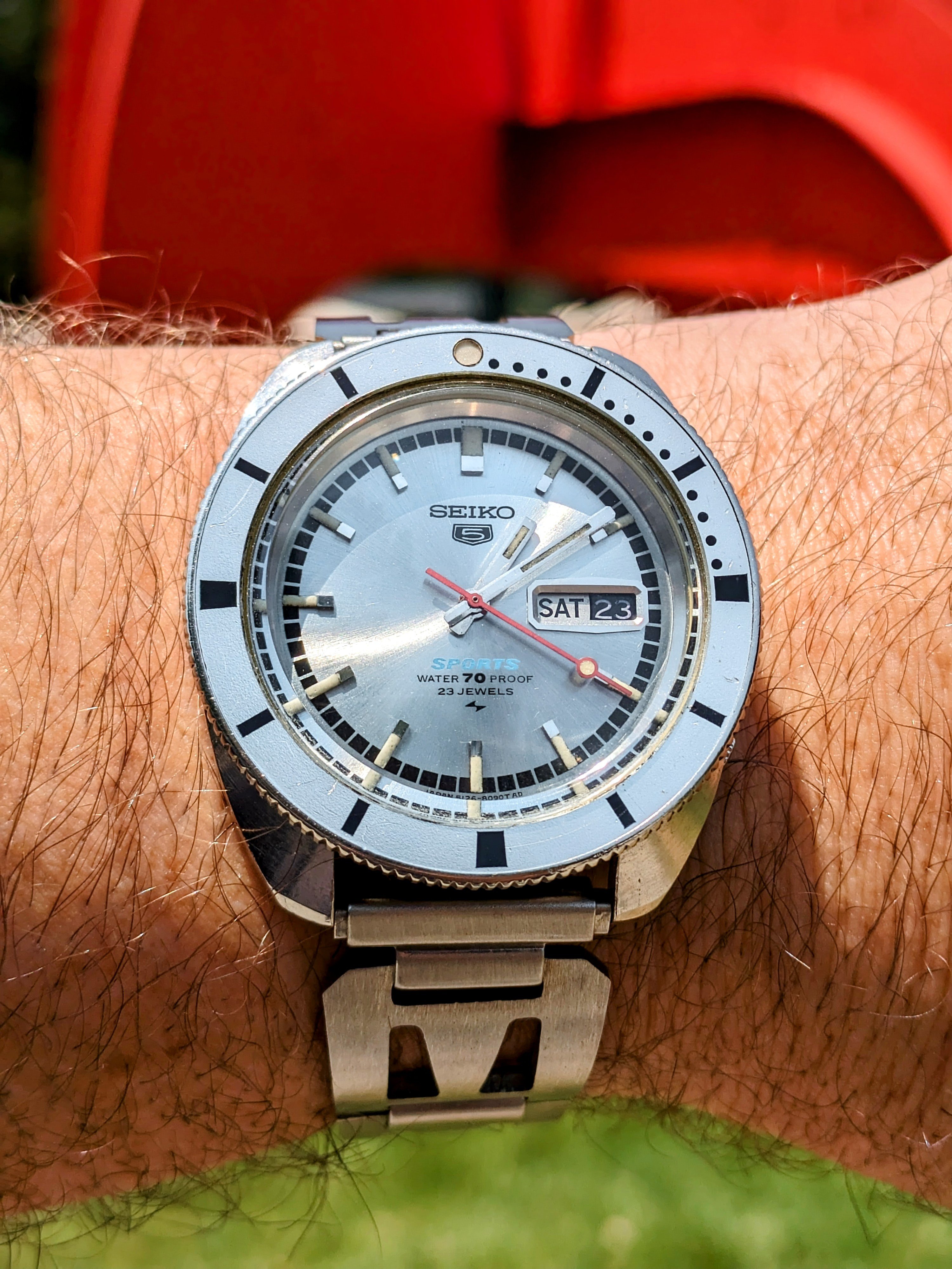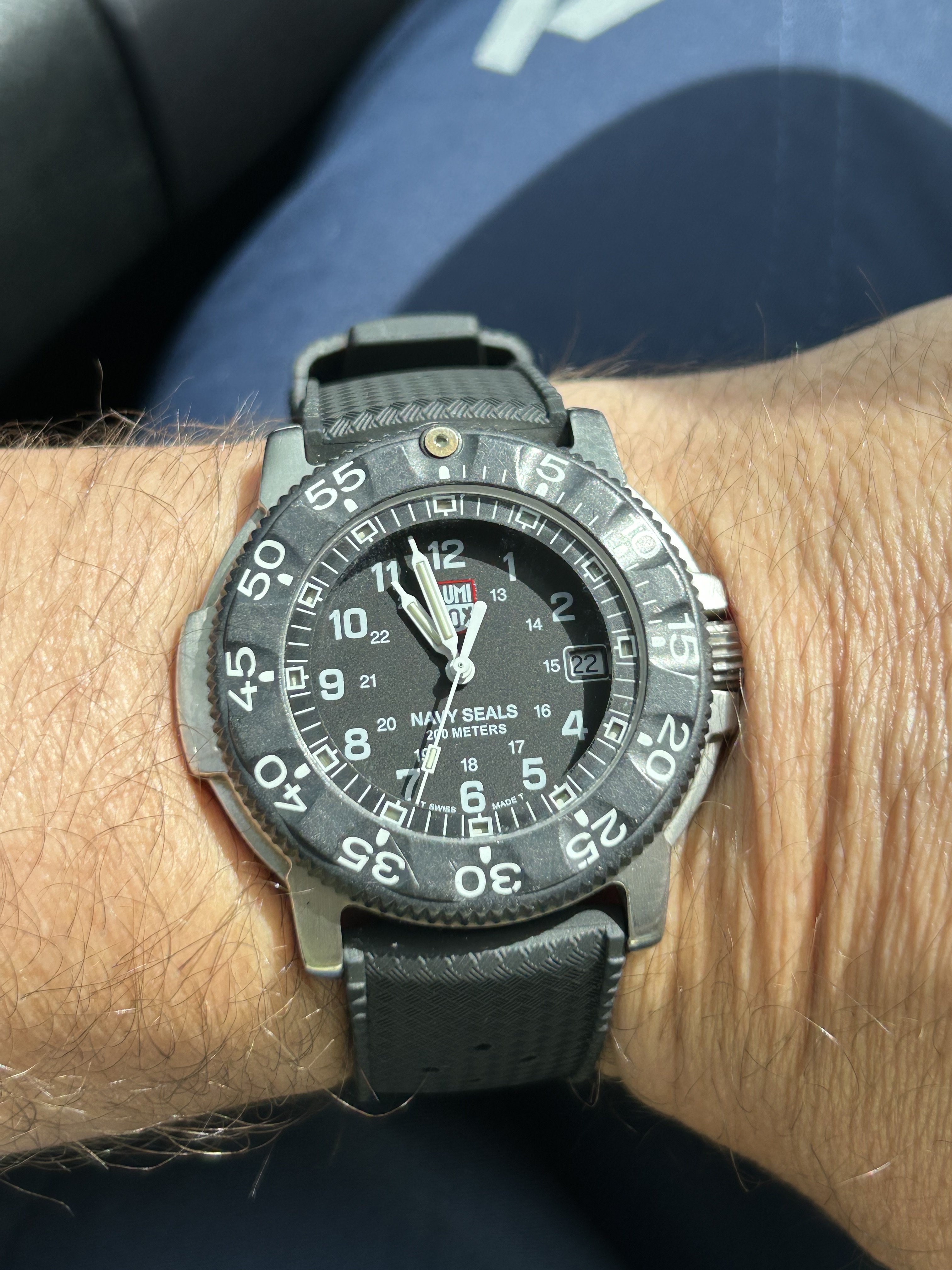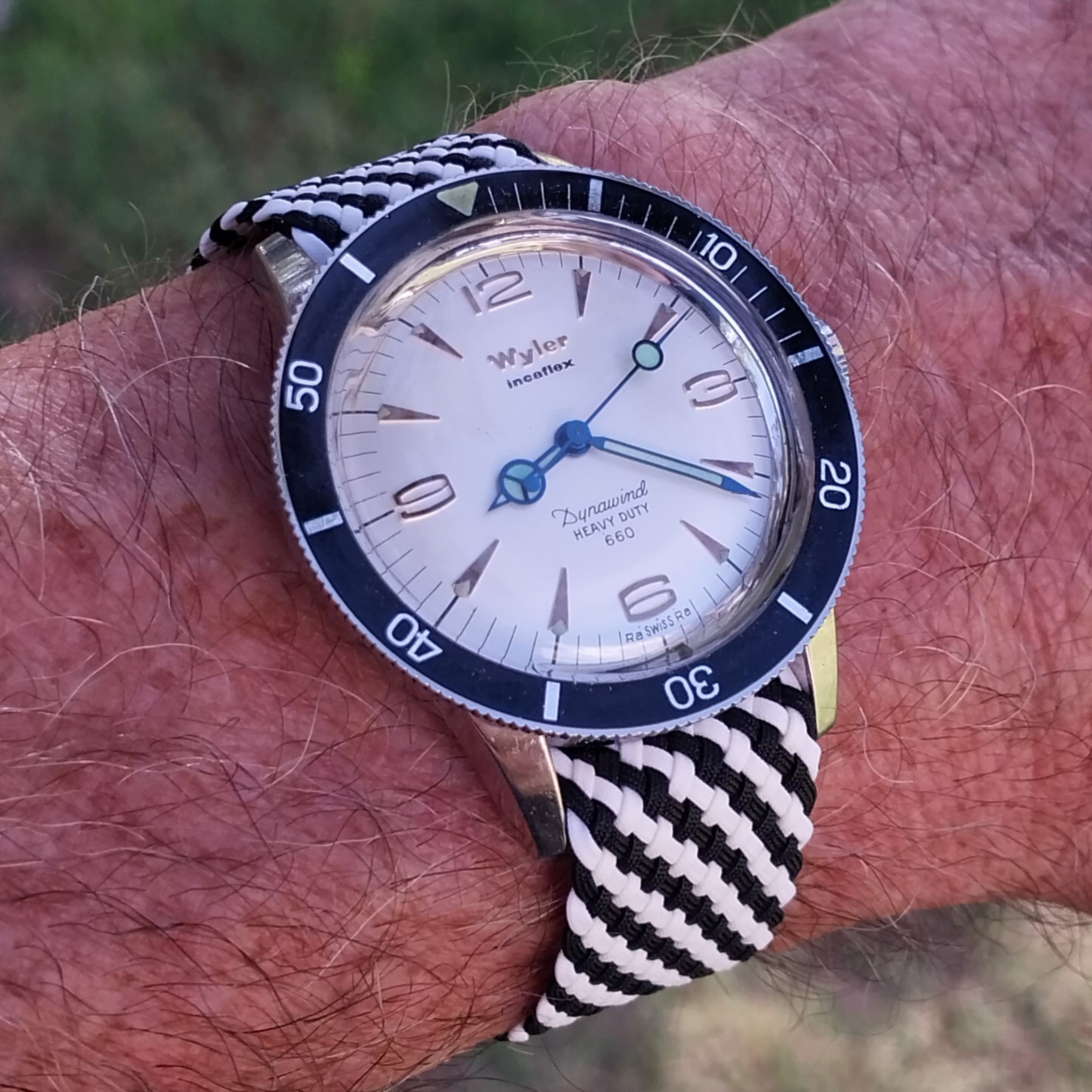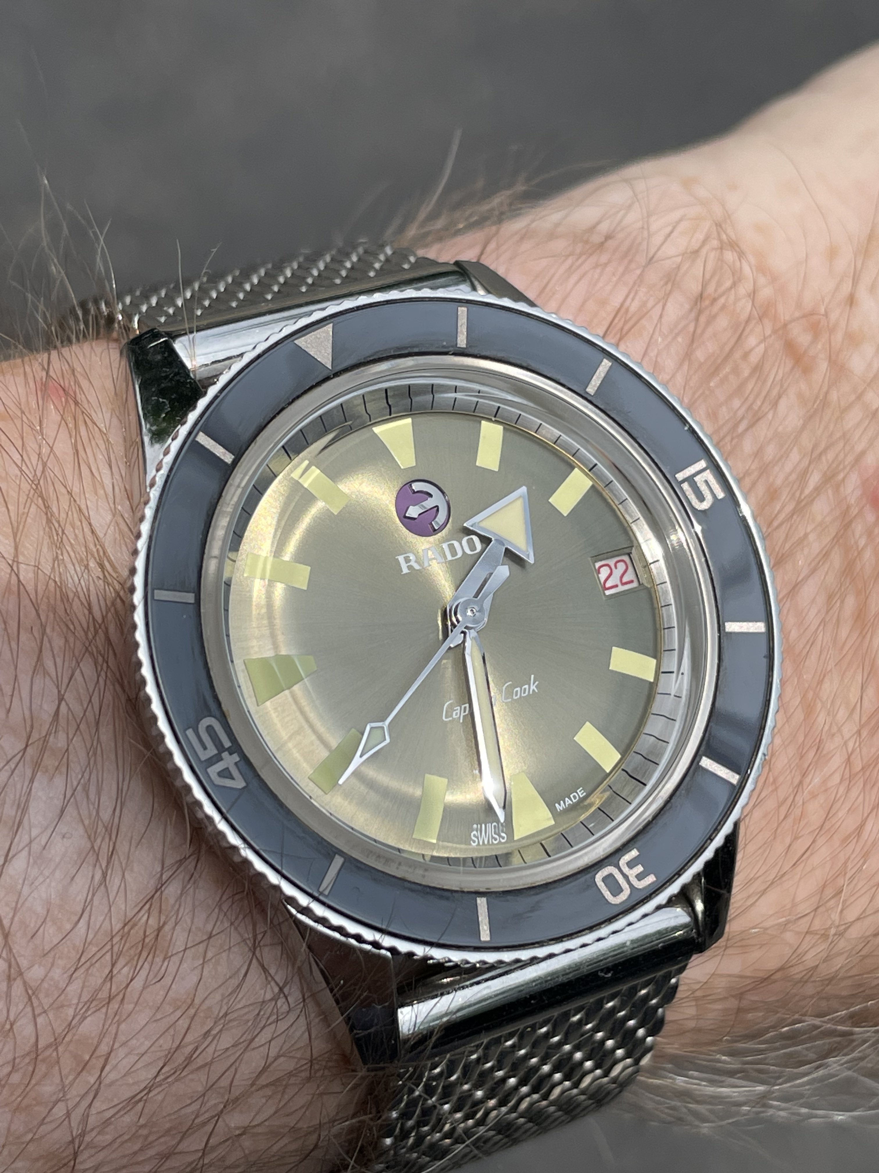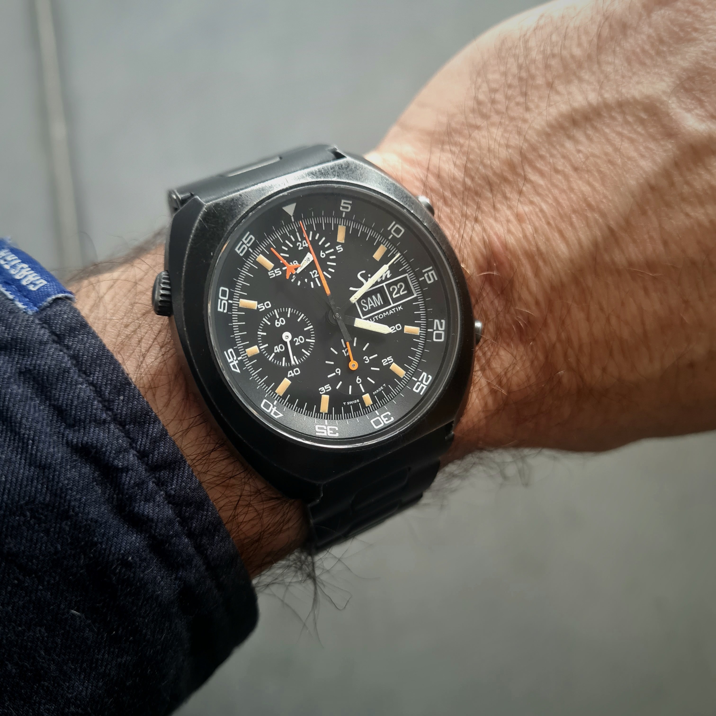 Still this. Decided to put on the US1035 while I search out an spare link for the 1171/1. I might even have one somewhere from when I bought the original parts. The US1035 is nice but I wish the first link after the end link was a reall full 19mm across (it's very close, I know) so that it could look a little better in the 20mm 1039 role. I almost bought a Forstner flat-link this morning but I don't want to mess around with the springy links even though I've heard they've proven better than the ones on their 1450 President. I love a Seamaster on a flat-link!