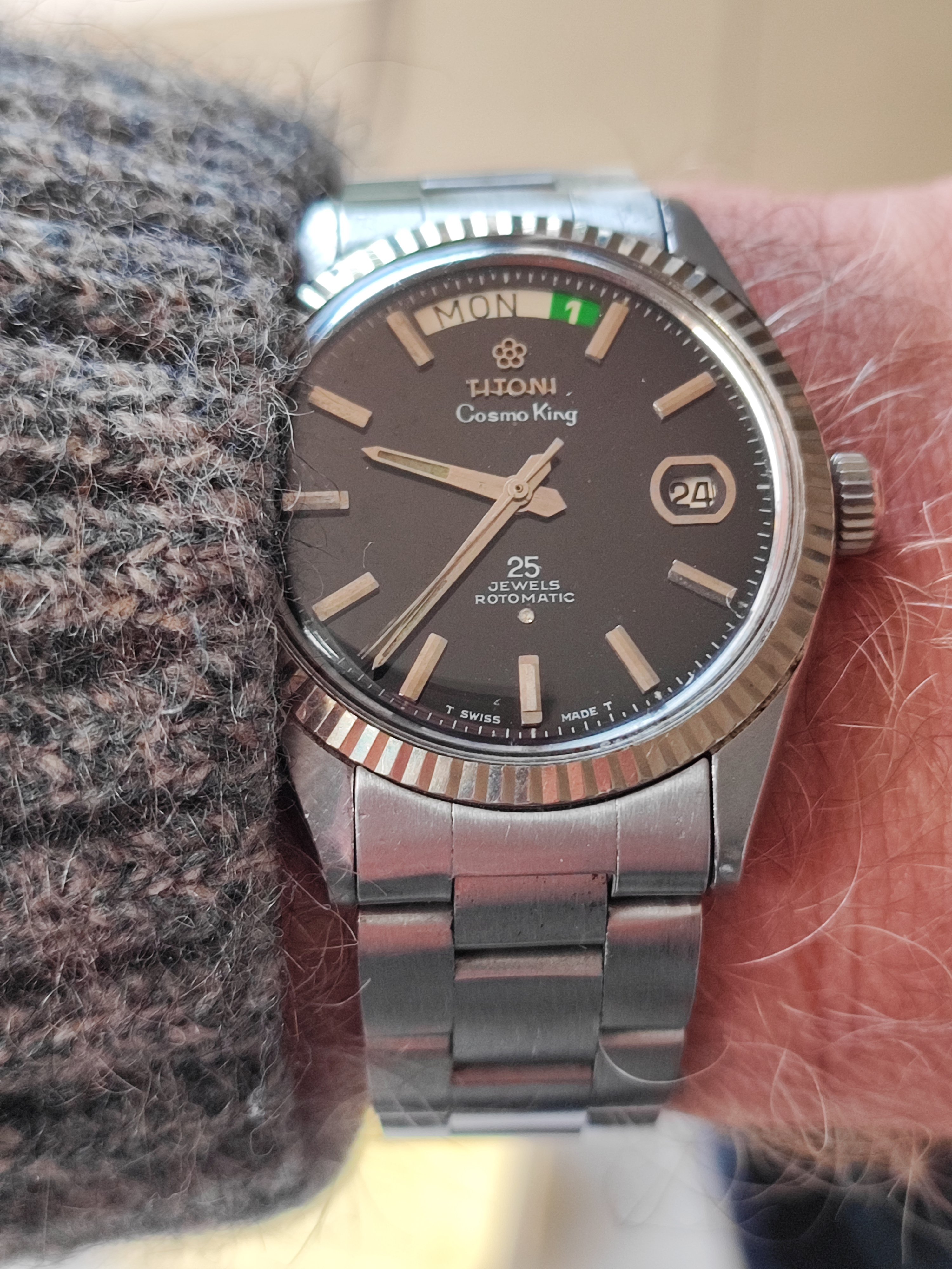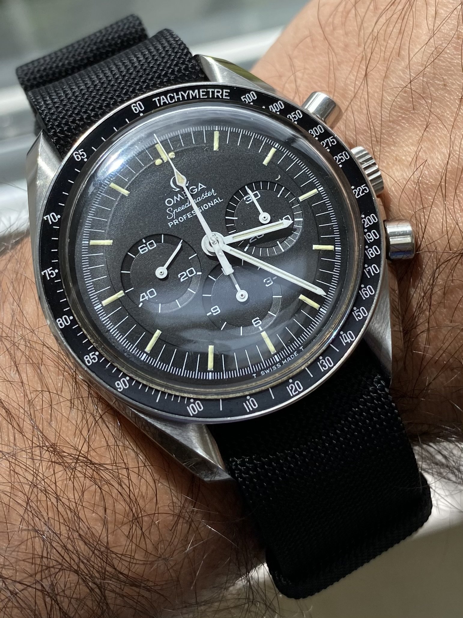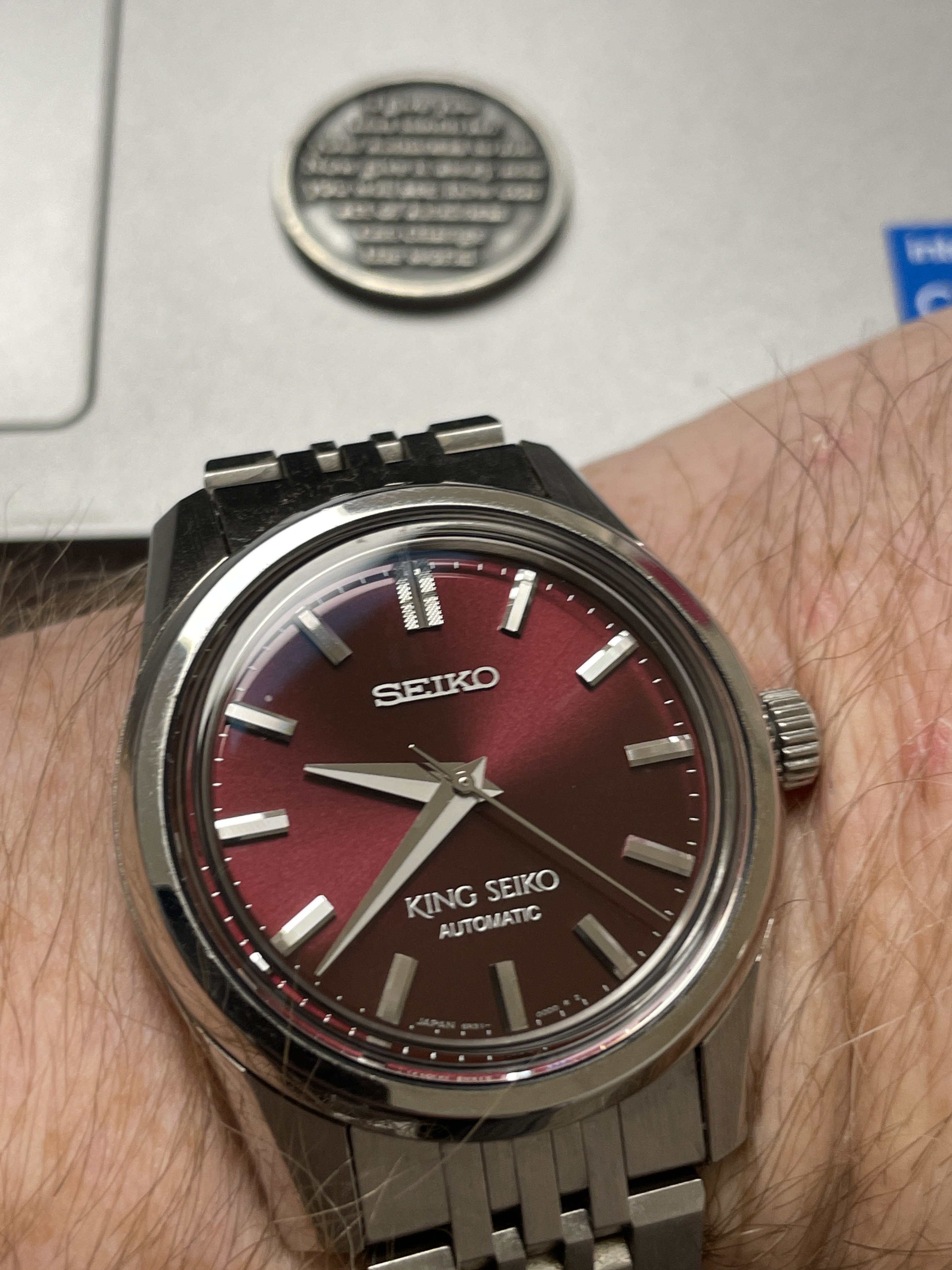 Put an Uncle Seiko 1162 bracelet with the milled push button clasp (total $125) on my 1973 MKII, a nice piece of kit as the original bracelet was pretty well stretched out. I had this watch overhauled 3 years ago which included a case refinish, but the hands and dial are original, and the mineral crystal dates from a previous overhaul in 1980. I should wear this more than I do, it was a wedding present from my wife 51 years ago, I remember she paid $165 for it.
