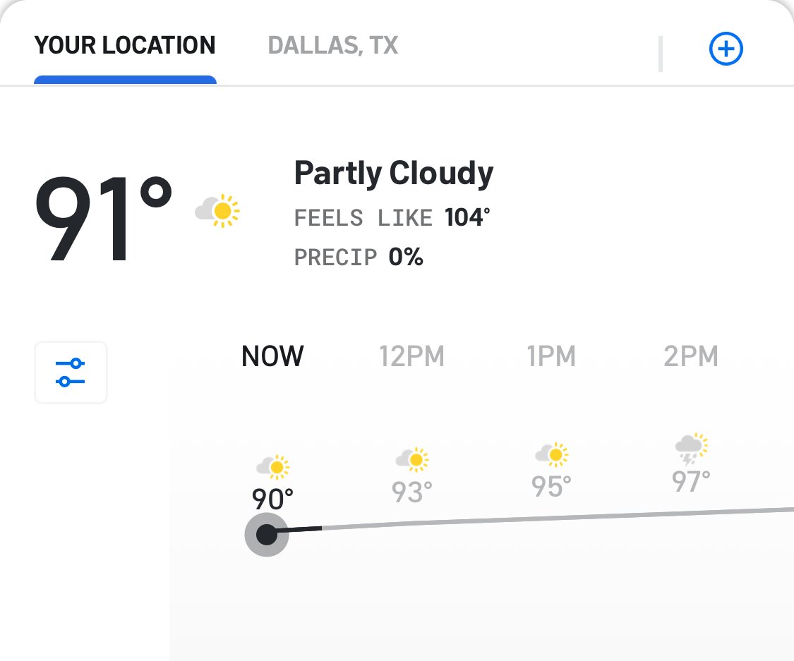 Posts 611 Likes 5,528 Charlie3755 ·Jun 26, 2024 Could today be the first 100 F (38 C) day of the summer? Heat index projection for today 111 F (44 C) In 2023 there we had 55 days over 100 F. Summer in North Texas is just getting started!