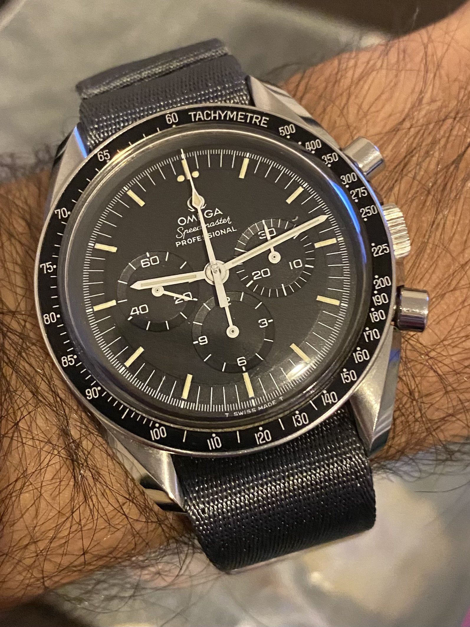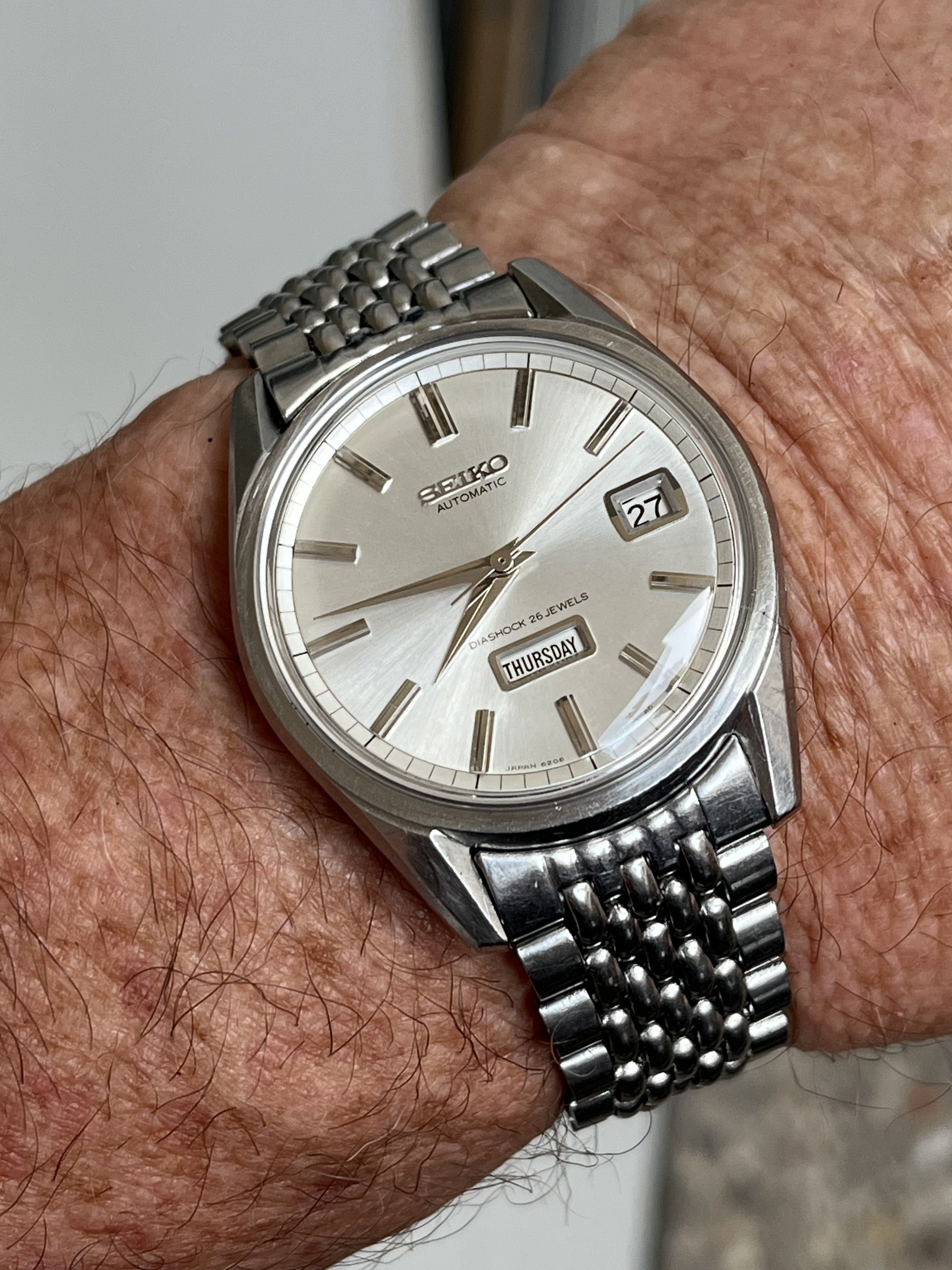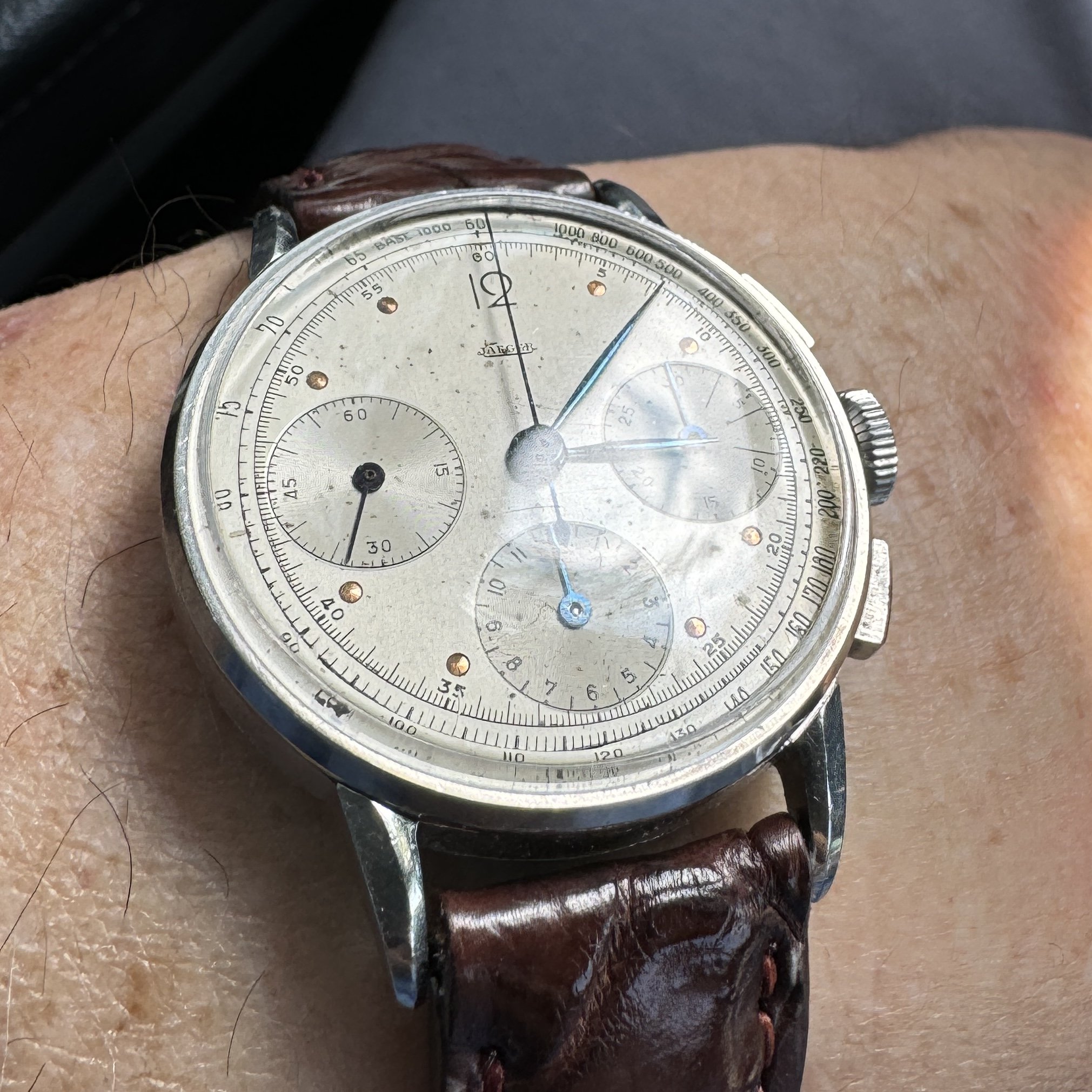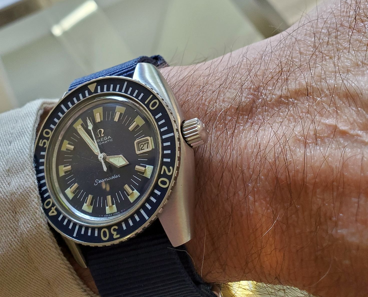 The dial appears as slightly larger that many of the 60s/70s models such as my much loved 168.017s and the case a slightly more modern size than my 165.003s.
