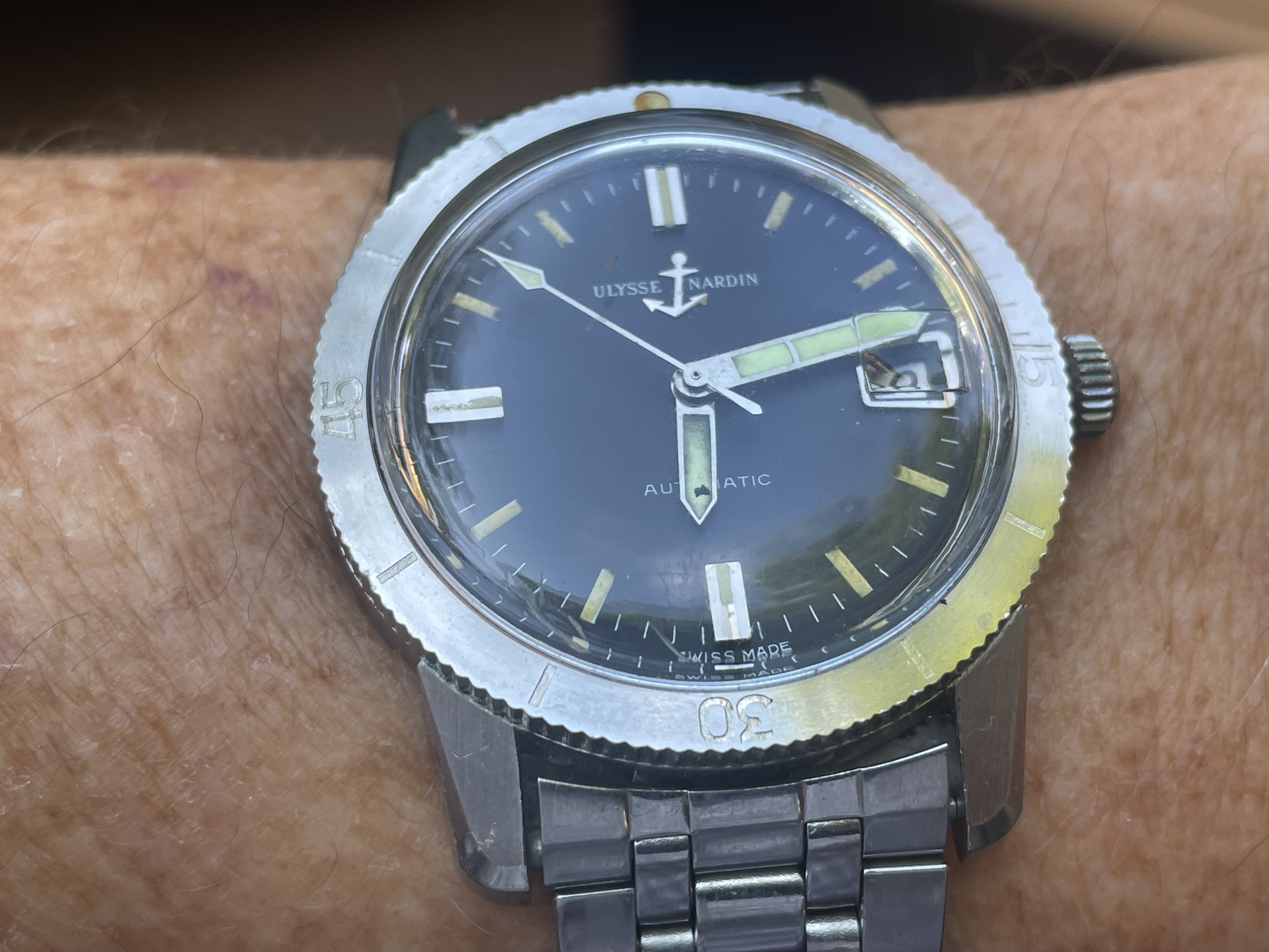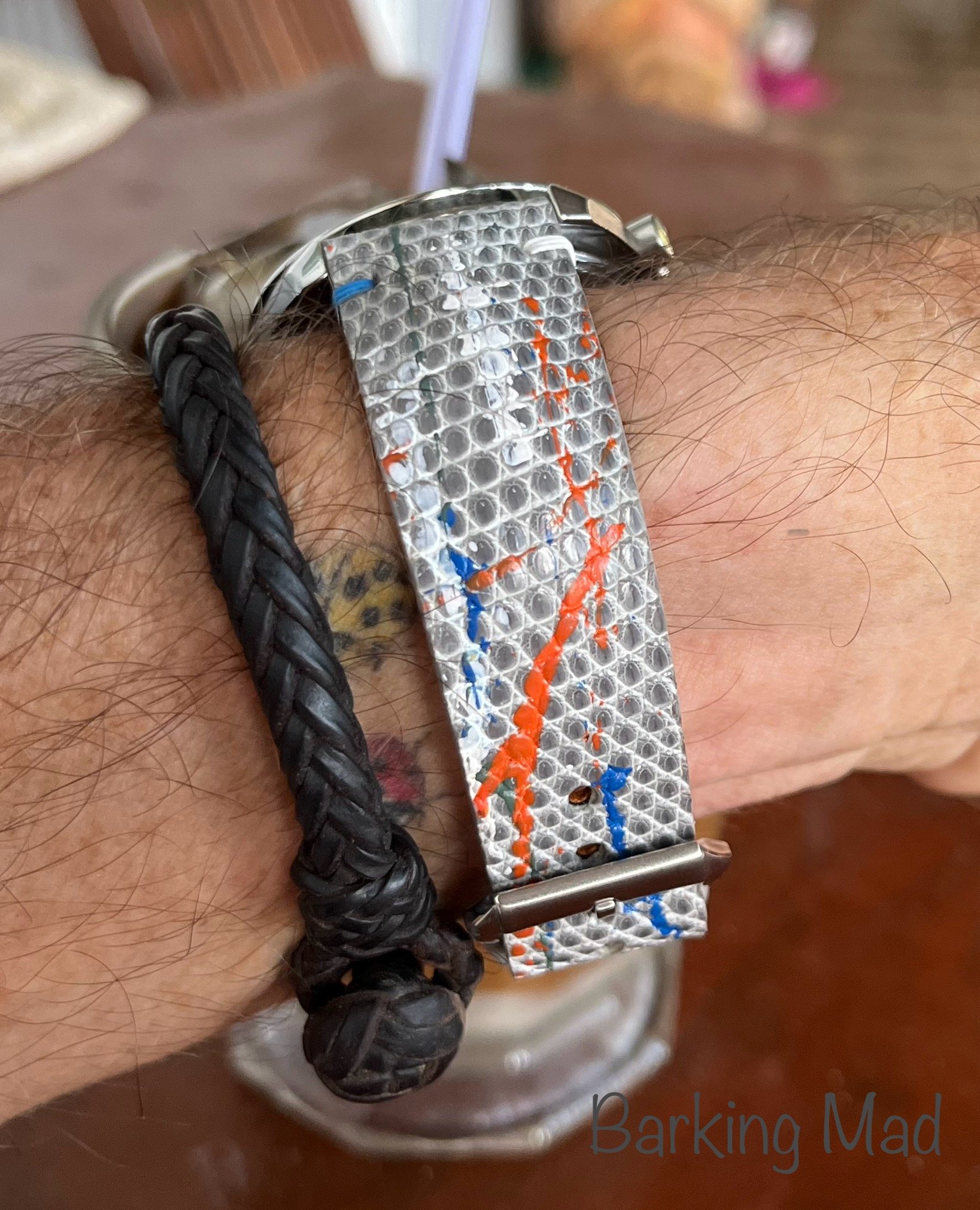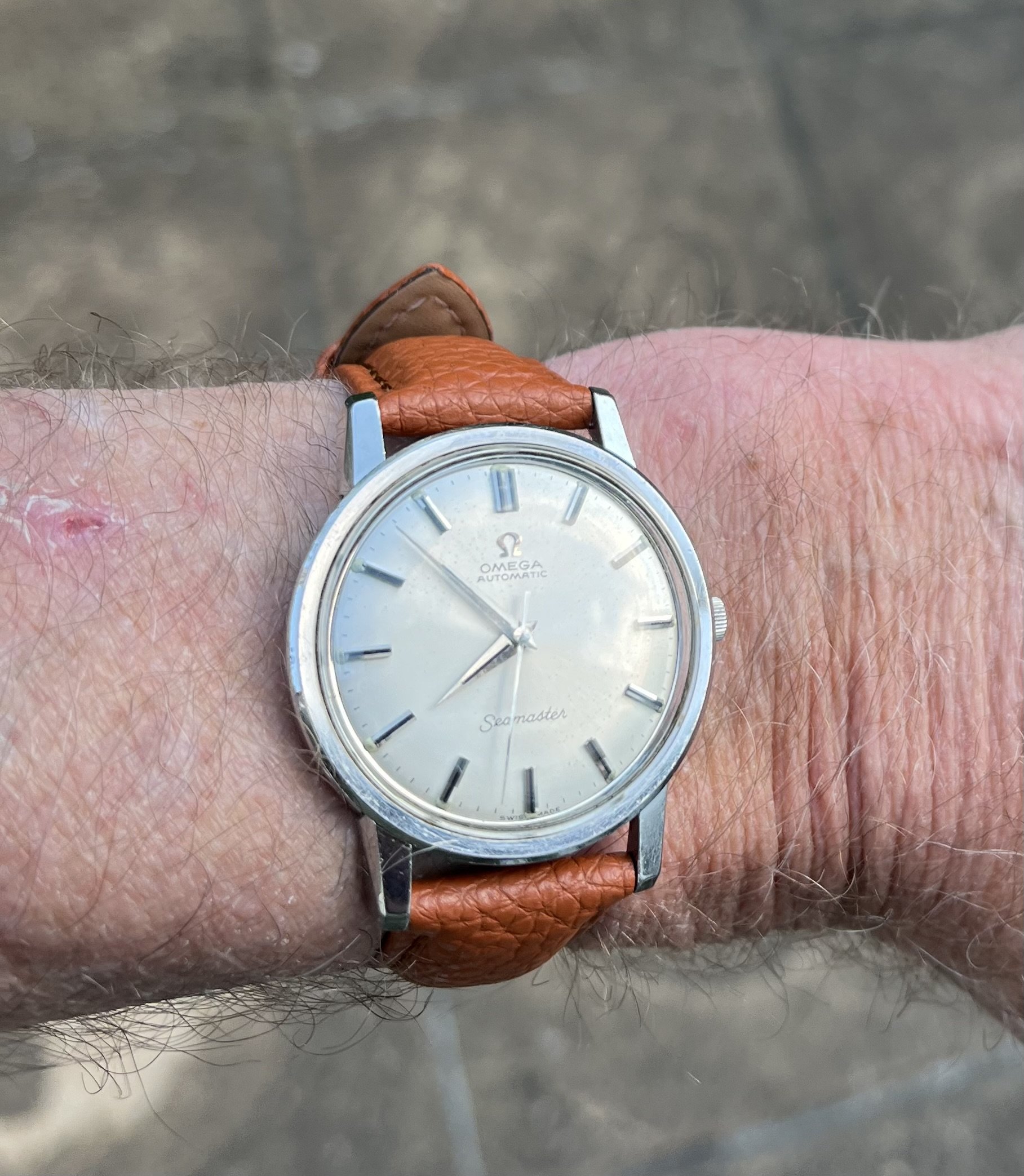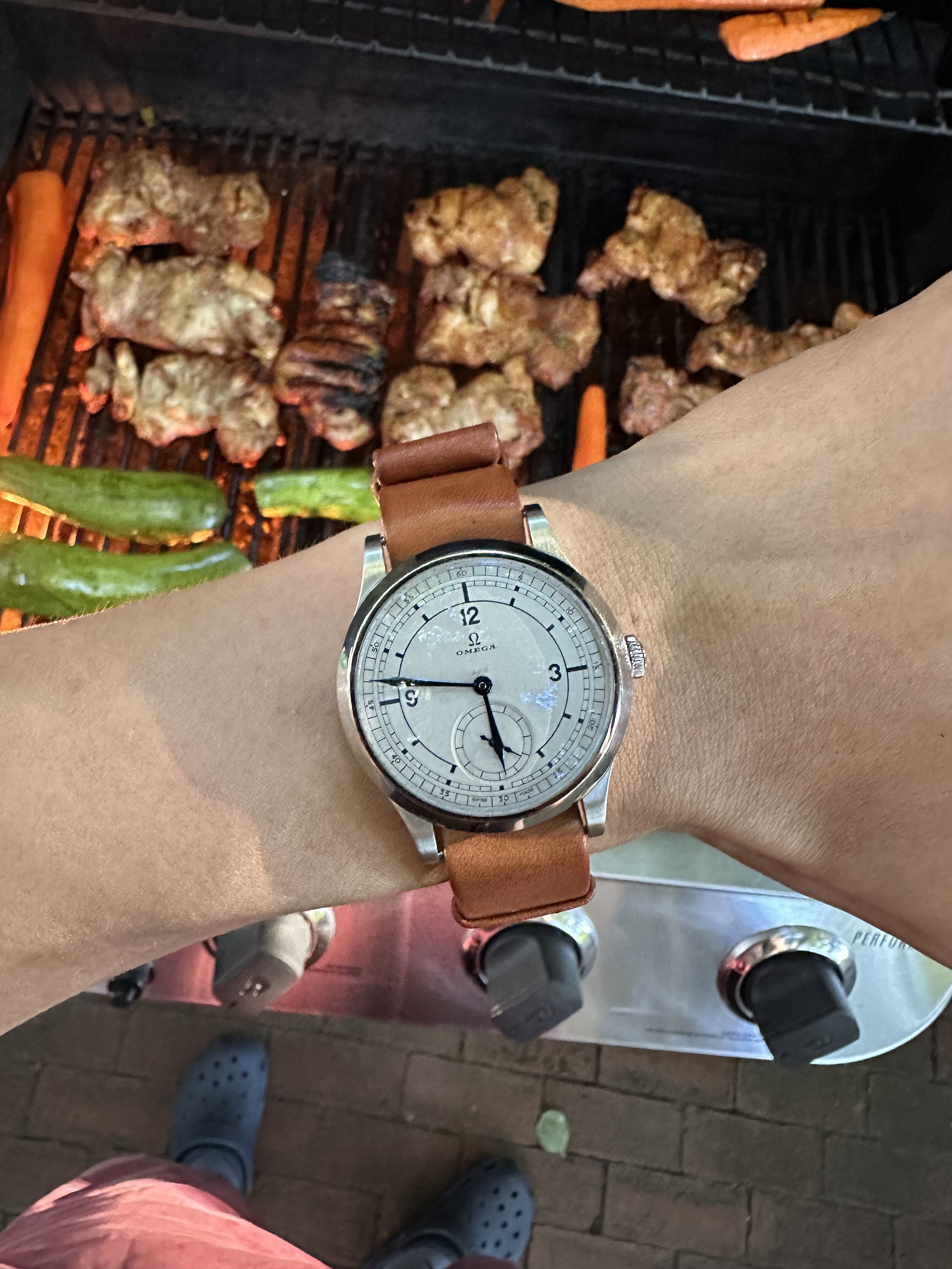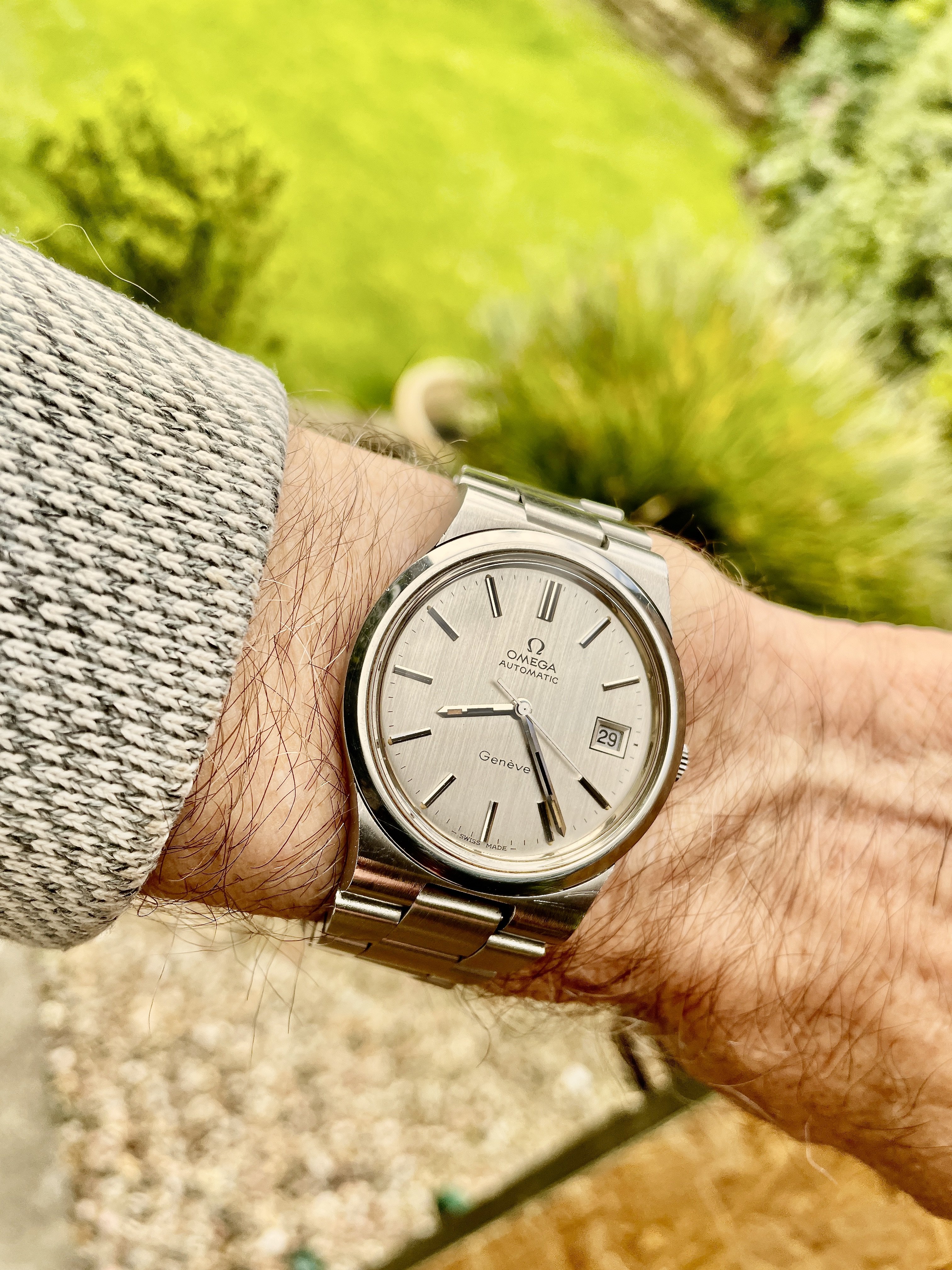 Tokyo 2020 Speedmaster with Sedna gold bezel, pushers and crown, a really different look for this watch with the grey dial, green bezel with gold numbers/letters. I put it on a Genteel Handmade green calfskin strap with light green stitching. Nothing wrong with a bit of color.