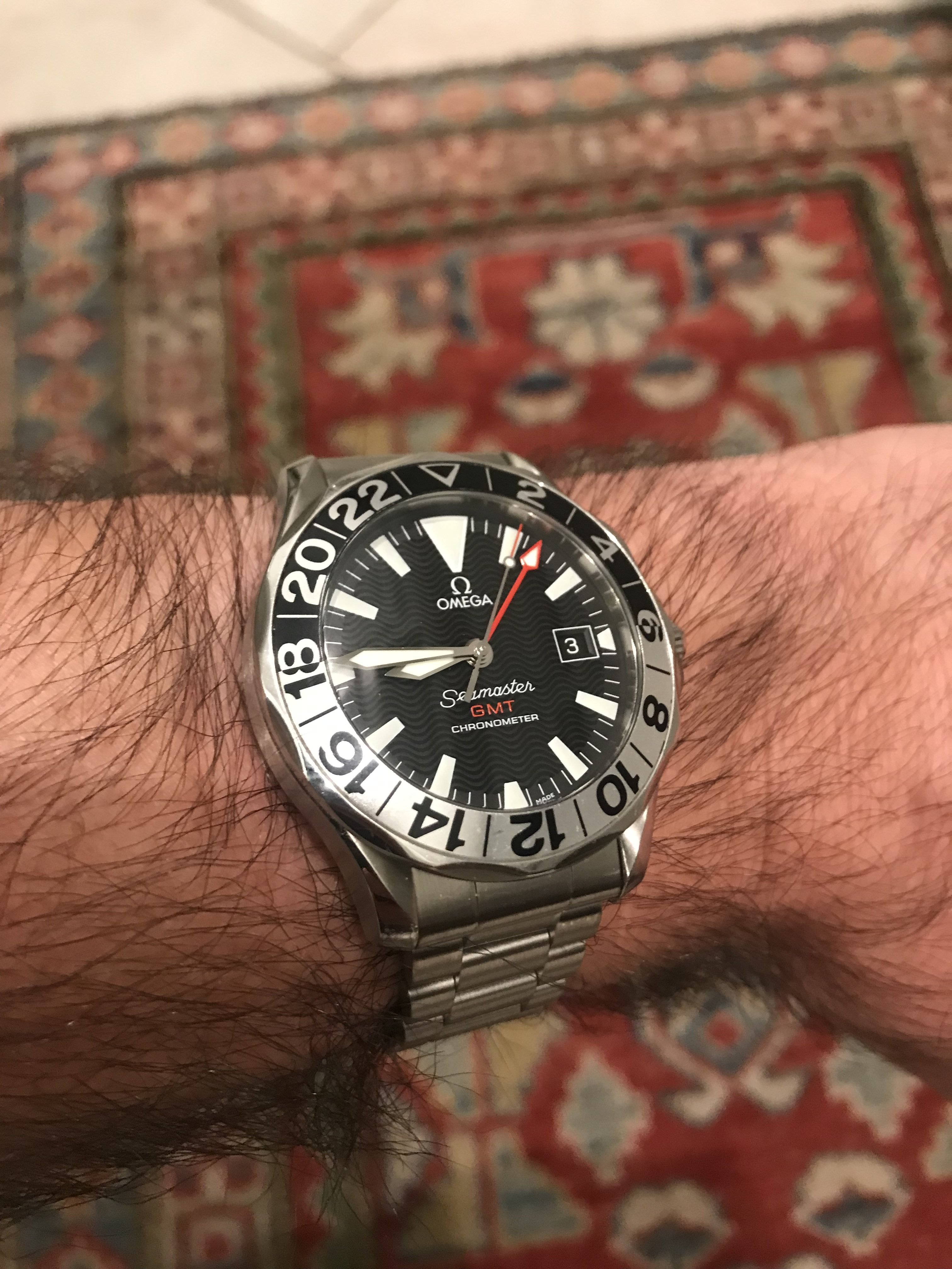 Recent pick up of a Seamaster GMT. Arrived sans bracelet, so popped it onto an Uncle Straps 1171. Perfect fit with the end-links designed for 1861 Speedmasters. Very pleasantly surprised.