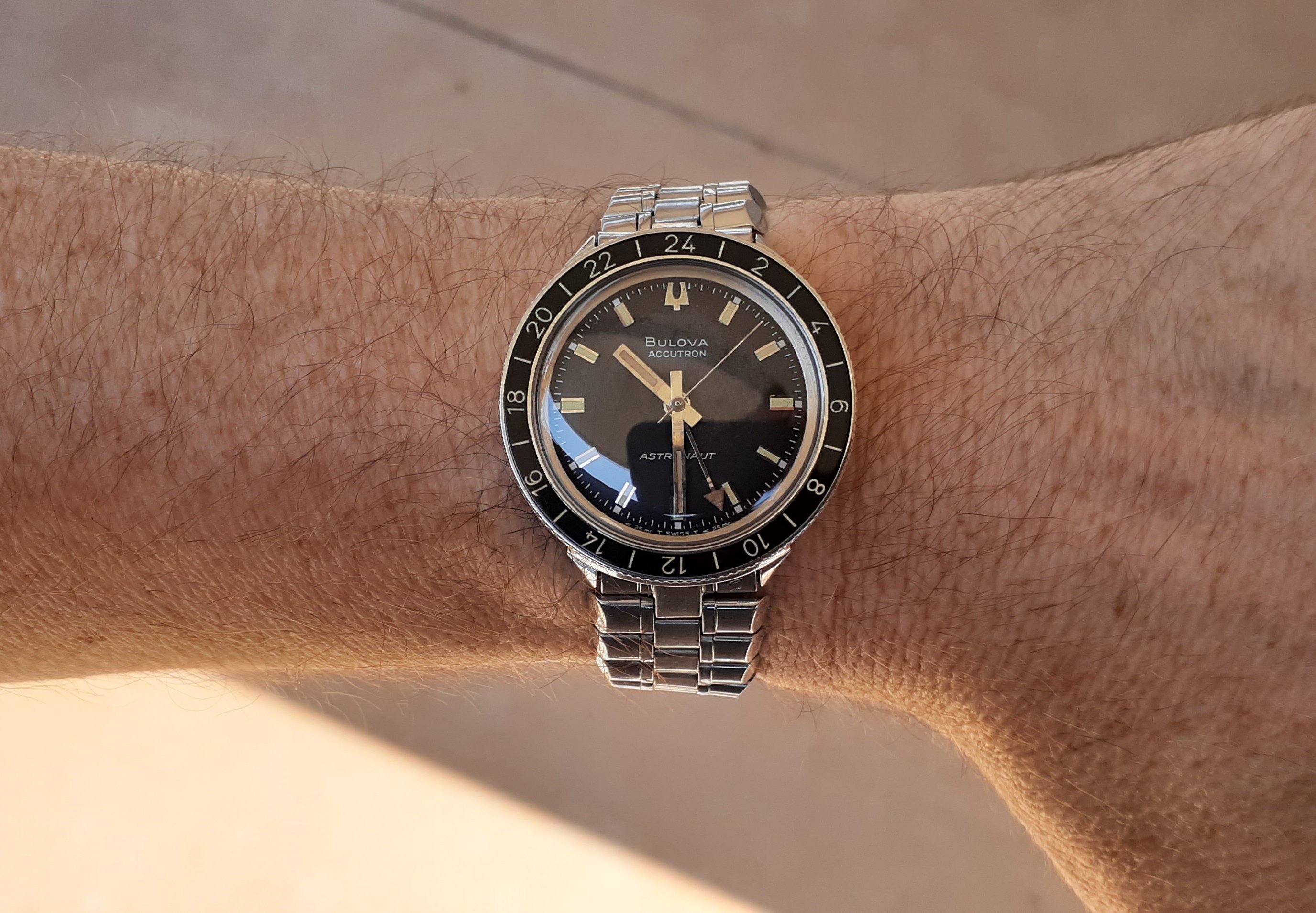 My Astronaut looking as good as it can at this angle with a new Clark crystal. Unfortunately the crystal isn't thick enough at the base to retain the crystal so it will fall off if I turn the watch 90 degrees. Do any of you Accutron aficionados know if there is supposed to be some sort of spacer between the bezel and the crystal? There wasn't one present on the watch when I bought it and it took a decent amount of pulling to get the bezel off when the original crystal was in place. Any help is appreciated with my only moneypit vintage watch 馃榿