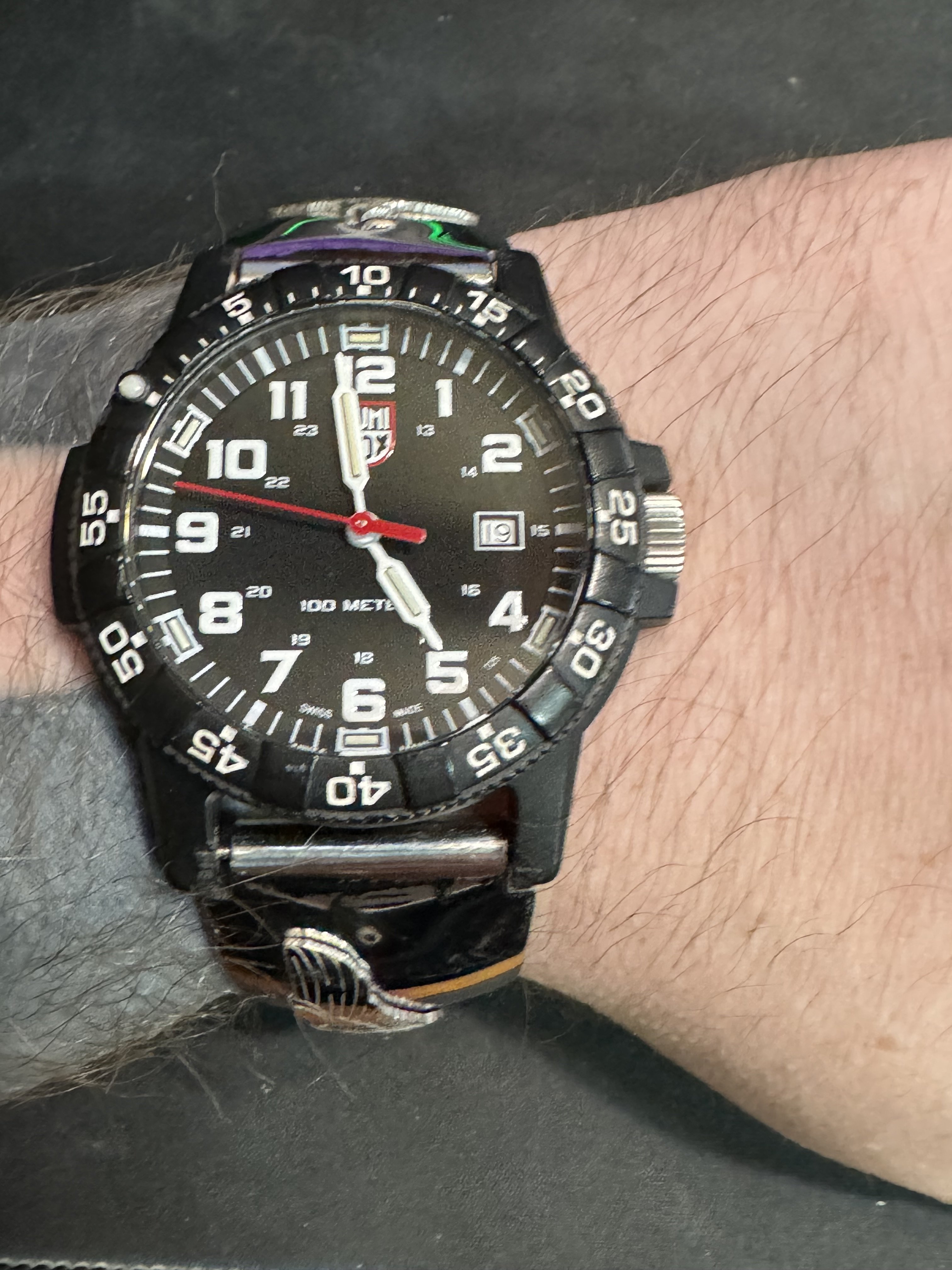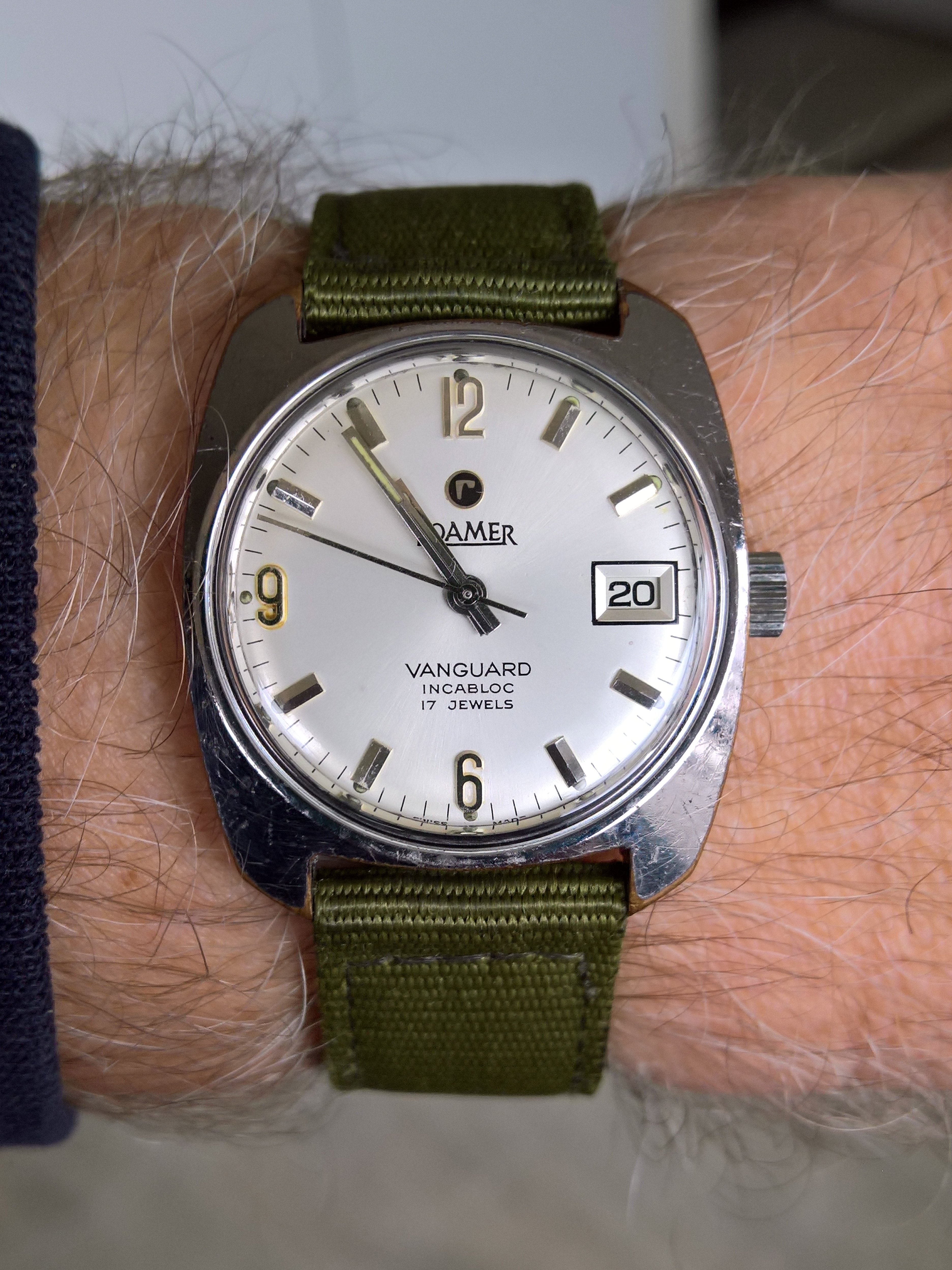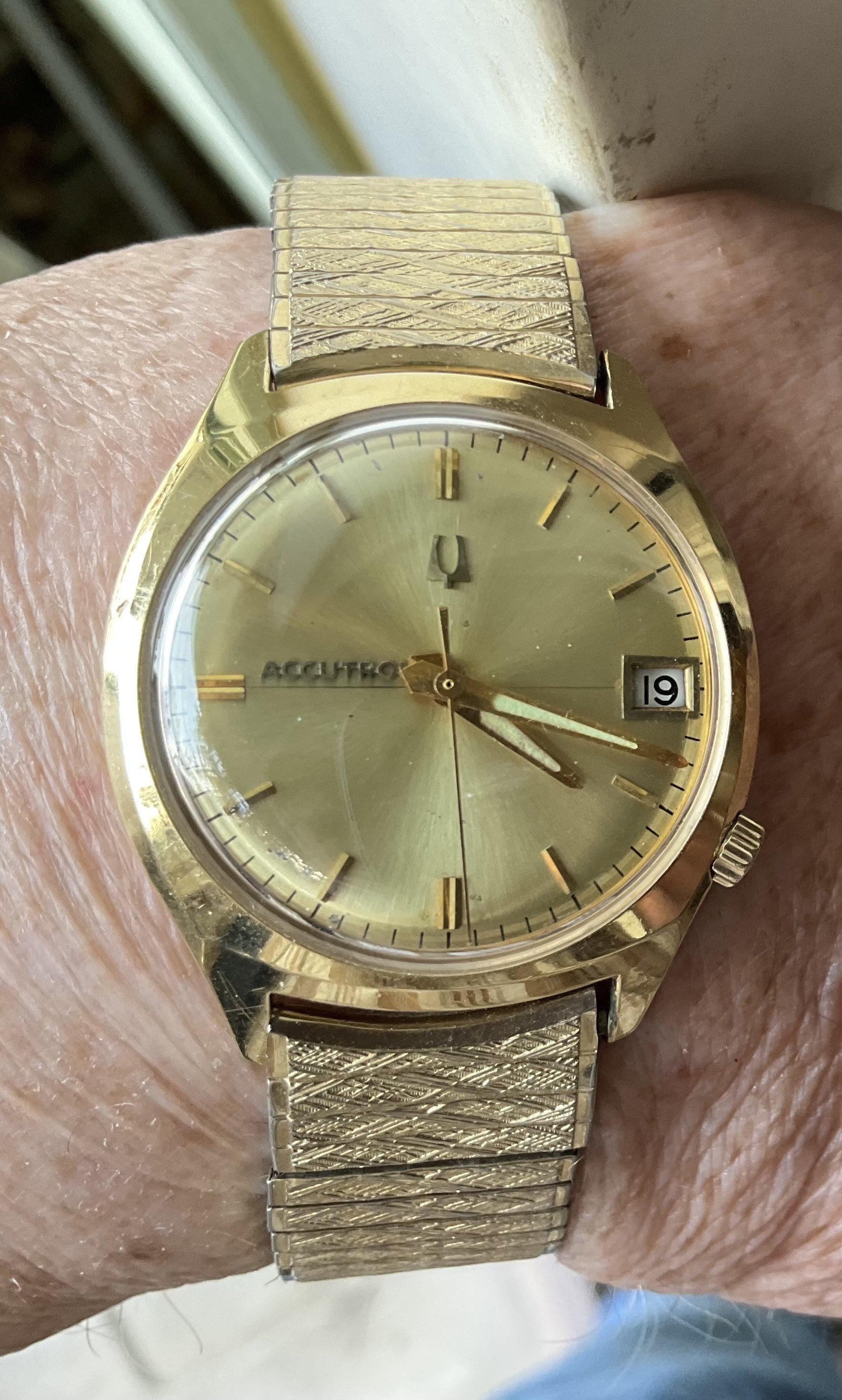·This was a widely seen look in Accutron 218 model watches, 55 years ago. I personally sold a lot of them back in the day. This look doesn’t appear to be a grail watch for all watch collectors, and it isn’t very sexy. But it was time for a change, today, so this is the one I picked to wear. I have several of this model with a variety of dials. Good runners.