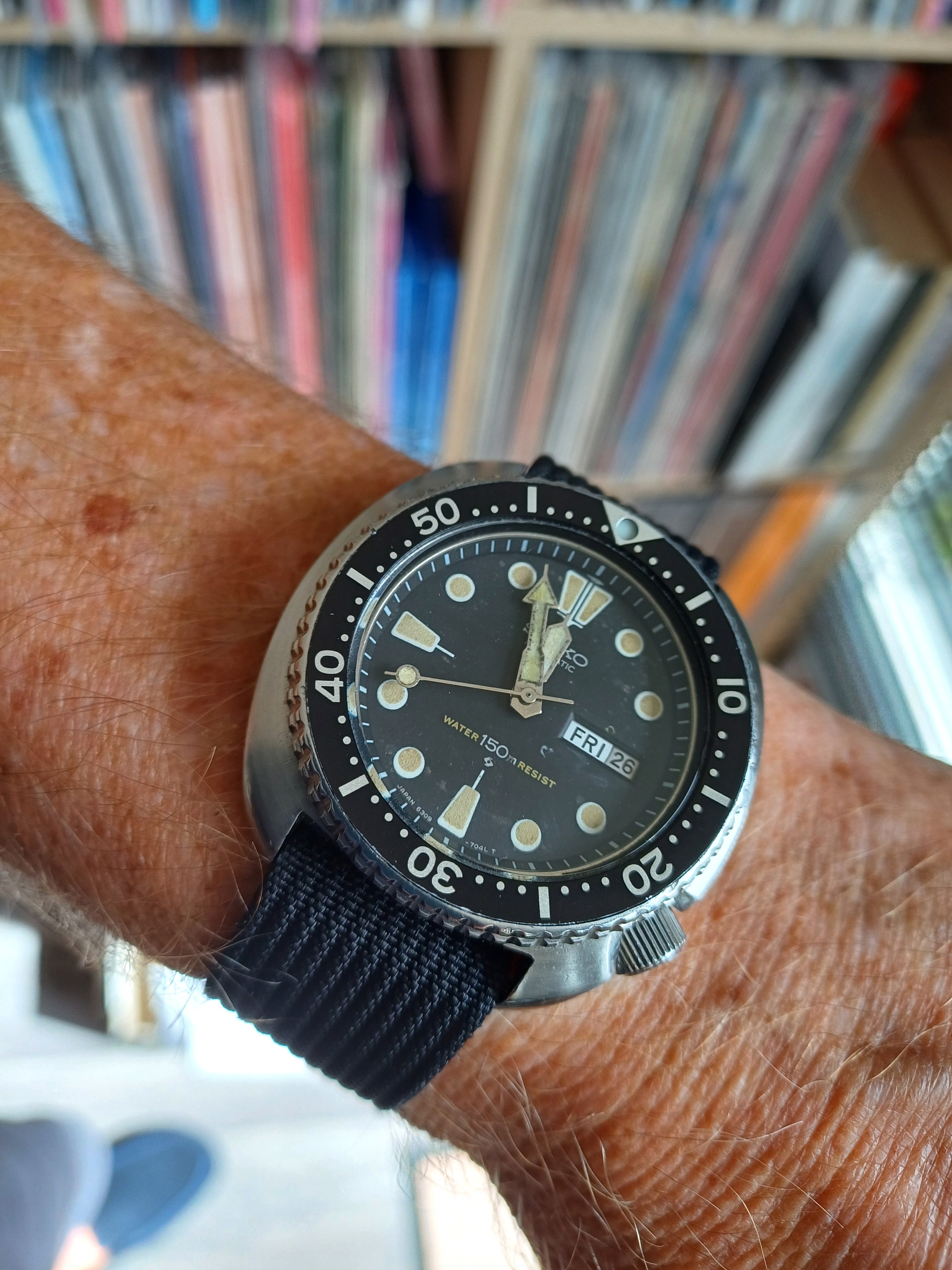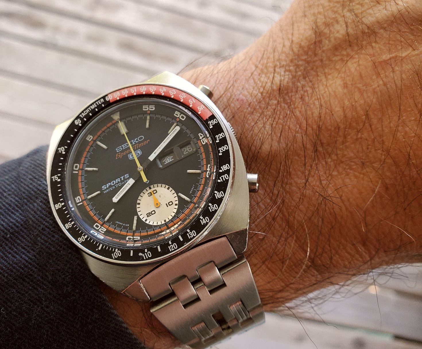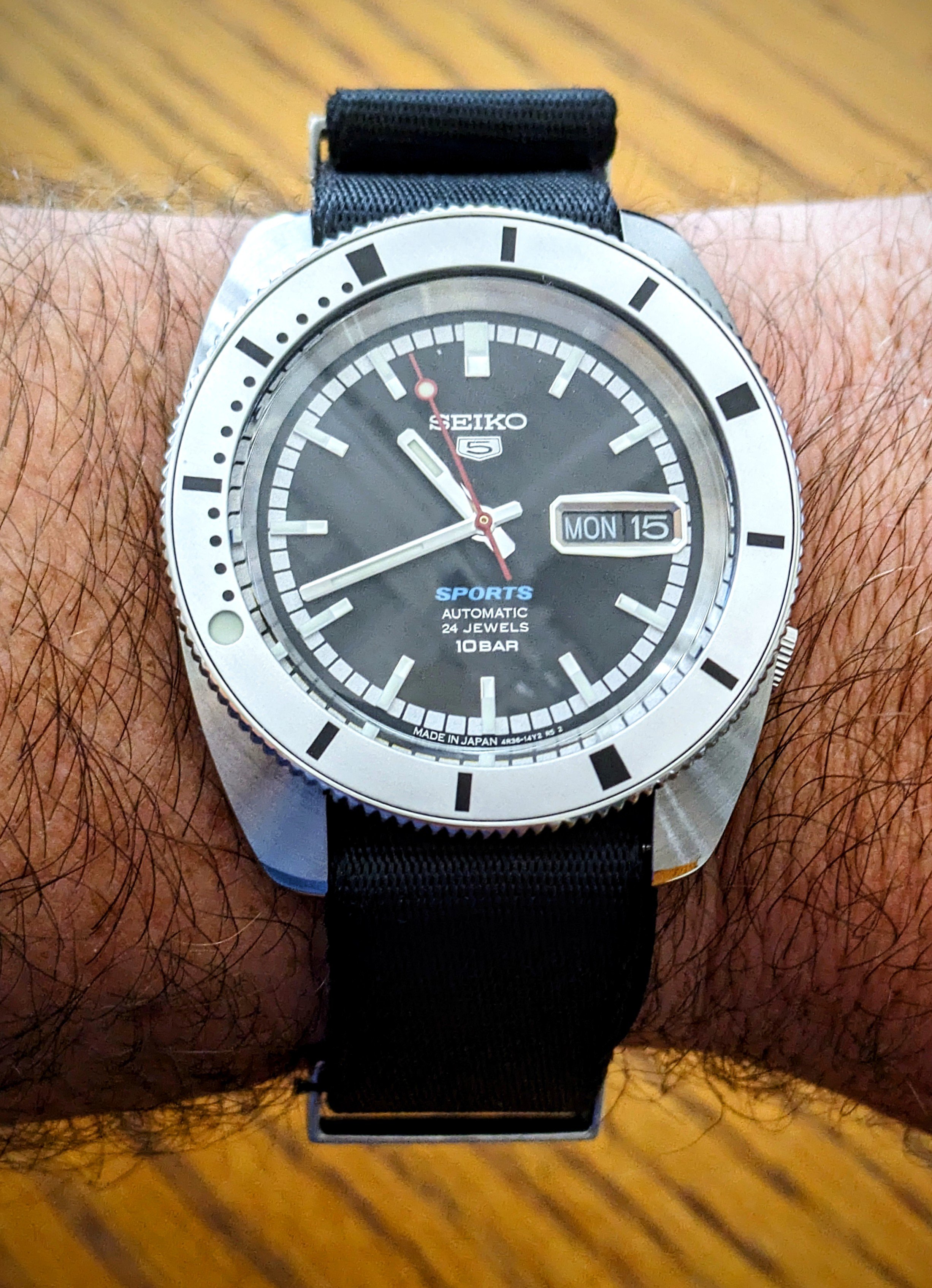 While ordering a new Uncle Seiko chocolate bar for the Captain, I couldn't resist putting a "JDM Seiko Sports" bracelet in my cart. Trying it out this morning on my 6139-6031 black Pogue.