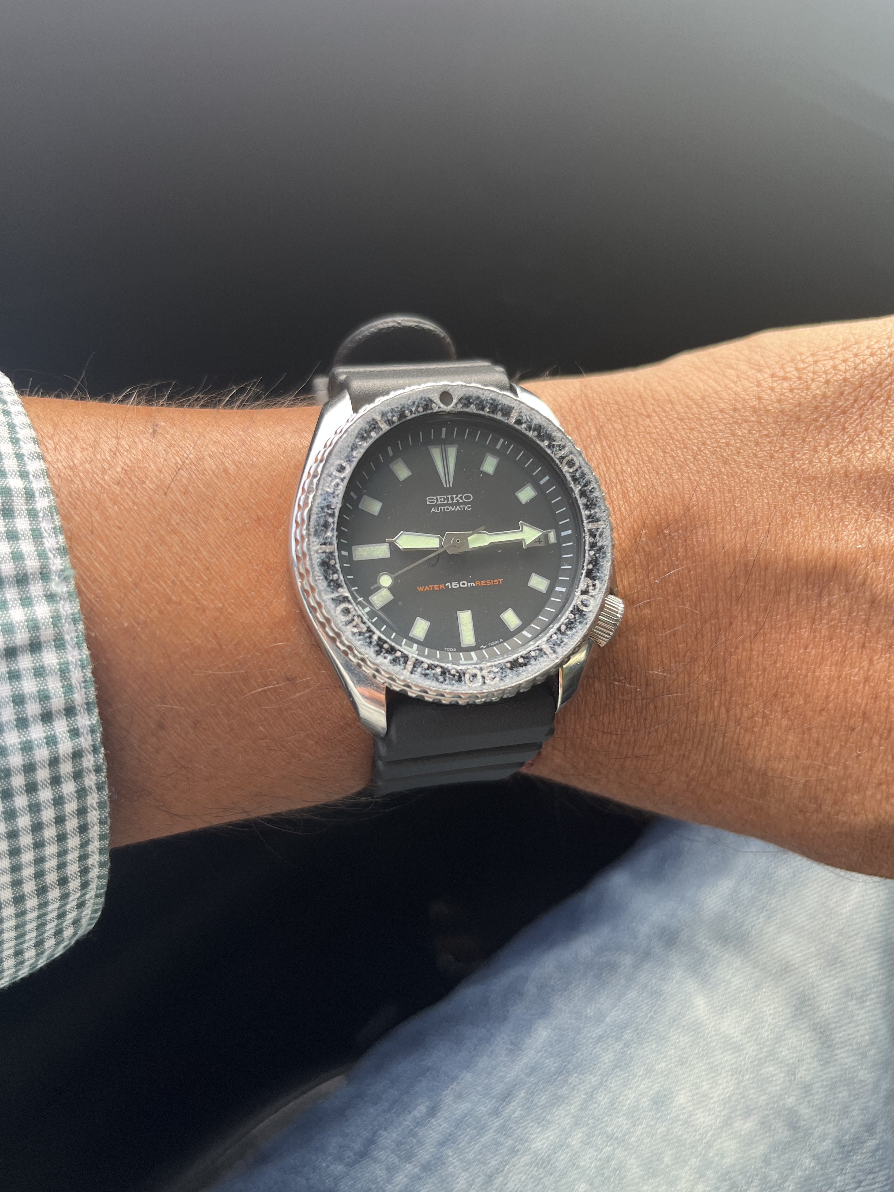 Early Sea Wolf: no date, pre-hacking feature movement, and with solid lume hands rather than the later veined lume hands.