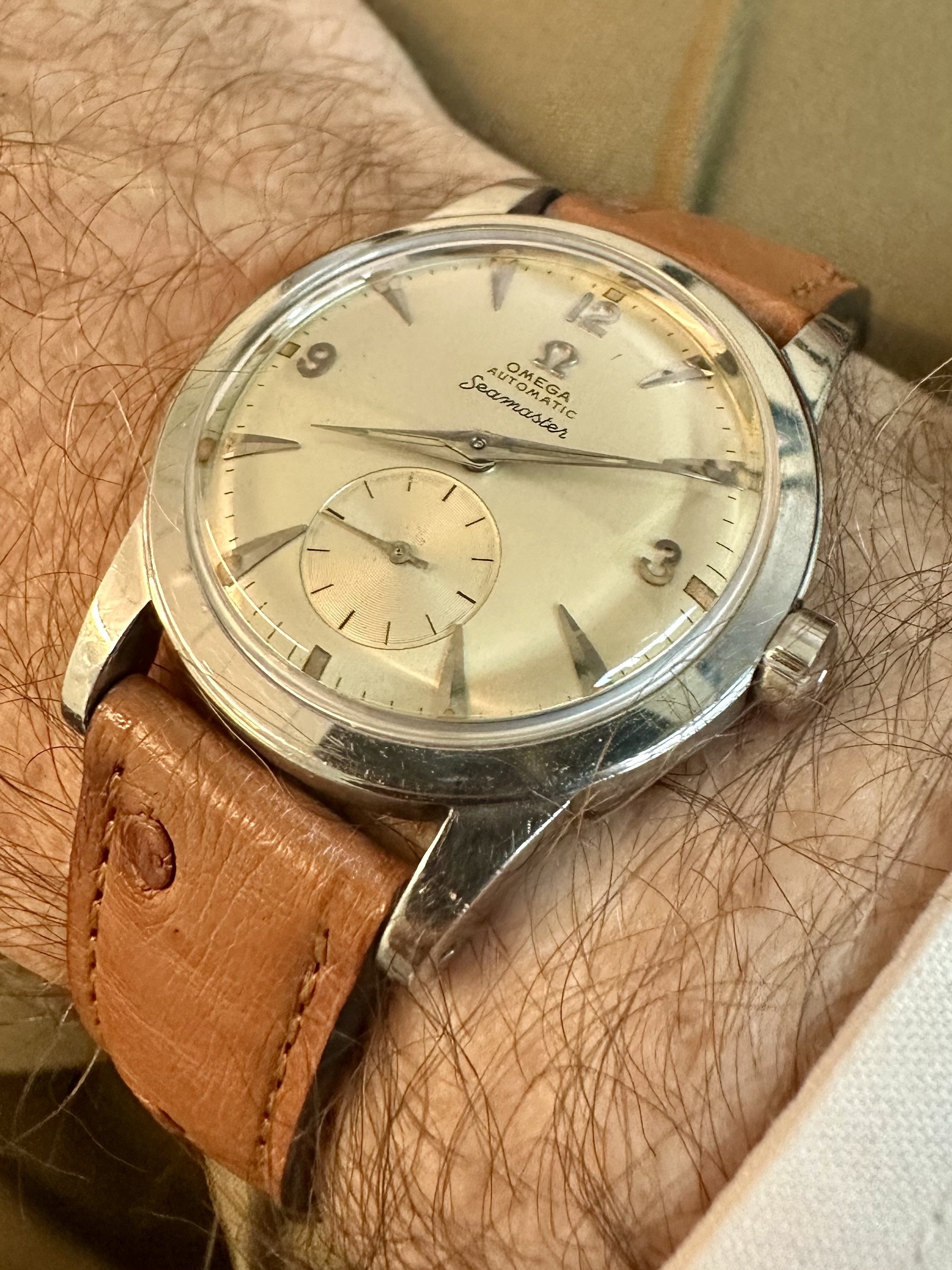And yes, the crown is set. If one doesn't watch the angle of the shot when he photographs the watch, it appears that the crown is pulled out on these and all loose and flollop-y. Hey, it was 1953 when this model was introduced so wa'd' ya' expect?