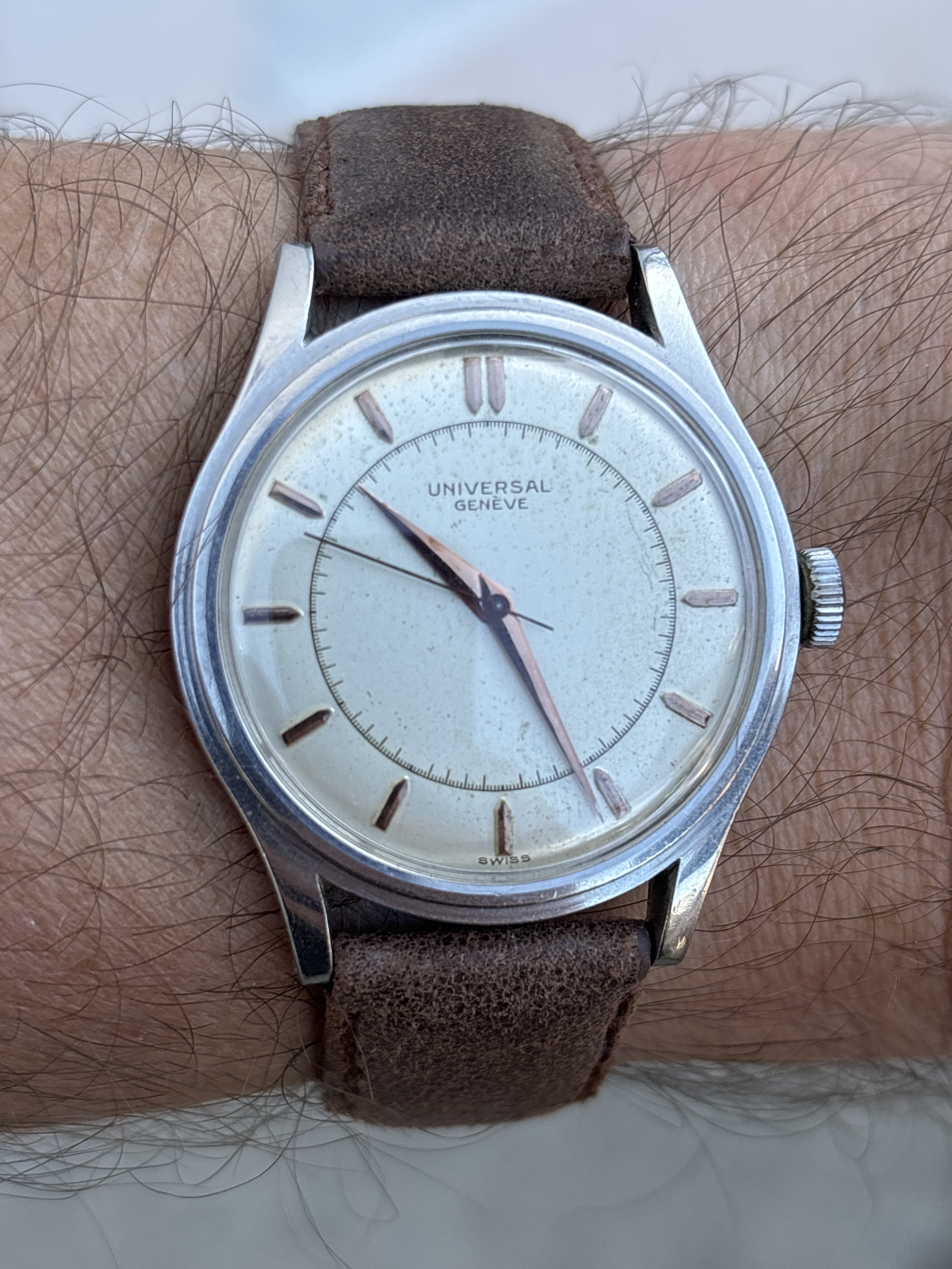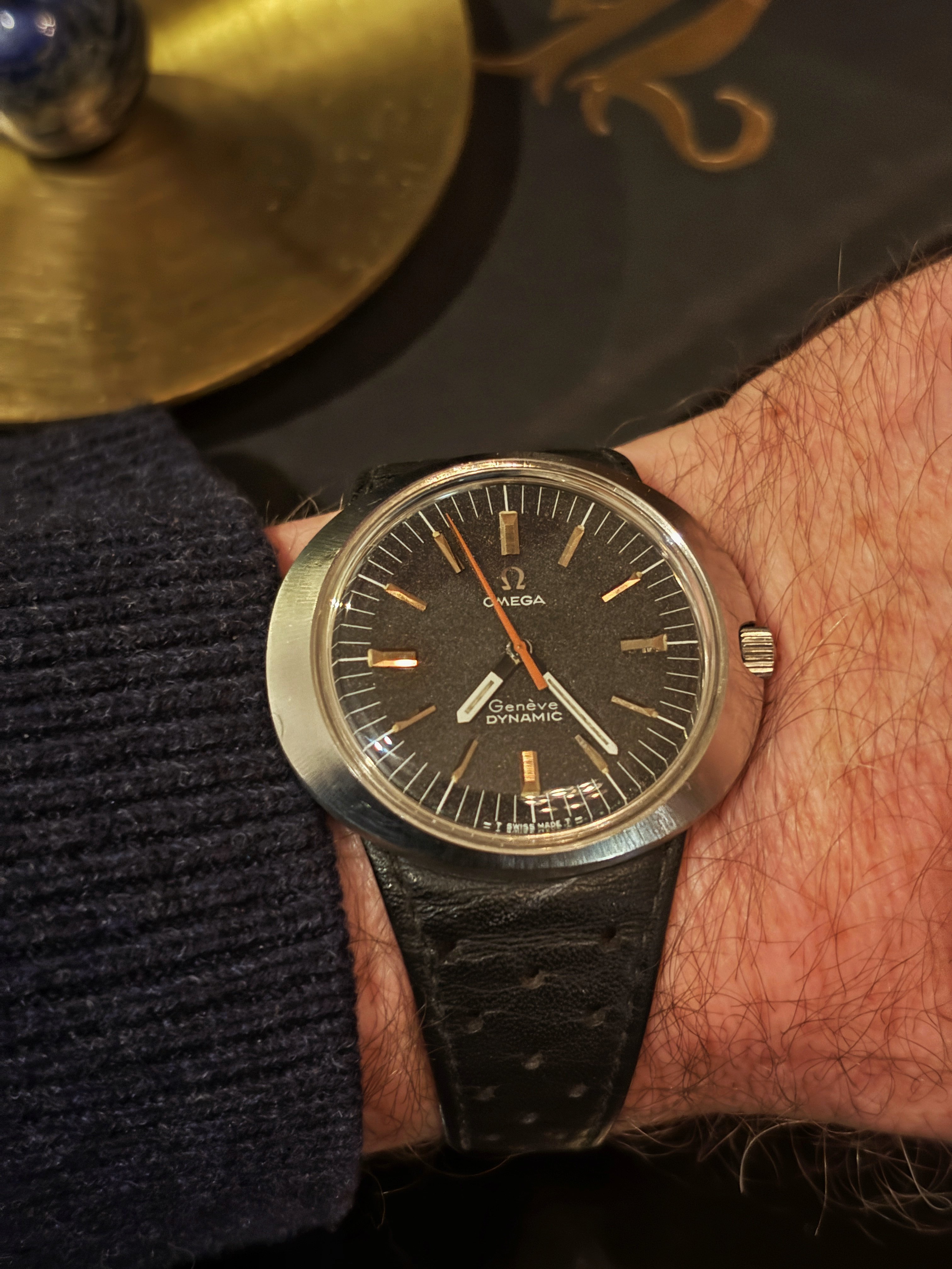 Posts 582 Likes 4,914 Makesbelieve ·Aug 18, 2024 Feeling very undynamic after a big night entertaining guests... Genéve Dynamic 1 Reference: 135.0033 Year: 1968 Cal: 601 Bracelet/Strap: Black leather Omega Corfam