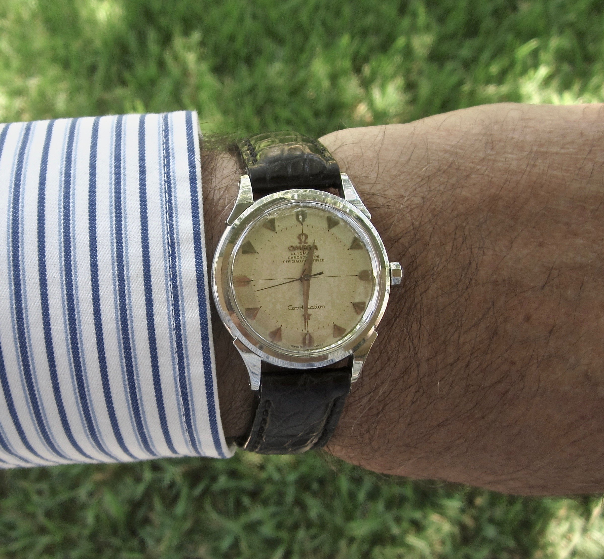 Posts 582 Likes 4,914 Makesbelieve ·Aug 18, 2024 Constellation Reference: 14902 SC61 Year:1962 Cal: 561 Dial: Pie Pan with Onyx Inlays