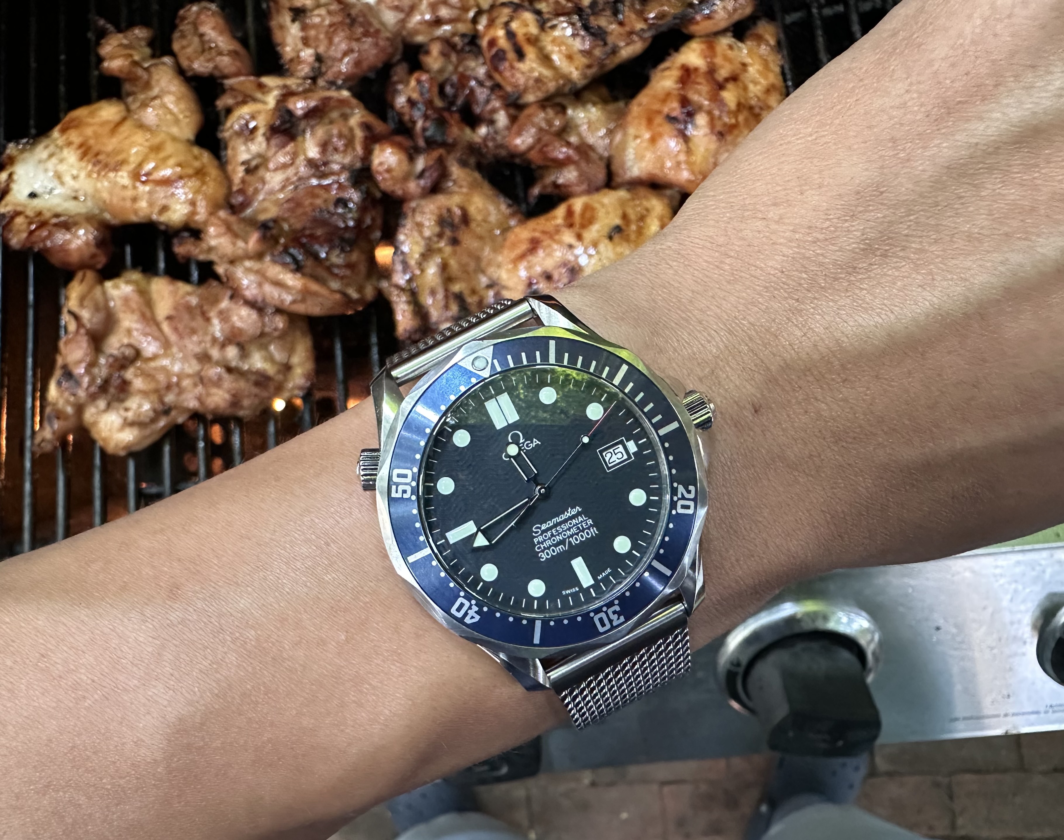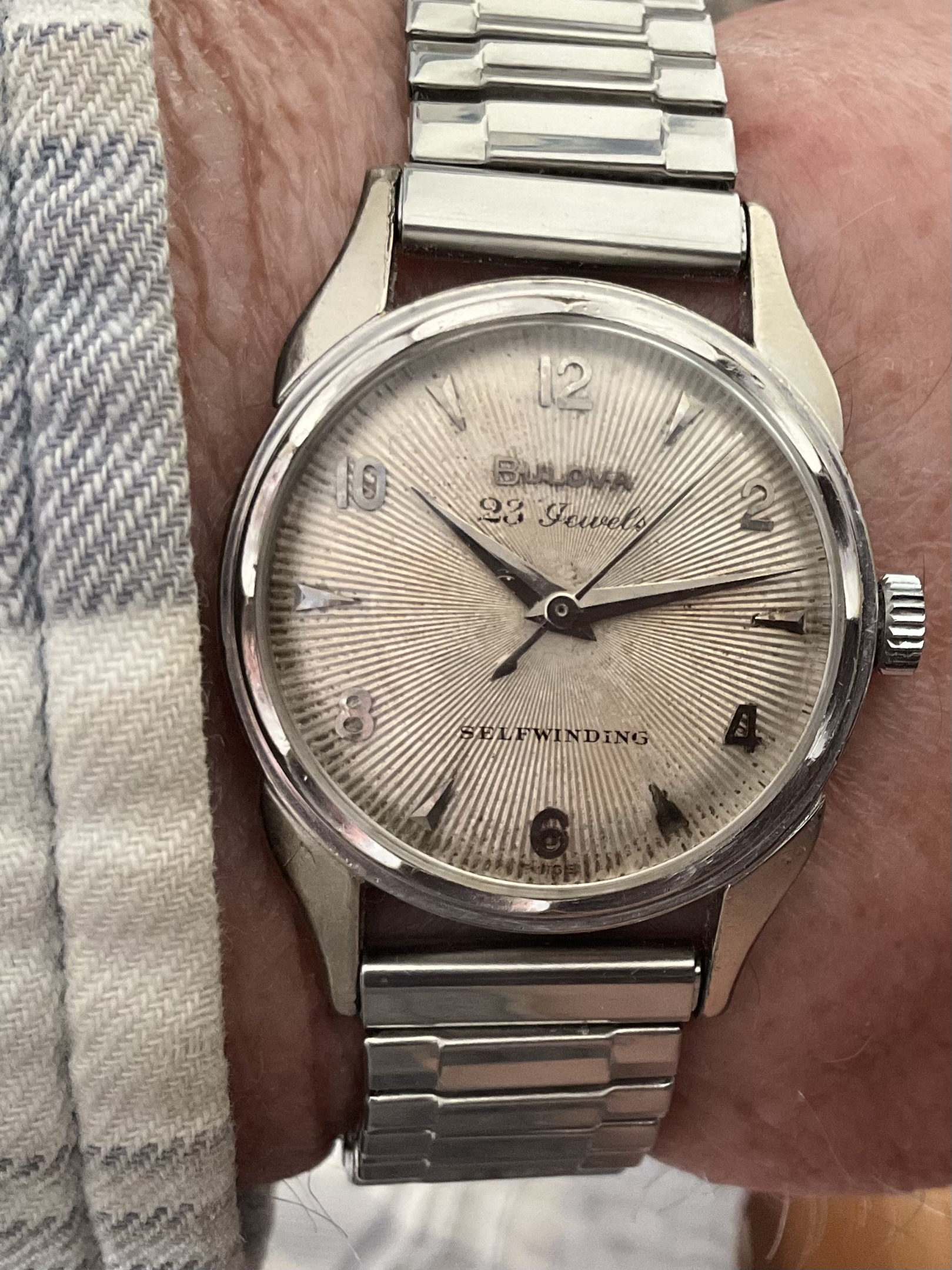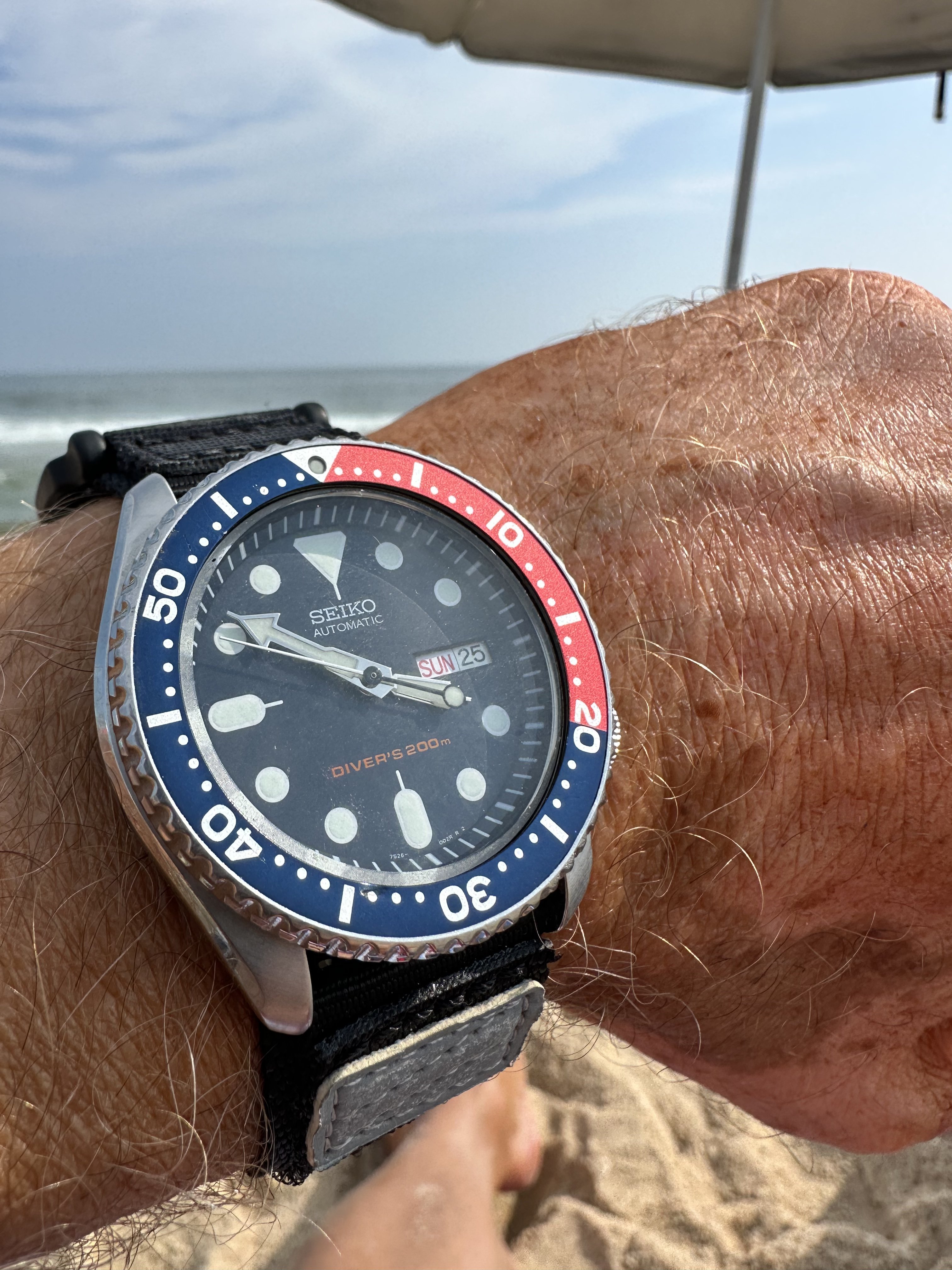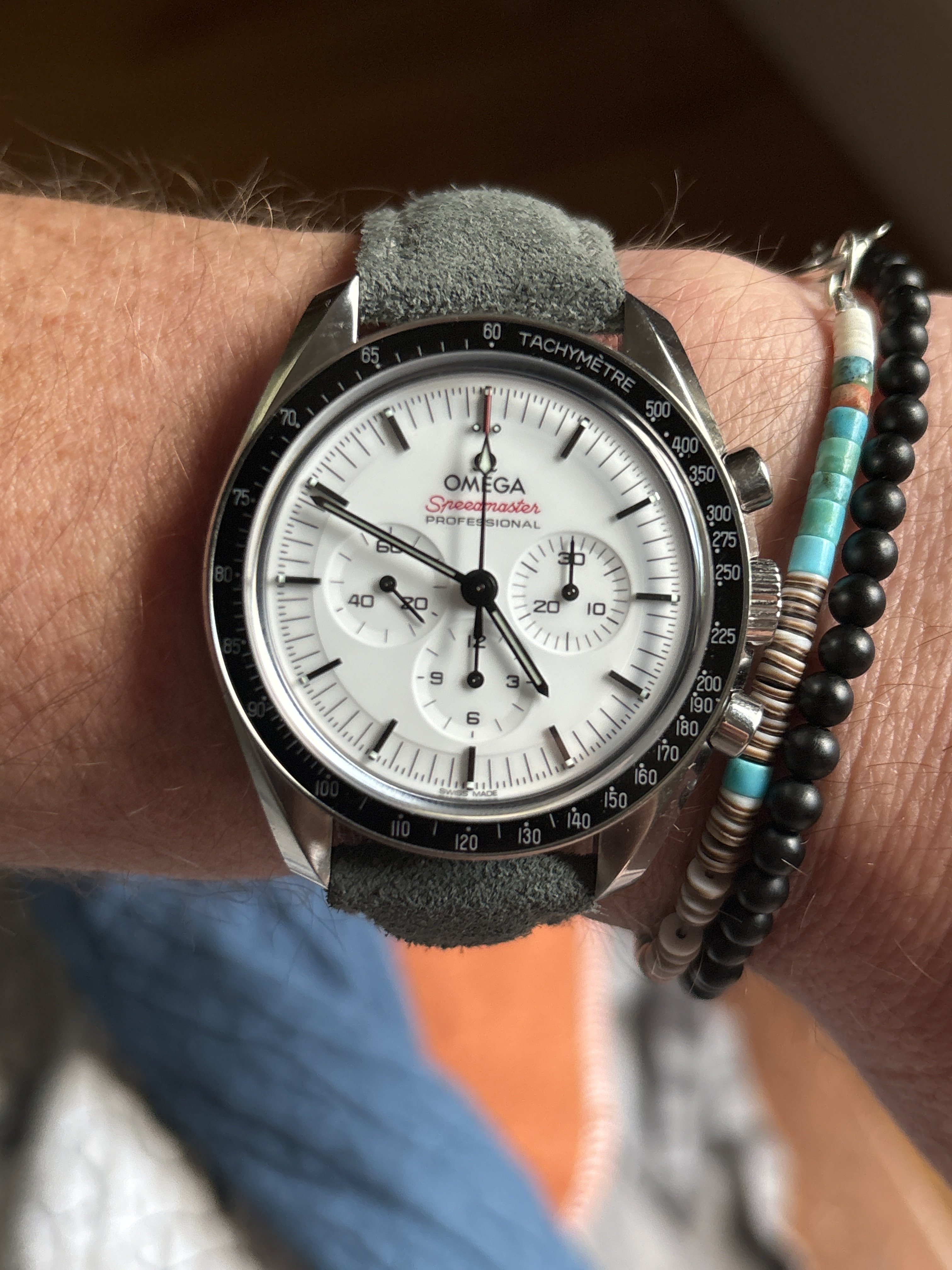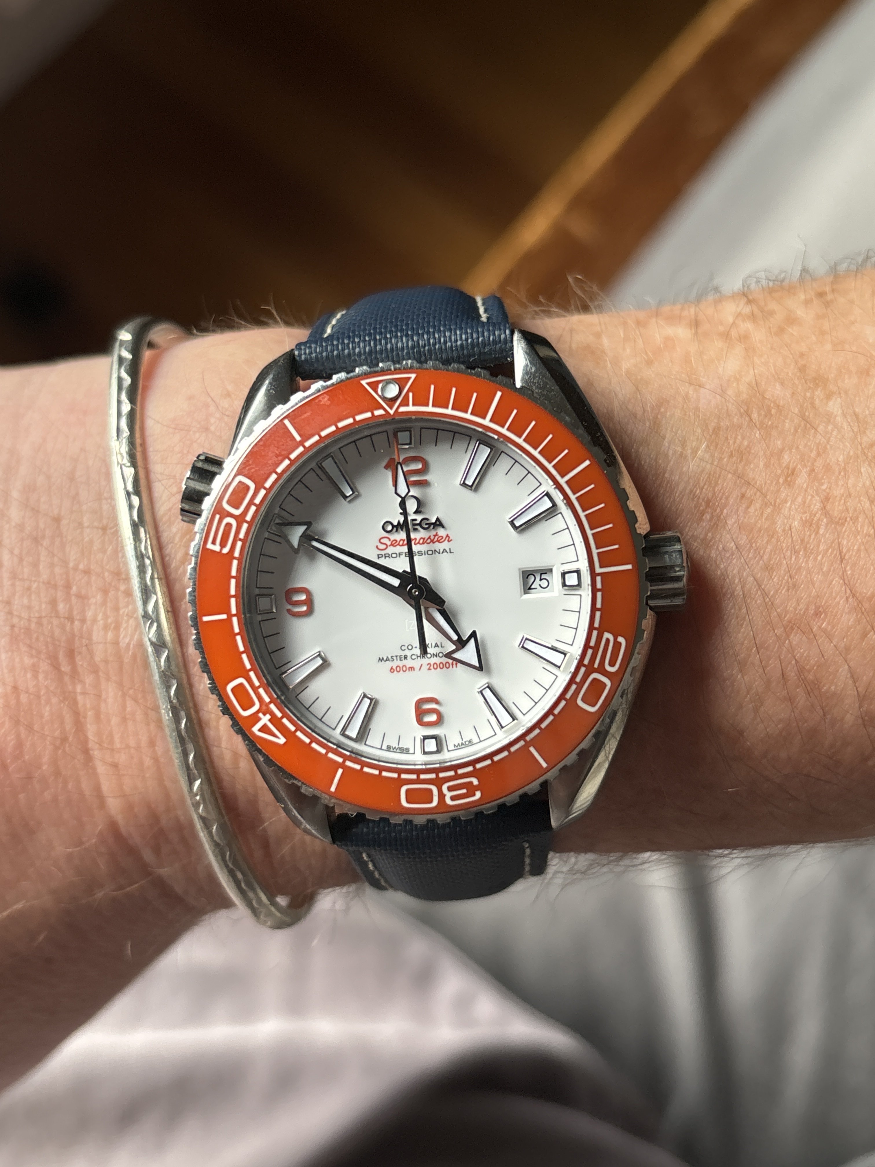 I’m back on the DL, diagnosed with saphenous neuritis, following my recent knee surgery. Consequently, I’m back on bed rest, and playing with watches until I follow up with ortho tomorrow. I was inspired to sport two white dialed Omegas after watching preliminary regatta sailing for the America’s