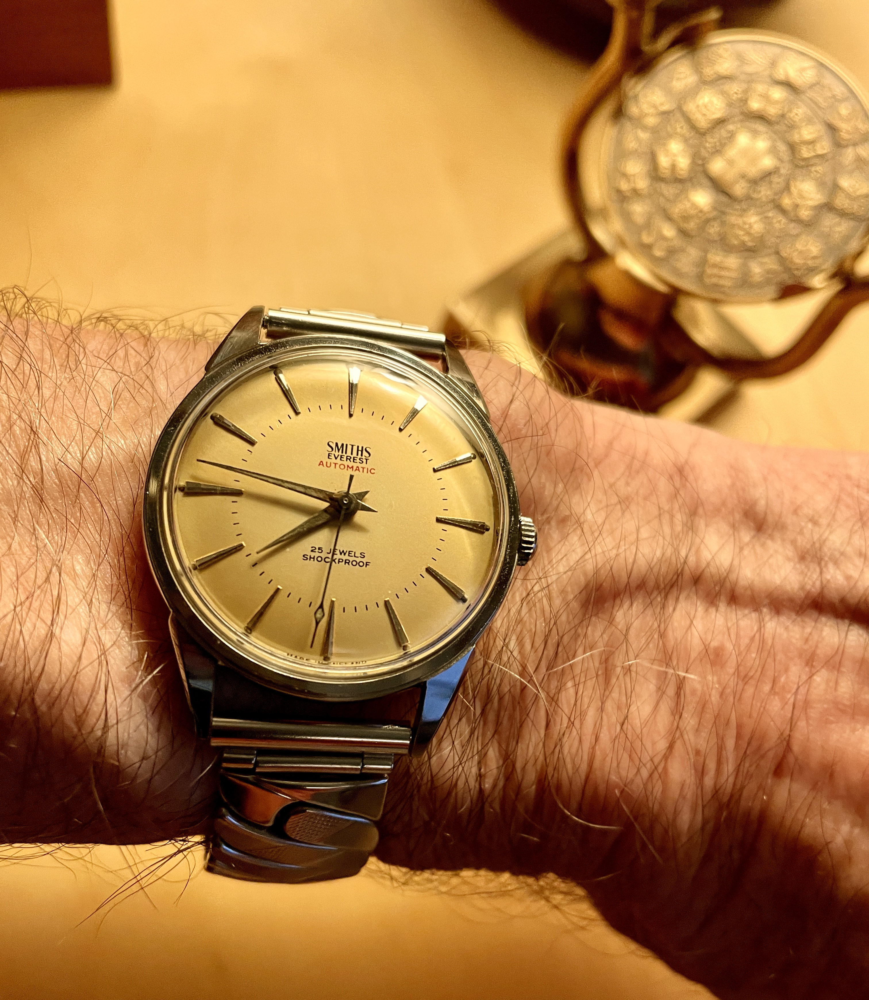 If anyone is remotely interested in the background image to my Smiths Everest it is my City and Guilds Medal for 1st in Britain.