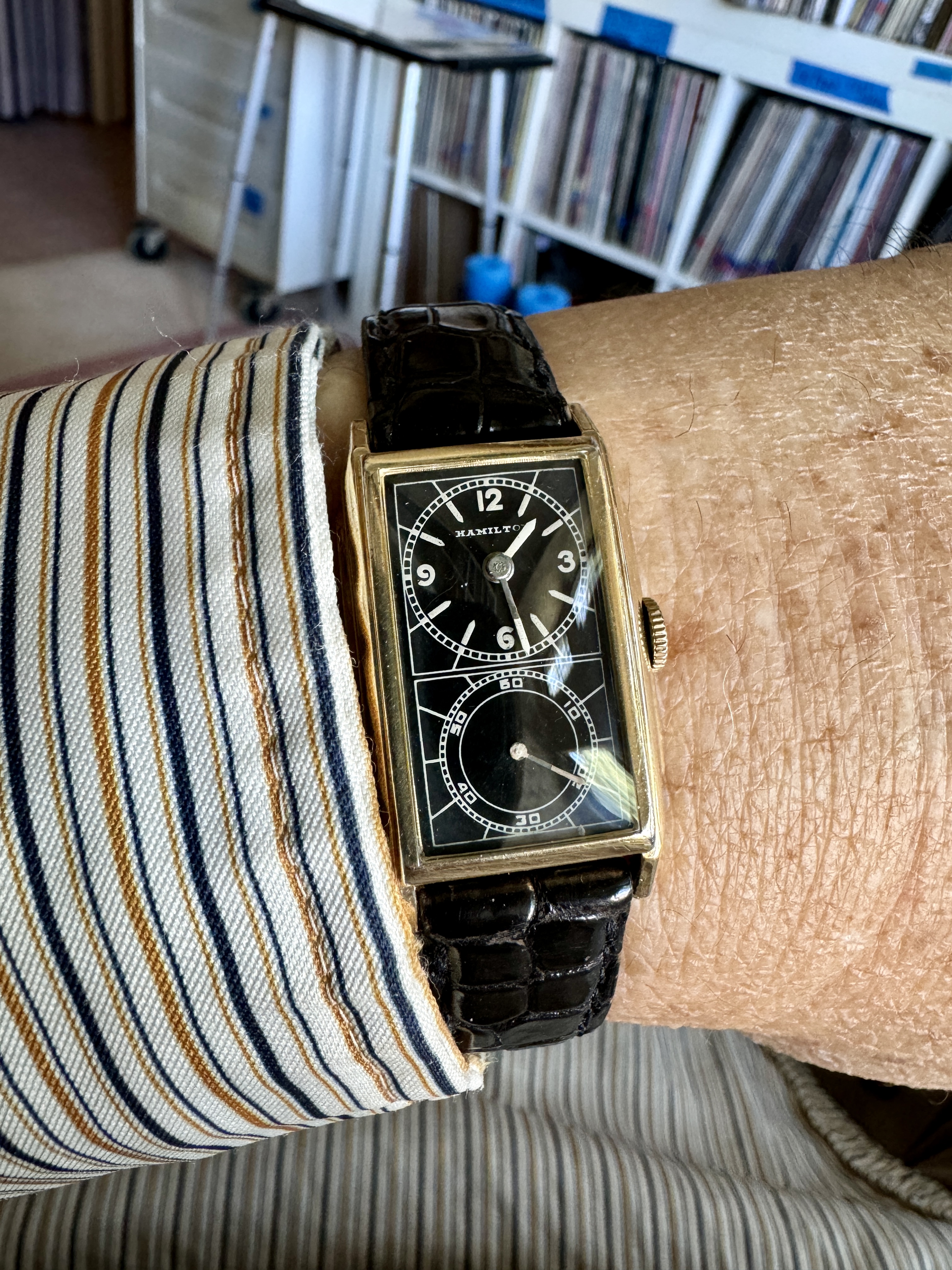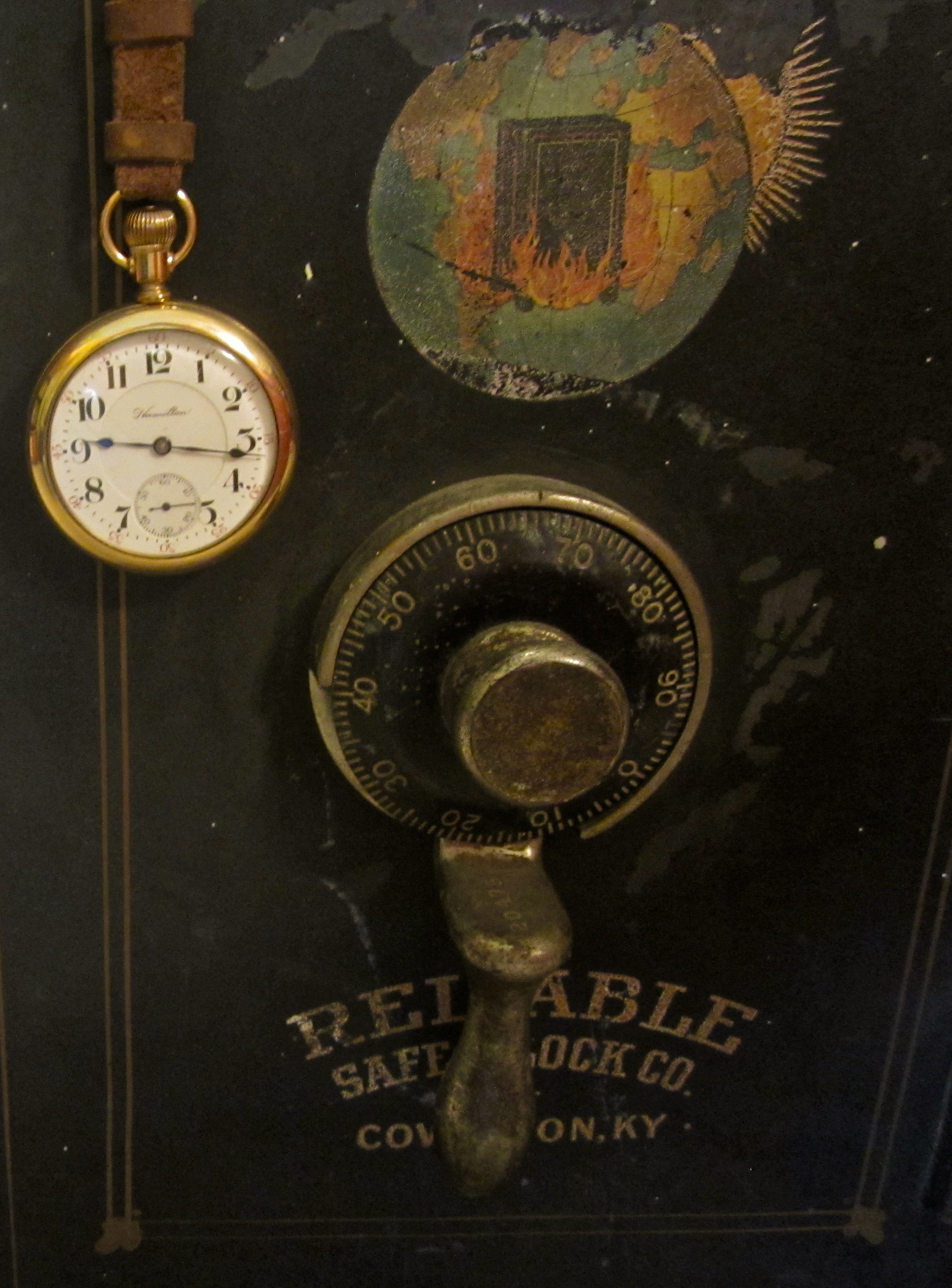 A DaveK "Mystery Braid" lanyard doing the duty this morning on another of the large 18size Hamiltons, the 21-jewel 940 from 1911. Still have the original receipt for purchase of my great grandfather's safe dated 1917 inside. It's still set to his combination.