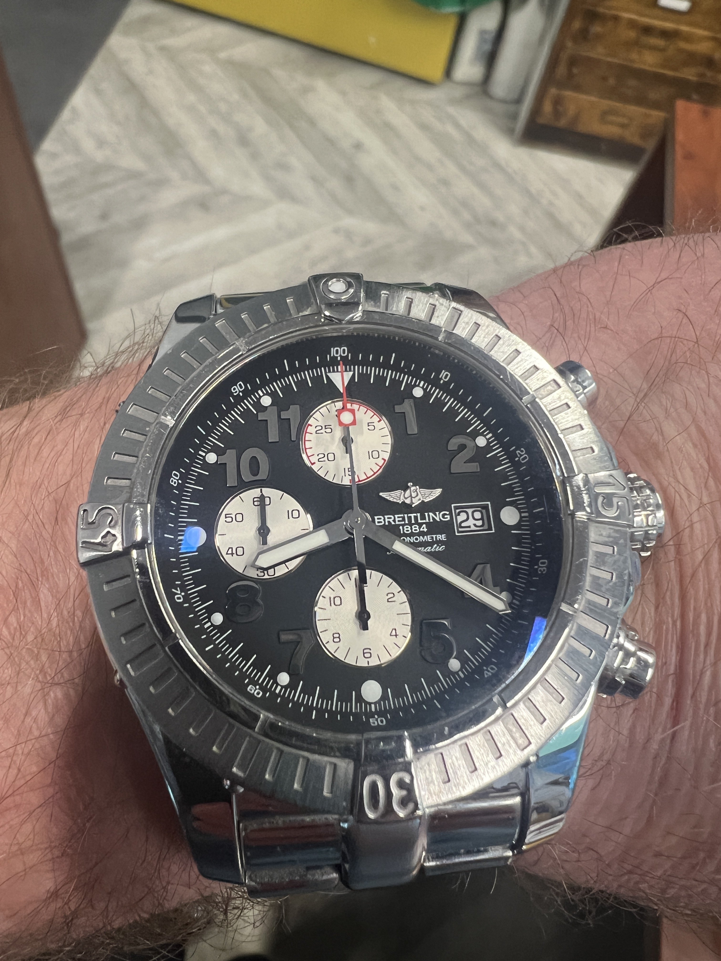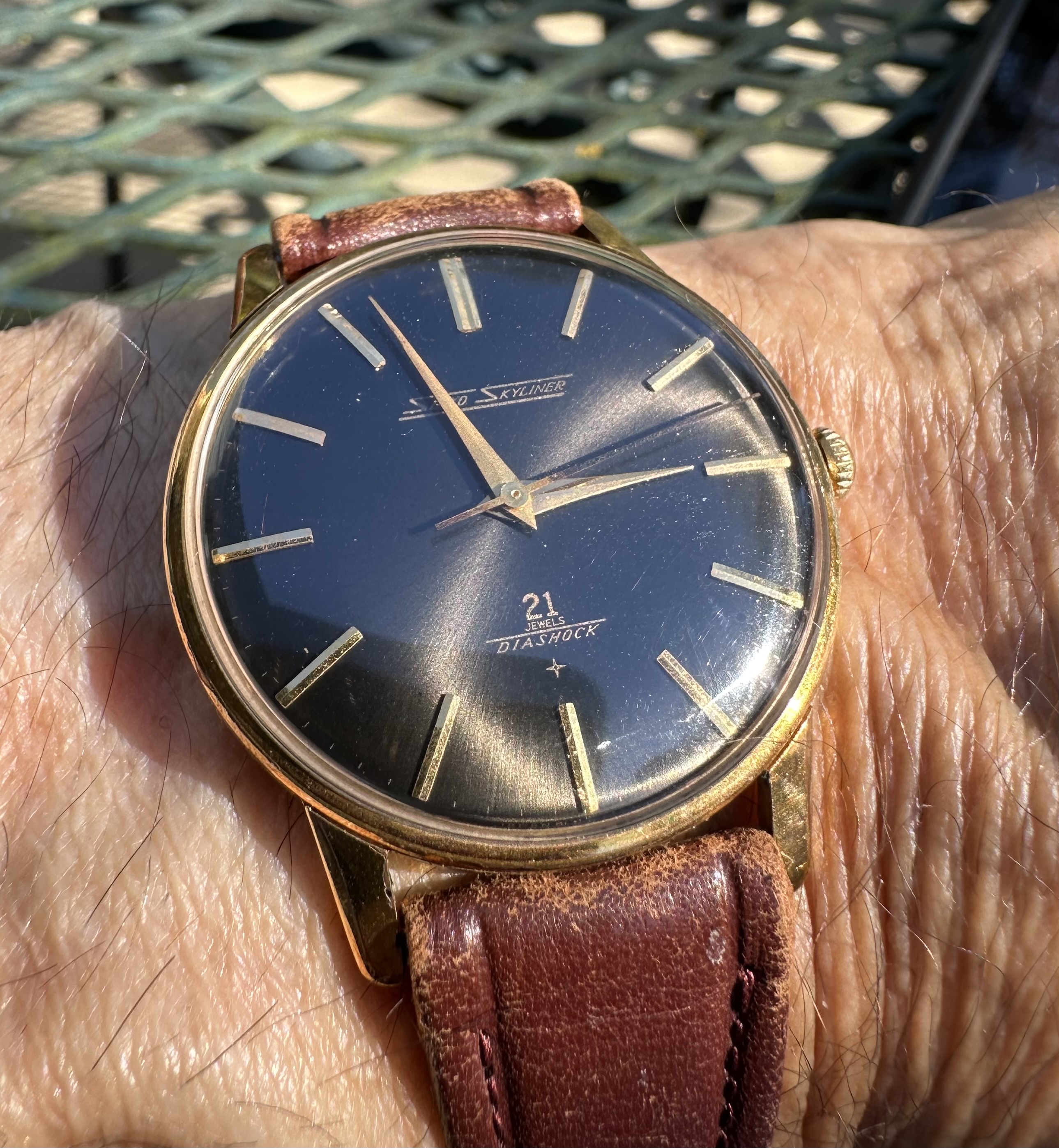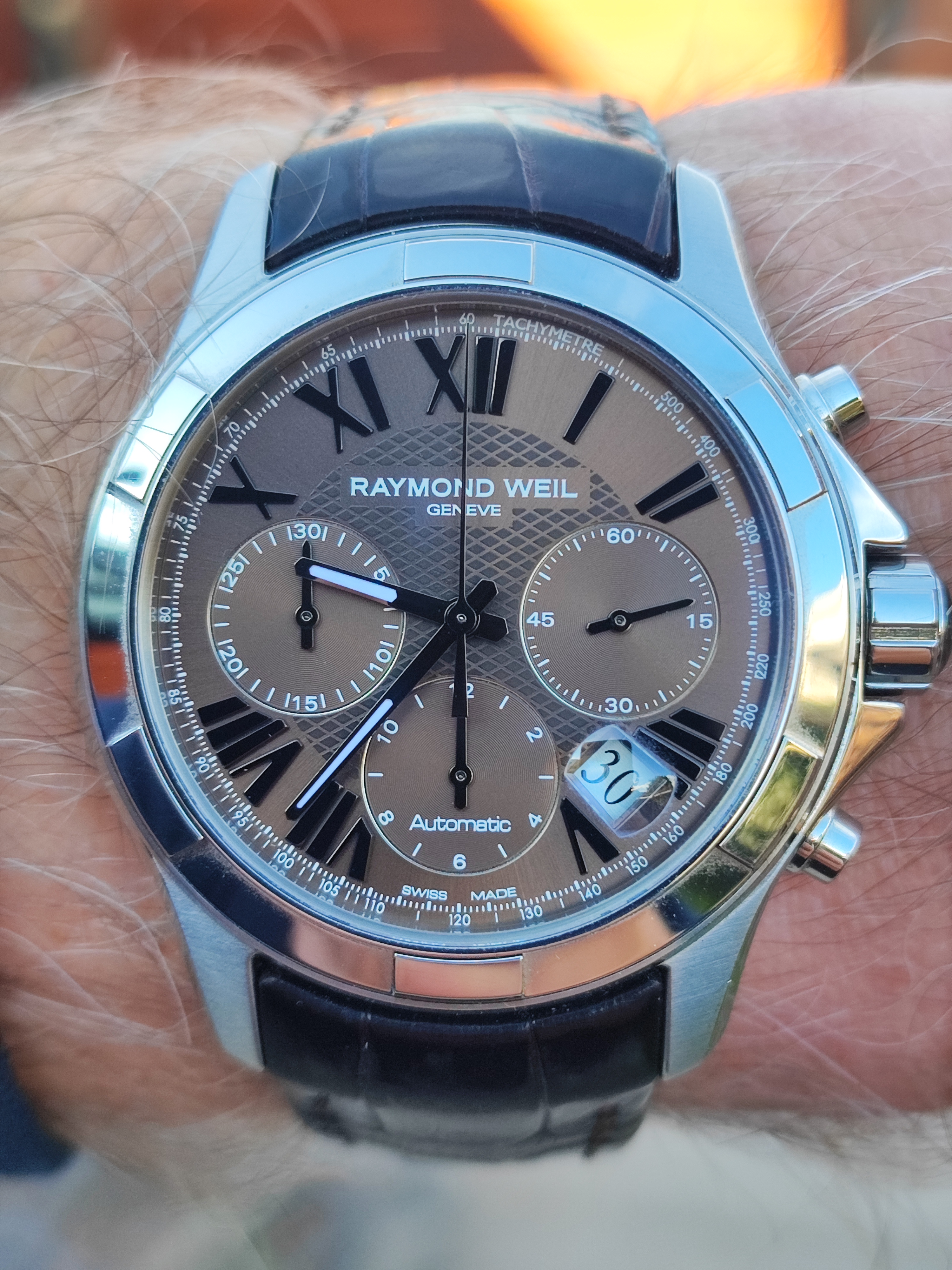 It's silver cased and currently on a solid silver chain which was a good friend's grandfather's chain and was gifted to me.