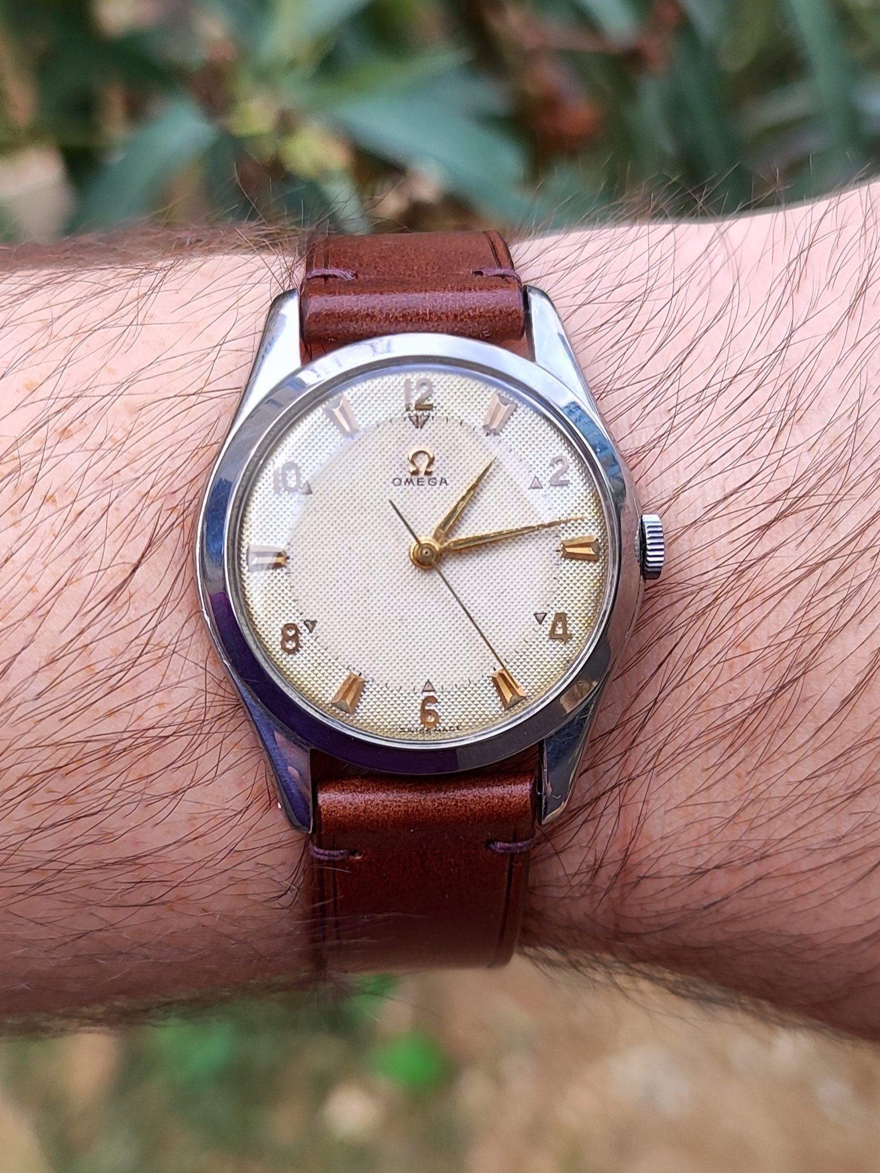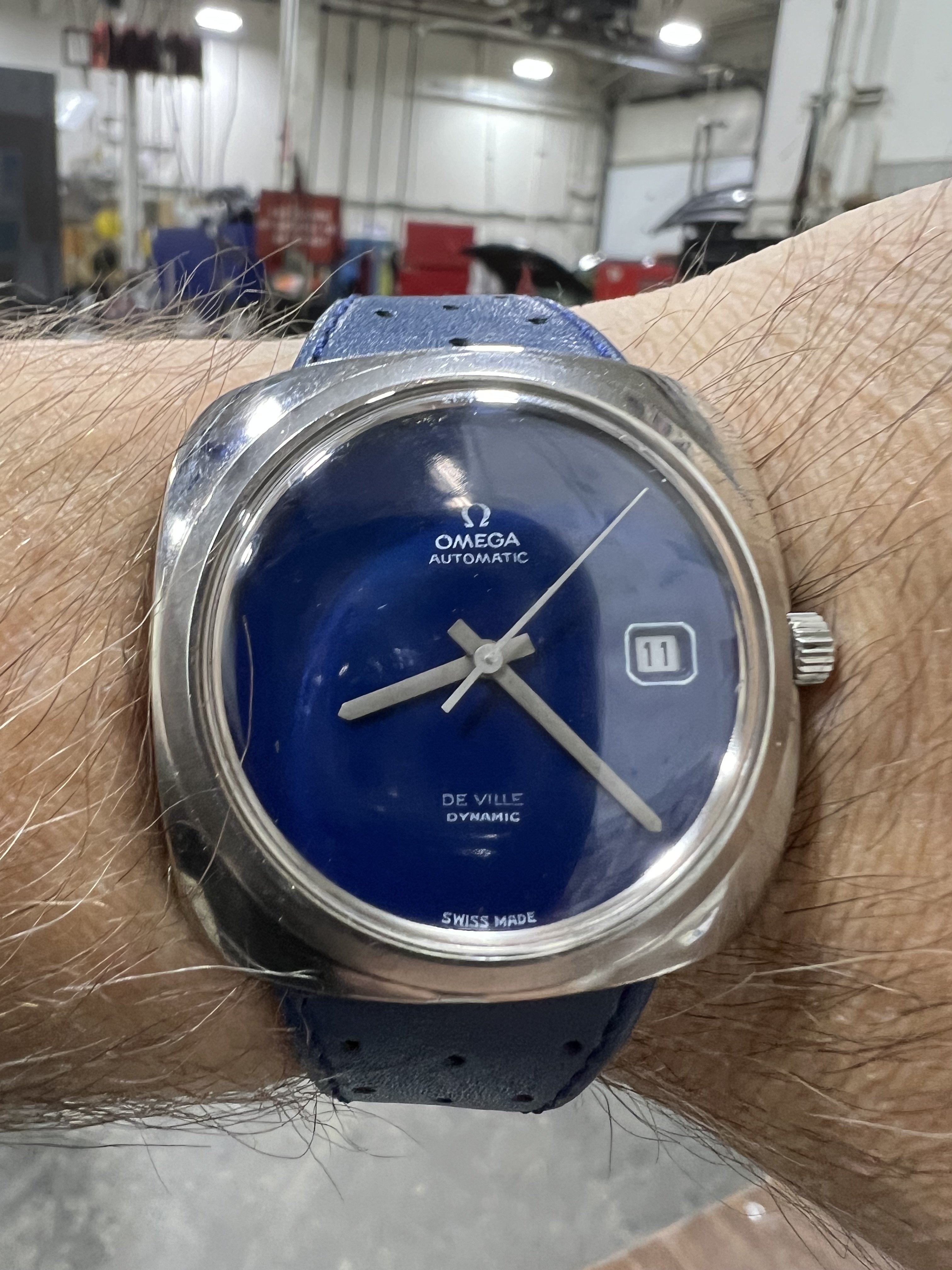 Posts 9,638 Likes 53,564 gbesq 路Sep 11, 2024 Good day all. Seamaster 2577 bumper with a two tone hobnail dial on a custom golden dyed alligator strap from Artisan.