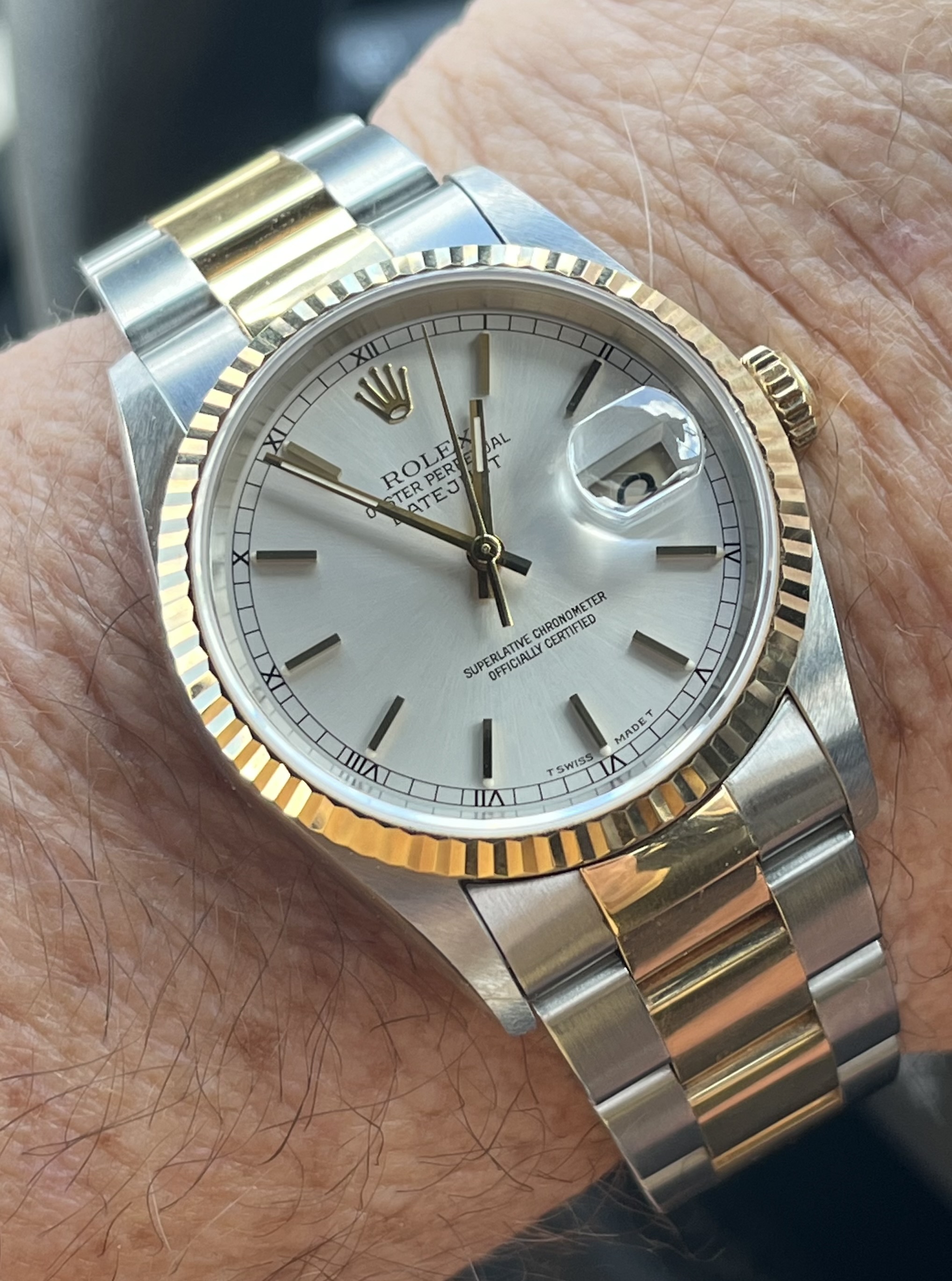 Posts 611 Likes 5,528 Charlie3755 路Sep 12, 2024 Fast forward a few hours and a quick dial change to a NOS period correct silver dial. 16233 circa 1996 After Earlier today