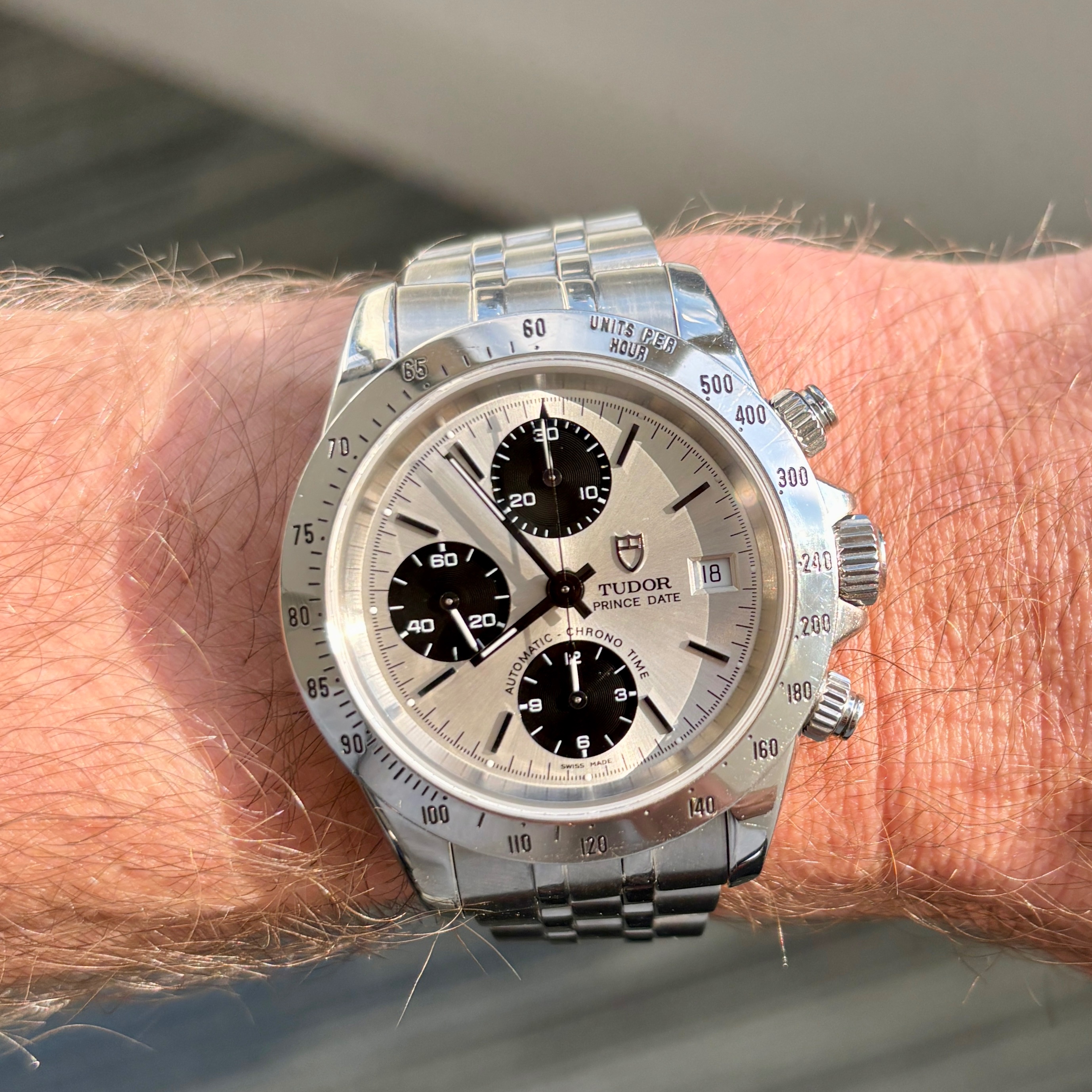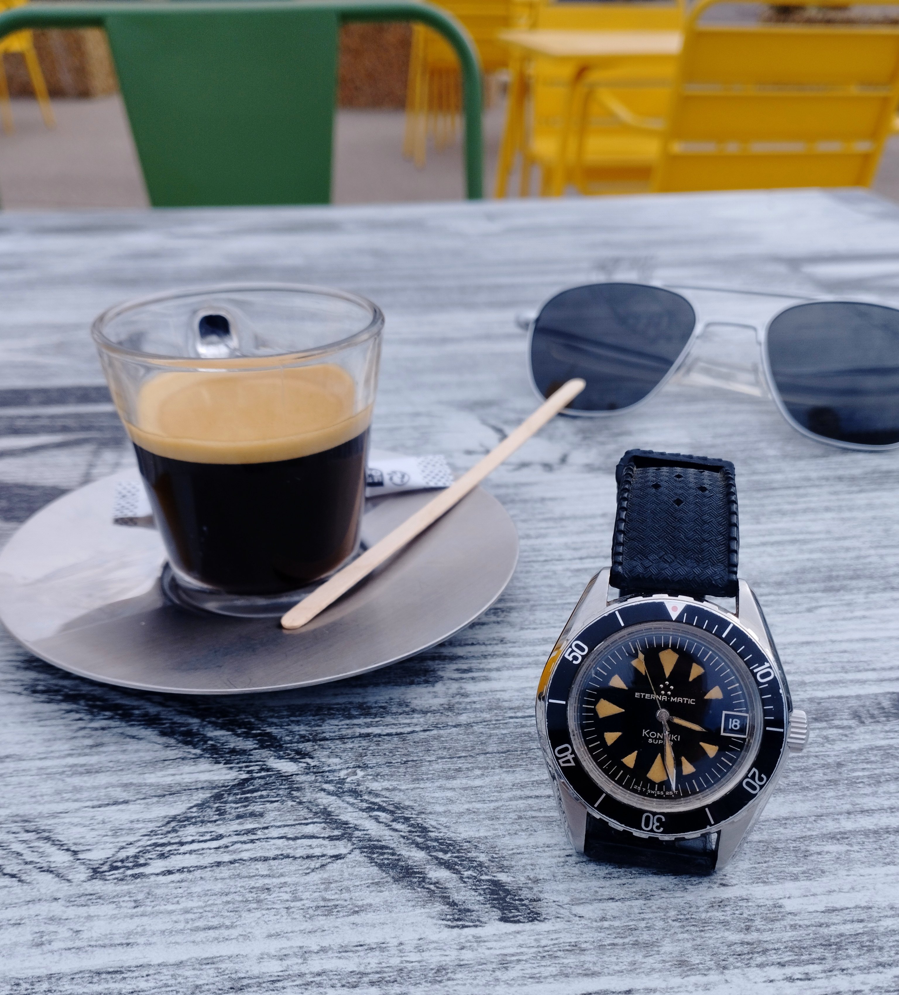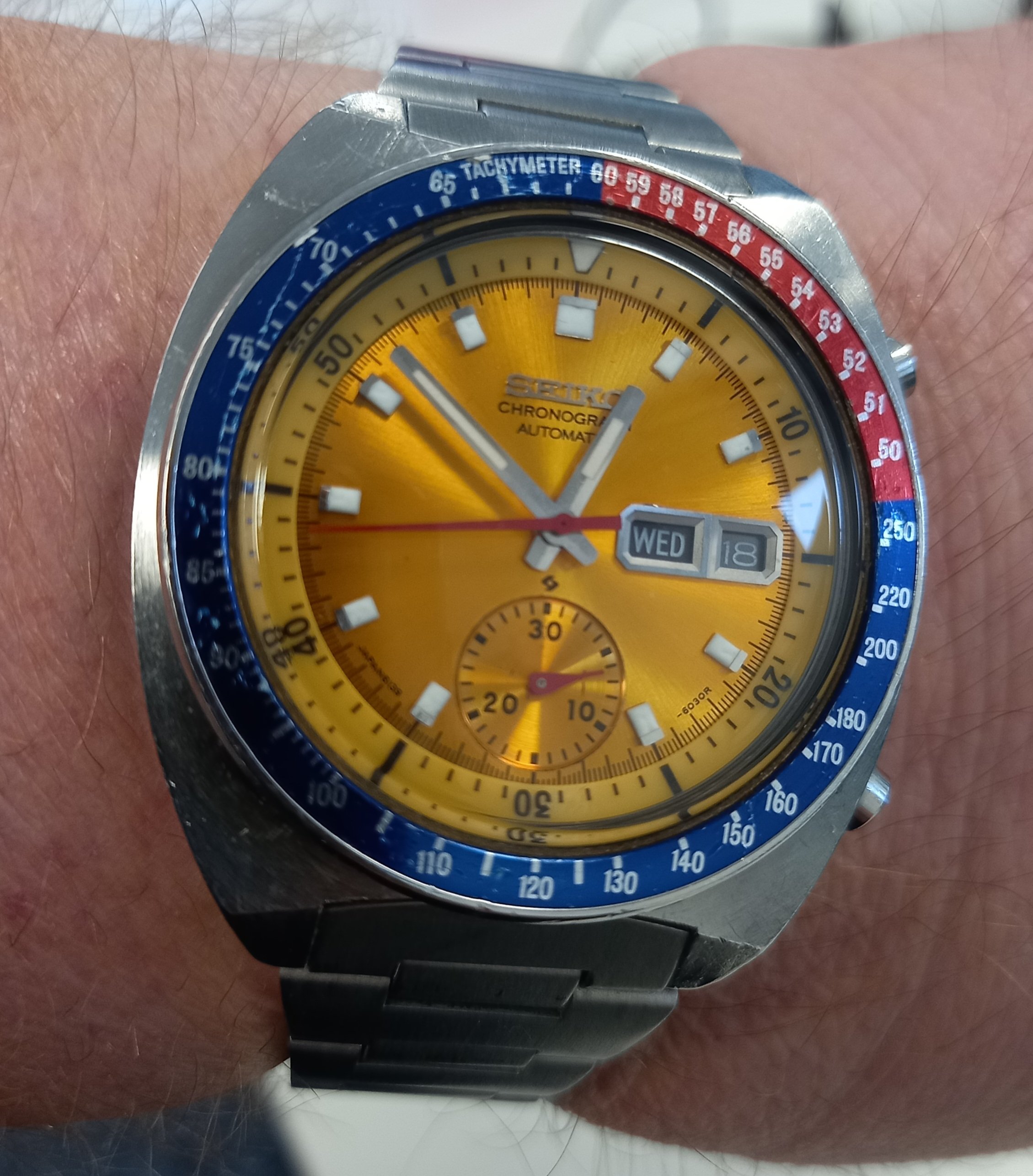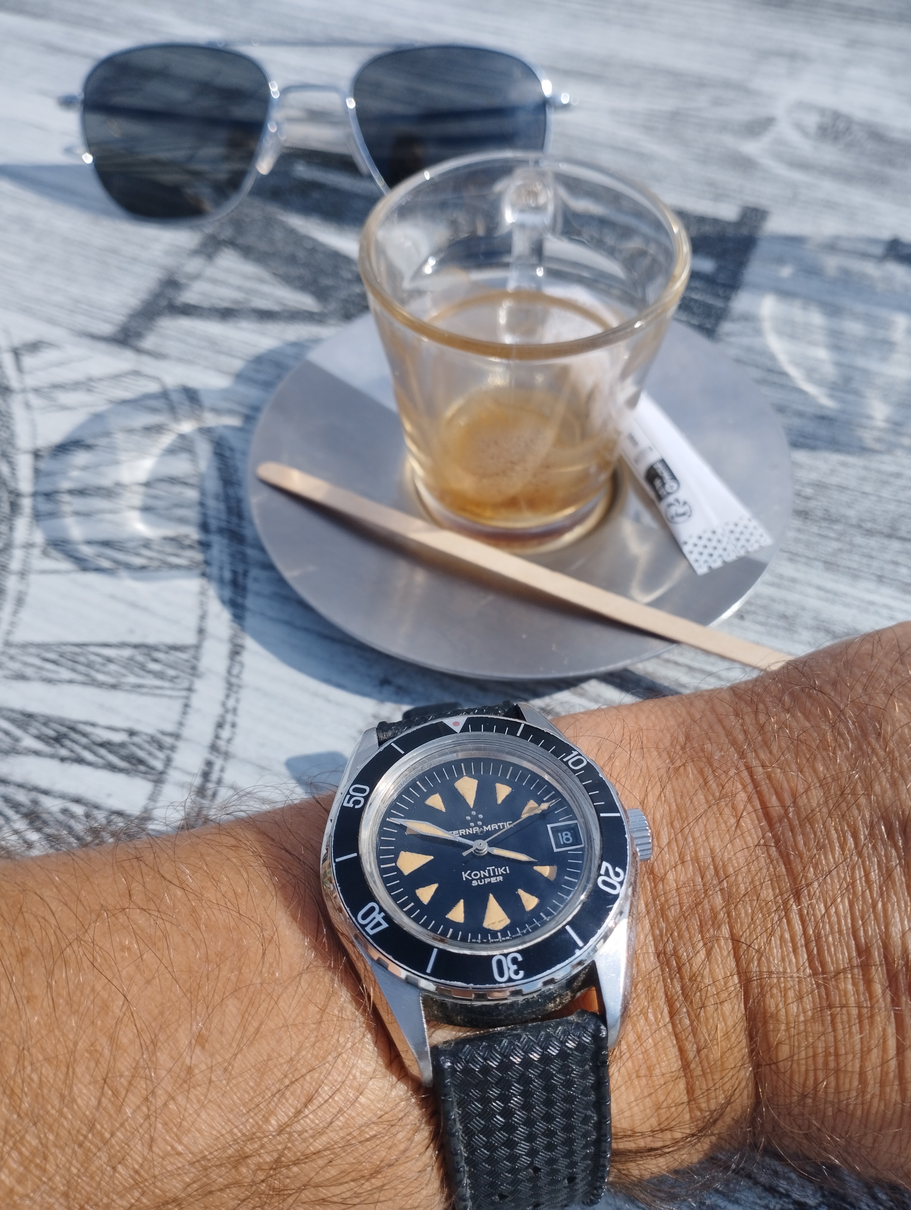 I think the 'Rising Sun' Speedmaster from 2018 is one of the sharpest versions out there, but I never cared for it on a bracelet. I once saw it on a Himalayan croc strap but that material is very hard to find. Finally got word from George at Genteel-Handmade that they had it back in stock. I think this is the most expensive strap I've ever owned, but it's a beautiful material. I use an Artem deployant buckle which I like better than the standard Omega DP.